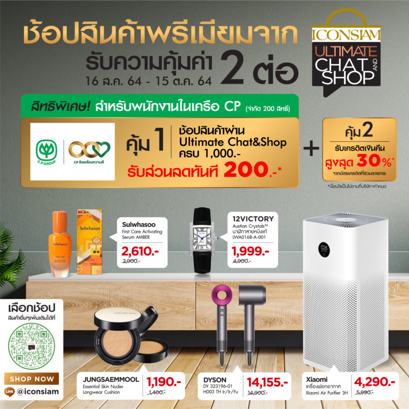 รับส่วนลด 200 บาท ในบิลทันที เมื่อช้อปครบ 1,000 บาท ช้อปผ่าน ICONSIAM Ultimate Chat&Shop