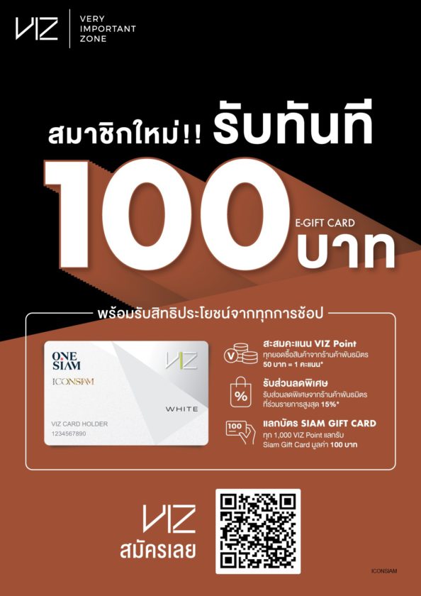 สมัครตอนนี้ รับฟรี 100 บาทเพียง Scan QR Code หรือ สมัครผ่าน link https://lineoa.onesiam.com/gc/ICON_New_E-Gift_Card_White