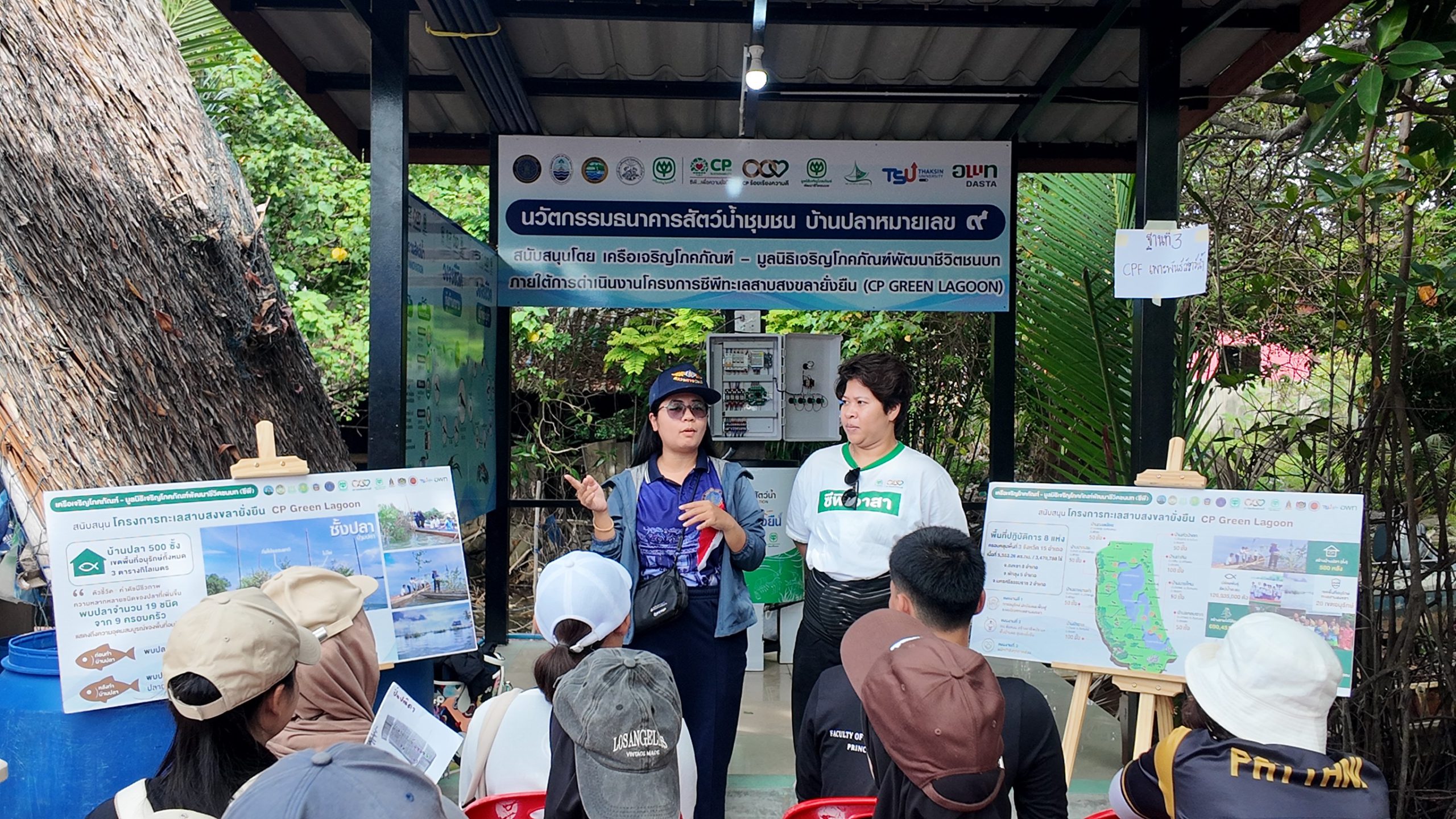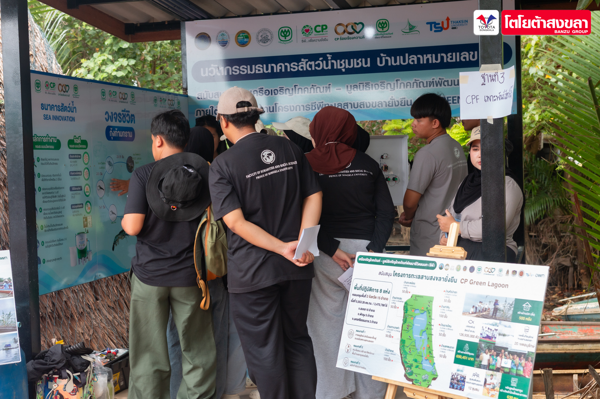 นายอานนท์ ขำแก้ว ผู้บริหารโครงการซีพีทะเลสาบสงขลายั่งยืน (CP Green Lagoon) เปิดเผยว่า ในครั้งนี้ มูลนิธิฯ นำองค์ความรู้นวัตกรรม “ธนาคารสัตว์น้ำ” ซึ่งเปรียบเสมือนหัวใจของการปลูกฝังแนวคิดการอนุรักษ์และฟื้นฟูทรัพยากรทางทะเลอย่างเป็นระบบ ทำให้นักศึกษาได้เข้าใจถึงกระบวนการเพาะพันธุ์สัตว์น้ำด้วยการใช้นวัตกรรมเข้ามาหนุนเสริม โดยมีเป้าหมายในการเพิ่มปริมาณสัตว์น้ำภายในทะเลสาบสงขลา มุ่งสร้างความอุดมสมบูรณ์และความหลากหลายทางชีวภาพ (Biodiversity) ตลอดจนสร้างแหล่งอาหารให้กับชุมชนรอบทะเลสาบสงขลา พร้อมทั้งยังมุ่งสร้างการเรียนรู้ในพื้นที่จริง บริเวณ “บ้านปลา” เพื่อให้เห็นวิธีการอนุบาลสัตว์น้ำในแหล่งน้ำธรรมชาติ เพิ่มอัตราการรอดตายของสัตว์น้ำในธรรมชาติอีกด้วย