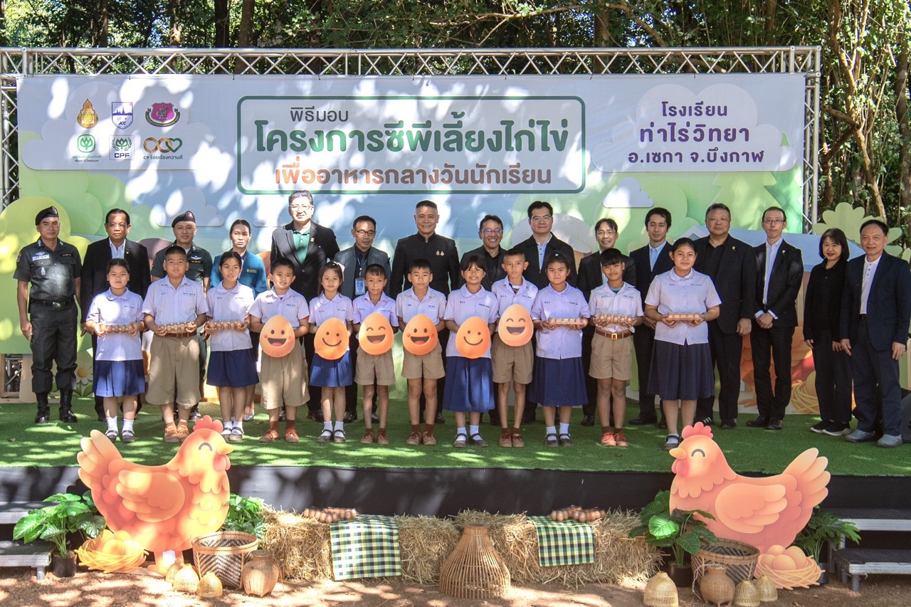 วันที่ 18 ธันวาคม 2568 – มูลนิธิเจริญโภคภัณฑ์พัฒนาชีวิตชนบท (ซีพี) เดินหน้าสานต่อเจตนารมณ์ในการส่งเสริมคุณภาพชีวิตเด็กนักเรียนในพื้นที่ห่างไกล โดยผนึกกำลังกับจังหวัดบึงกาฬ จัด “พิธีมอบและเปิดโครงการซีพีเลี้ยงไก่ไข่เพื่ออาหารกลางวันนักเรียน” โดยได้รับเกียรติจาก นายสมหวัง อารีย์เอื้อ รองผู้ว่าราชการจังหวัดบึงกาฬ เป็นประธานในพิธี โดยมี นายฮิโรชิ คาคิอุจิ รองประธานหอการค้าญี่ปุ่น-กรุงเทพฯ (JCC) ดร.วรรณที ศรีโนนยาง ผู้อำนวยการ สำนักงานเขตพื้นที่การศึกษาประถมศึกษาบึงกาฬ คุณกฤตยรัฐ ปารมี ผู้ช่วยเลขาธิการมูลนิธิเจริญโภคภัณฑ์พัฒนาชีวิตชนบท ร่วมเป็นสักขีพยานและมอบโครงการฯ ให้แก่ 4 โรงเรียน ได้แก่ โรงเรียนท่าไร่วิทยา อ.เซกา จ.บึงกาฬ, , โรงเรียนบ้านโนนสูงสุขสมบูรณ์ อ.เซกา จ.บึงกาฬ, โรงเรียนบ้านนางัวสายปัญญา อ.เซกา จ.บึงกาฬ และโรงเรียนวัดหนองเสือ (เรืองวิทยานุกูล) อ.เมือง จ.นครปฐม เพื่อขยายผลโครงการฯ ส่งมอบโภชนาการที่ดีให้แก่เด็กและเยาวชนในถิ่นทุรกันดาร งานจัดขึ้น ณ โรงเรียนท่าไร่วิทยา จังหวัดบึงกาฬ