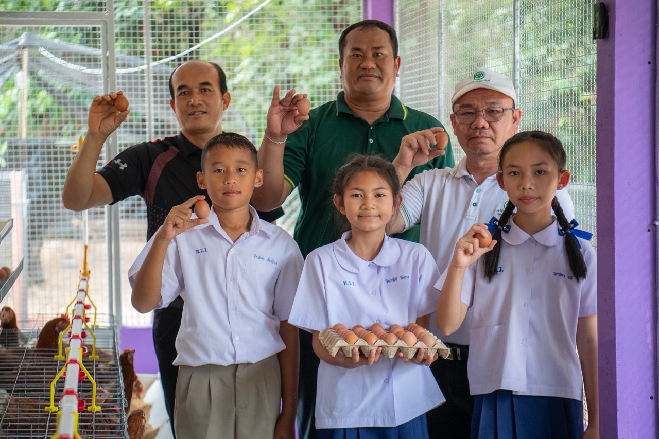 โครงการซีพีเลี้ยงไก่ไข่เพื่ออาหารกลางวันนักเรียน นับเป็นโครงการสำคัญที่มูลนิธิฯ ได้ริเริ่มดำเนินการมาอย่างต่อเนื่องยาวนานกว่า 3 ทศวรรษ (นับตั้งแต่ปี 2532) ตลอดระยะเวลาที่ผ่านมา โครงการนี้ได้สร้างความเปลี่ยนแปลงเชิงบวกให้กับสังคมอย่างต่อเนื่อง โดยขยายผลการดำเนินงานไปแล้วรวมกว่า 1,018 โรงเรียนทั่วประเทศ สร้างประโยชน์ด้านโภชนาการและการเรียนรู้ให้แก่เด็กนักเรียนมากกว่า 229,500 คน และชุมชนกว่า 2,700 ชุมชน โครงการนี้จึงมิใช่แค่การมอบแหล่งโปรตีนคุณภาพสูงเพื่อแก้ไขปัญหาภาวะทุพโภชนาการเท่านั้น แต่ยังทำหน้าที่เป็น “ห้องเรียนอาชีพ” (Living Classroom) ที่ให้นักเรียนได้เรียนรู้การบริหารจัดการธุรกิจเกษตรอย่างครบวงจร ซึ่งจะกลายเป็นพื้นฐานความรู้และอาชีพติดตัวพวกเขาตลอดไป และยังขยายผลเป็น “คลังอาหารที่ยั่งยืน” ให้แก่ชุมชนโดยรอบโรงเรียนอีกด้วย