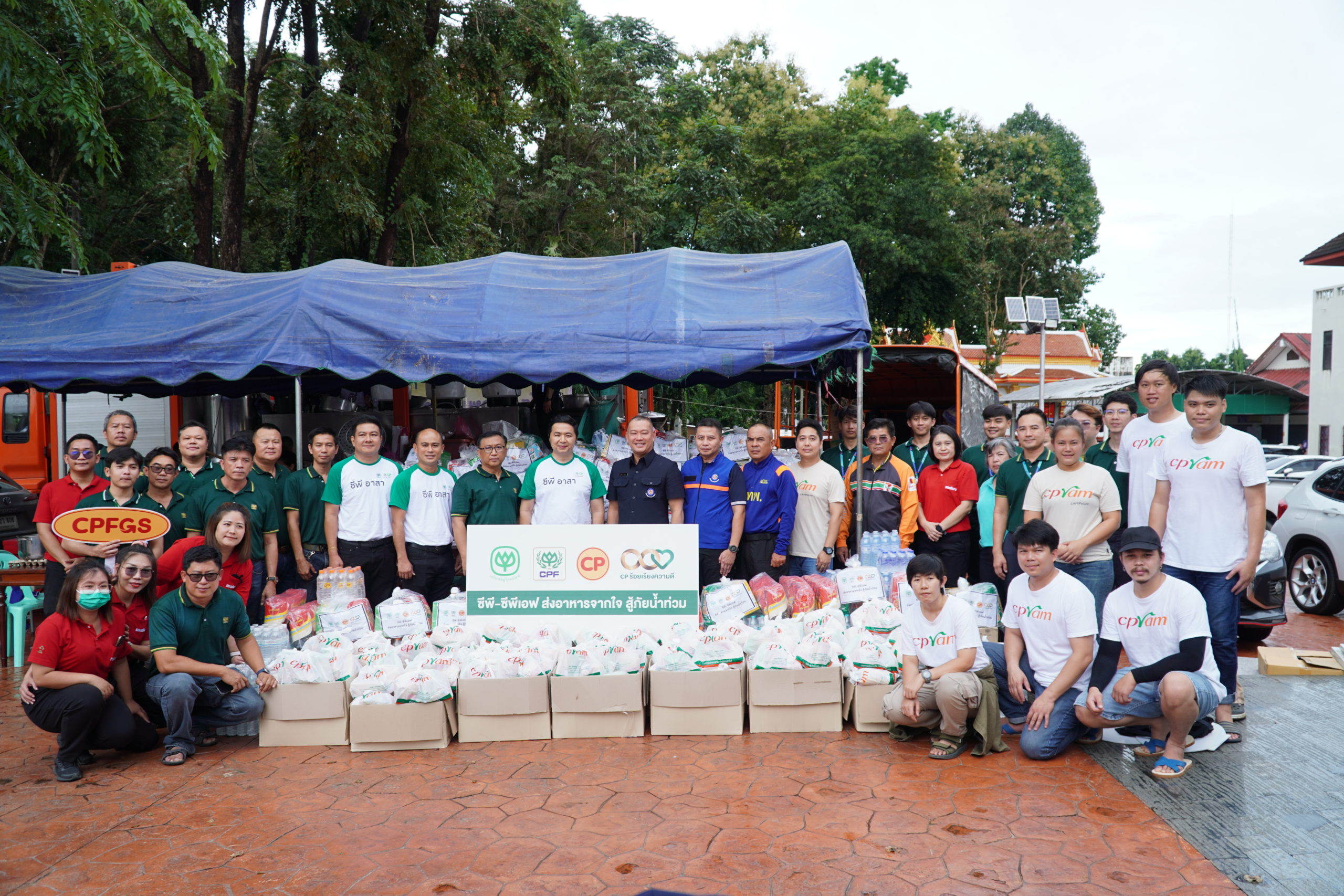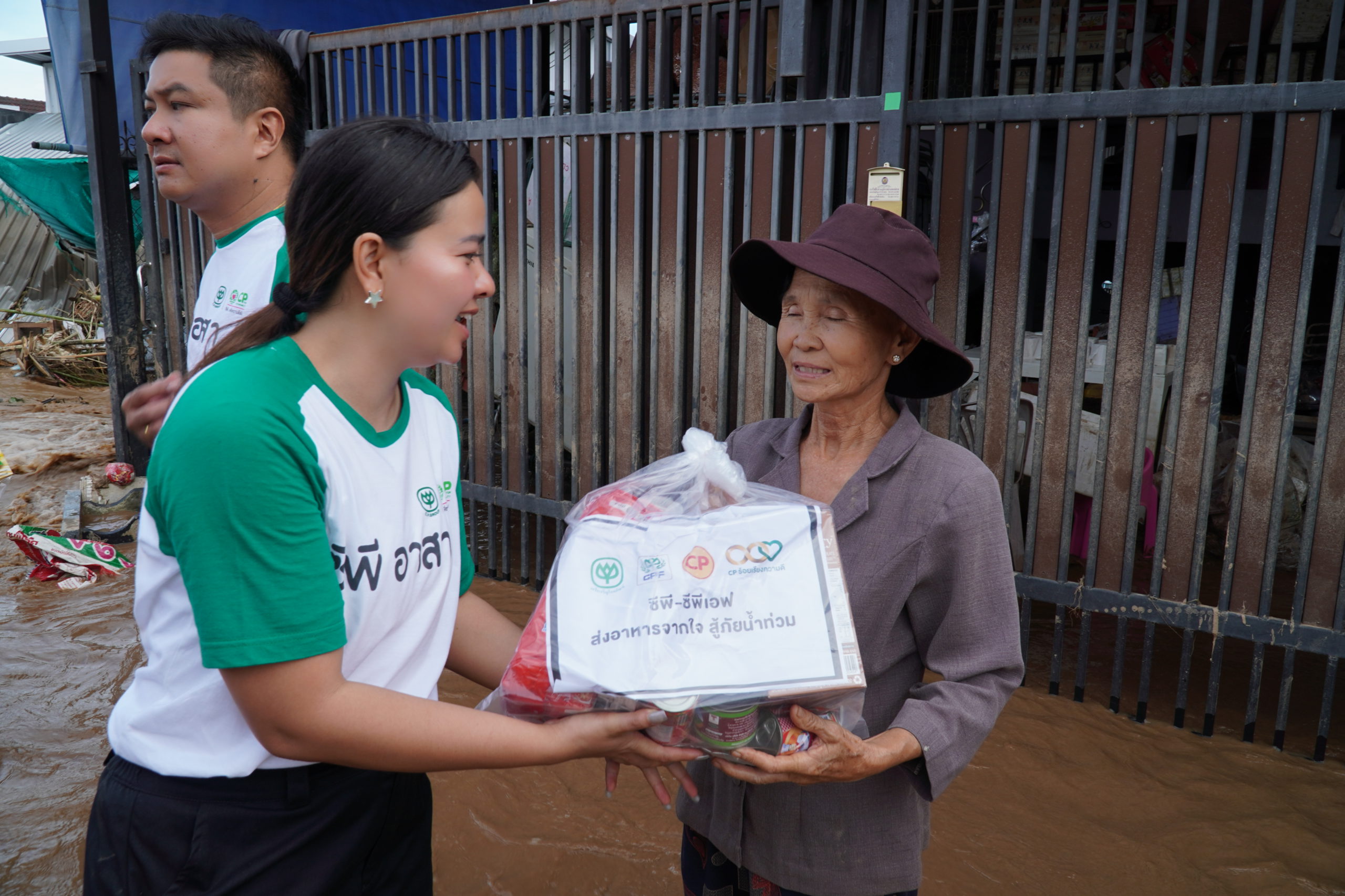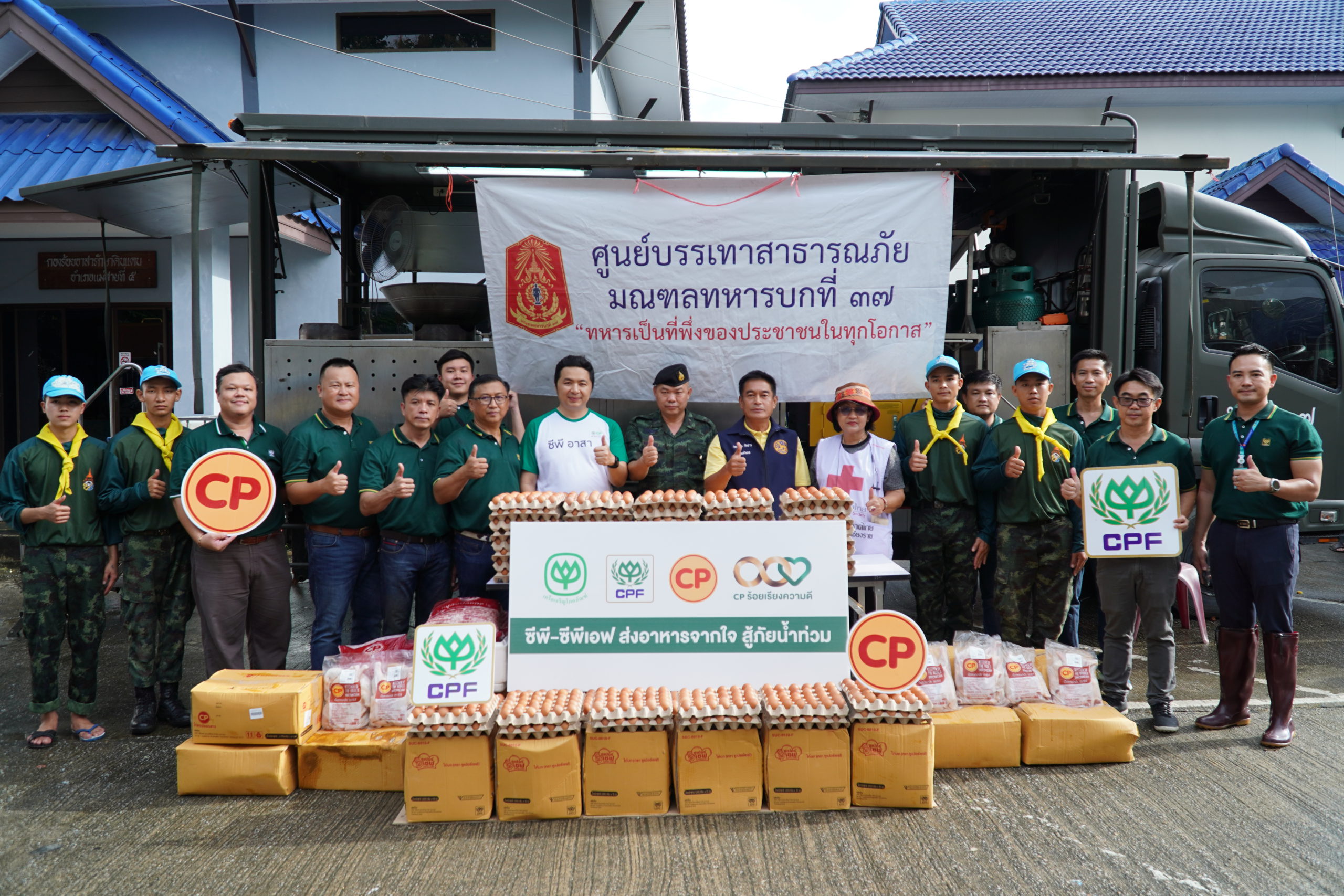 ก่อนหน้านี้ คุณประสิทธิ์ บุญดวงประเสริฐ ประธานคณะผู้บริหาร ซีพีเอฟ พร้อมด้วย ดร.ธีระพล ถนอมศักดิ์ยุทธ ประธานคณะผู้บริหาร ด้านความยั่งยืนองค์กรและการพัฒนากลยุทธ์ เครือเจริญโภคภัณฑ์ คุณอดิศร์ กฤษณวงศ์ ผู้บริหารสูงสุดสายงานรัฐกิจและเอกชนสัมพันธ์ บริษัท เจริญโภคภัณฑ์อาหาร จำกัด (มหาชน) คุณเทียนชัย จูพัฒนกุล รองกรรมการผู้จัดการ ด้านสื่อสารองค์กรและกิจกรรมเพื่อสังคม ธุรกิจพืชครบวงจร ข้าว ขนส่งและบริการ ได้นำน้ำดื่มซีพี ข้าวตราฉัตร และอาหารสัตว์เลี้ยงแบรนด์เจอร์ไฮและจินนี่ มอบให้แก่ กองบัญชาการกองทัพไทย เพื่อสนับสนุนกองทัพไทยในการปฏิบัติภารกิจบรรเทาความเดือดร้อน และส่งกำลังใจให้พี่น้องผู้ประสบอุทกภัย จังหวัดเชียงราย และนับตั้งแต่เดือนกรกฎาคมที่ผ่านมา บริษัทได้ให้การช่วยเหลือผู้ประสบอุทกภัยผ่านหน่วยงานต่างๆ ที่เกี่ยวข้องใน 5 จังหวัดภาคเหนือ ได้แก่ เชียงราย พะเยา แพร่ น่าน และสุโขทัย และพร้อมเดินหน้าส่งมอบความช่วยเหลืออย่างต่อเนื่องเพื่อช่วยบรรเทาความเดือดร้อนของพี่น้องประชาชนที่ได้รับผลกระทบจากอุทกภัย