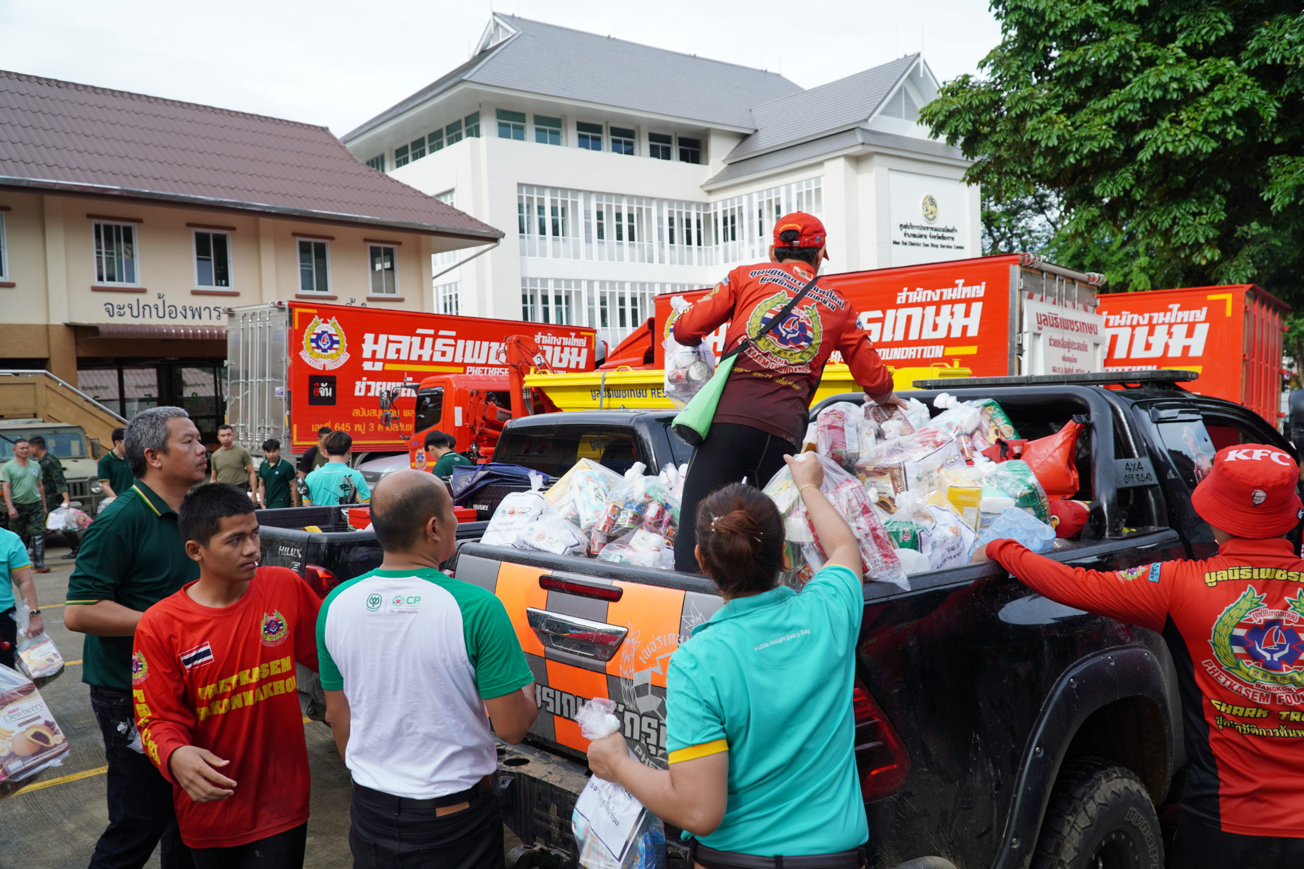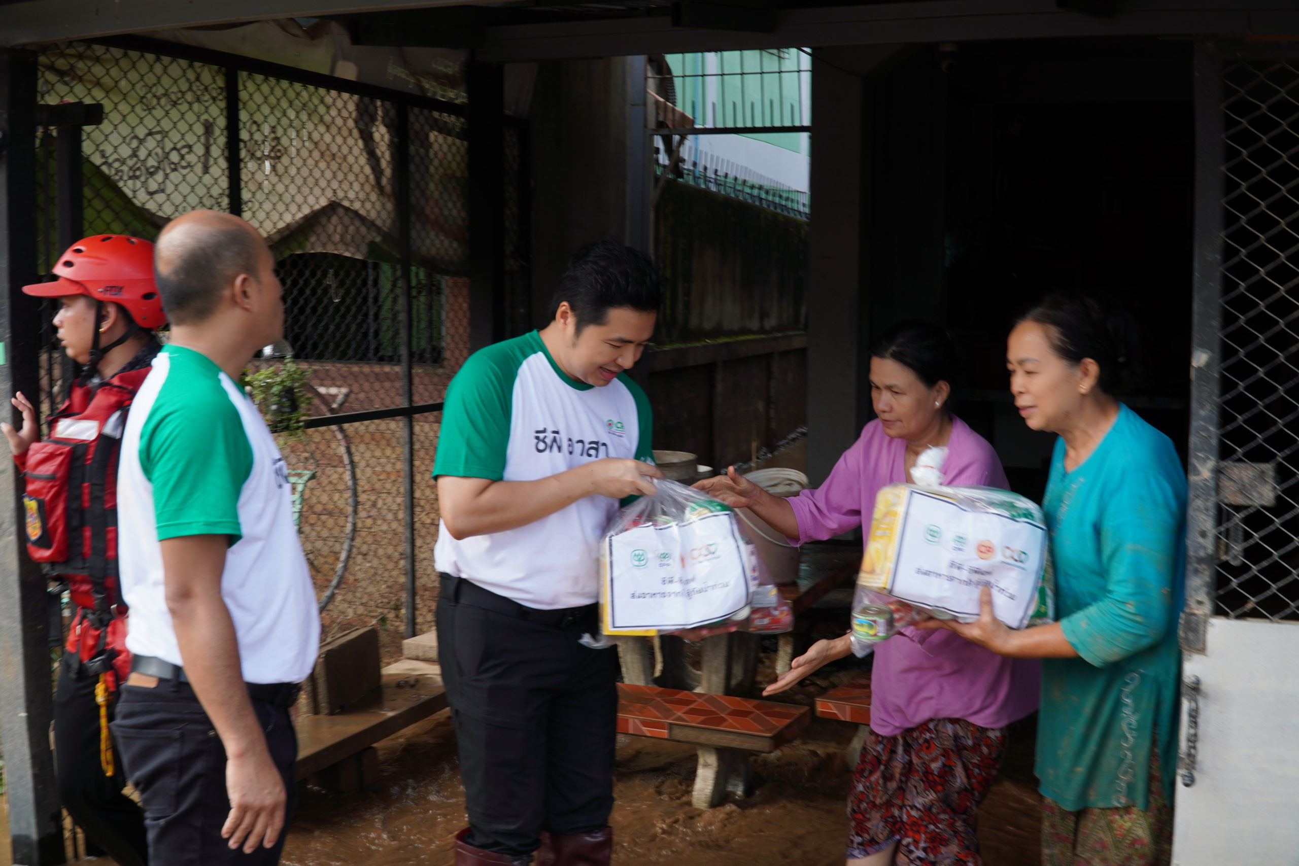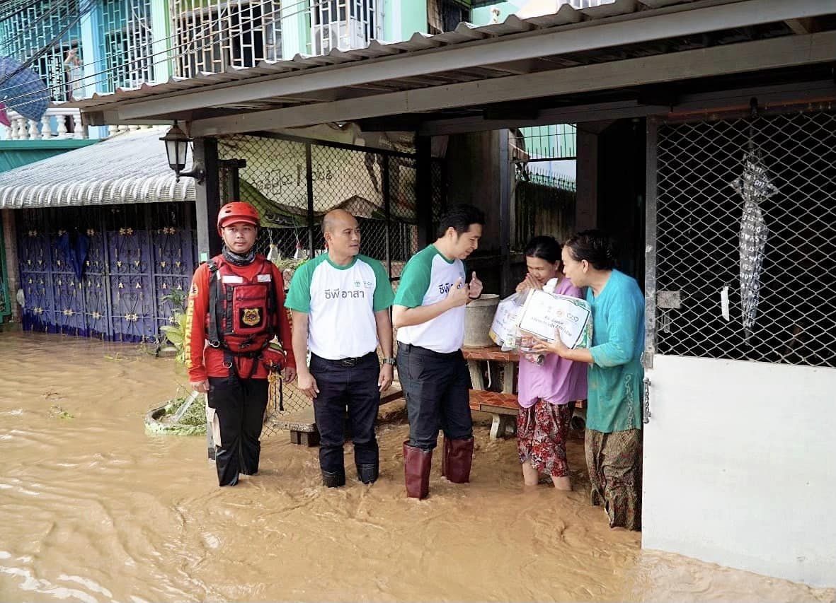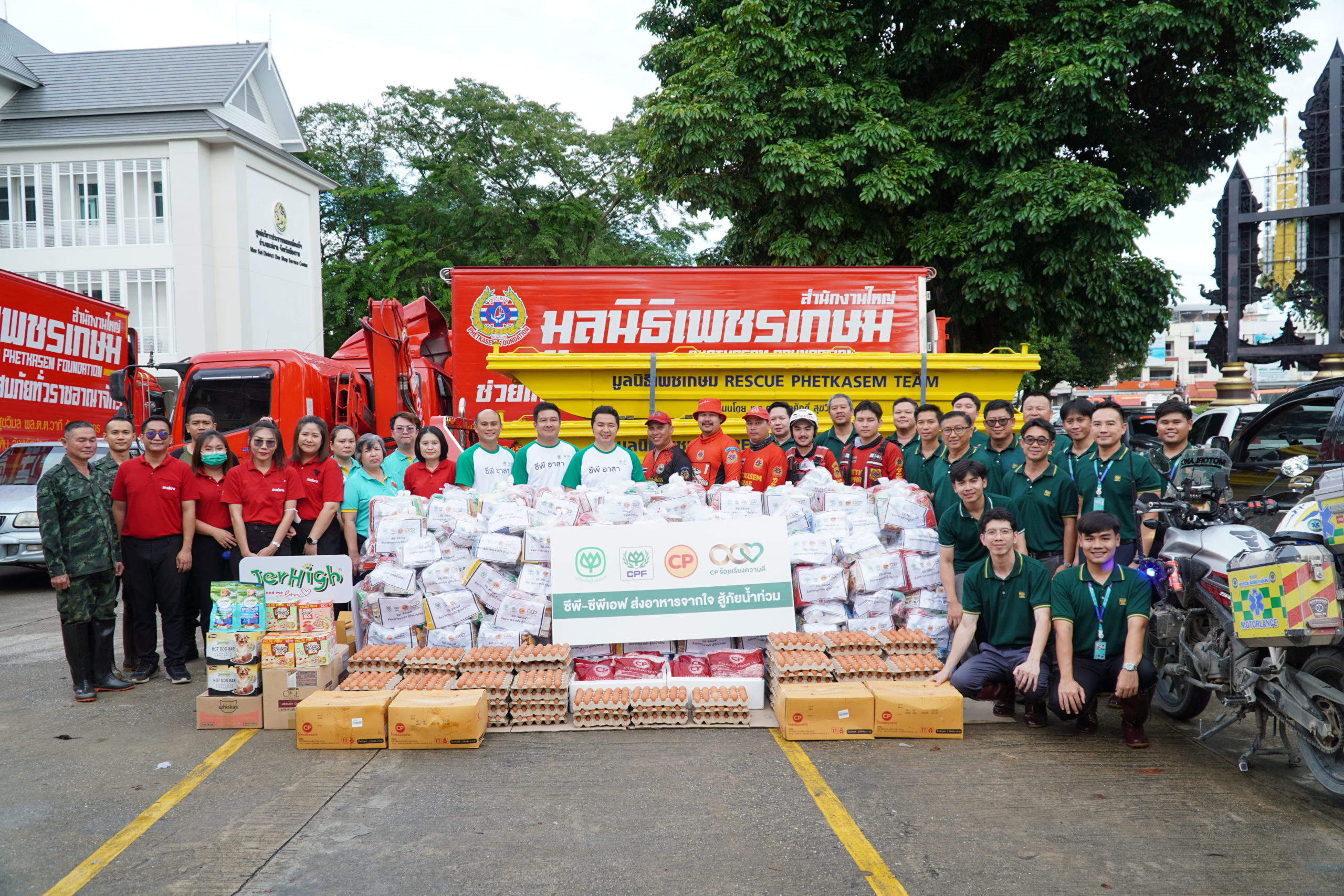 ก่อนหน้านี้ คุณประสิทธิ์ บุญดวงประเสริฐ ประธานคณะผู้บริหาร ซีพีเอฟ พร้อมด้วย ดร.ธีระพล ถนอมศักดิ์ยุทธ ประธานคณะผู้บริหาร ด้านความยั่งยืนองค์กรและการพัฒนากลยุทธ์ เครือเจริญโภคภัณฑ์ คุณอดิศร์ กฤษณวงศ์ ผู้บริหารสูงสุดสายงานรัฐกิจและเอกชนสัมพันธ์ บริษัท เจริญโภคภัณฑ์อาหาร จำกัด (มหาชน) คุณเทียนชัย จูพัฒนกุล รองกรรมการผู้จัดการ ด้านสื่อสารองค์กรและกิจกรรมเพื่อสังคม ธุรกิจพืชครบวงจร ข้าว ขนส่งและบริการ ได้นำน้ำดื่มซีพี ข้าวตราฉัตร และอาหารสัตว์เลี้ยงแบรนด์เจอร์ไฮและจินนี่ มอบให้แก่ กองบัญชาการกองทัพไทย เพื่อสนับสนุนกองทัพไทยในการปฏิบัติภารกิจบรรเทาความเดือดร้อน และส่งกำลังใจให้พี่น้องผู้ประสบอุทกภัย จังหวัดเชียงราย และนับตั้งแต่เดือนกรกฎาคมที่ผ่านมา บริษัทได้ให้การช่วยเหลือผู้ประสบอุทกภัยผ่านหน่วยงานต่างๆ ที่เกี่ยวข้องใน 5 จังหวัดภาคเหนือ ได้แก่ เชียงราย พะเยา แพร่ น่าน และสุโขทัย และพร้อมเดินหน้าส่งมอบความช่วยเหลืออย่างต่อเนื่องเพื่อช่วยบรรเทาความเดือดร้อนของพี่น้องประชาชนที่ได้รับผลกระทบจากอุทกภัย
