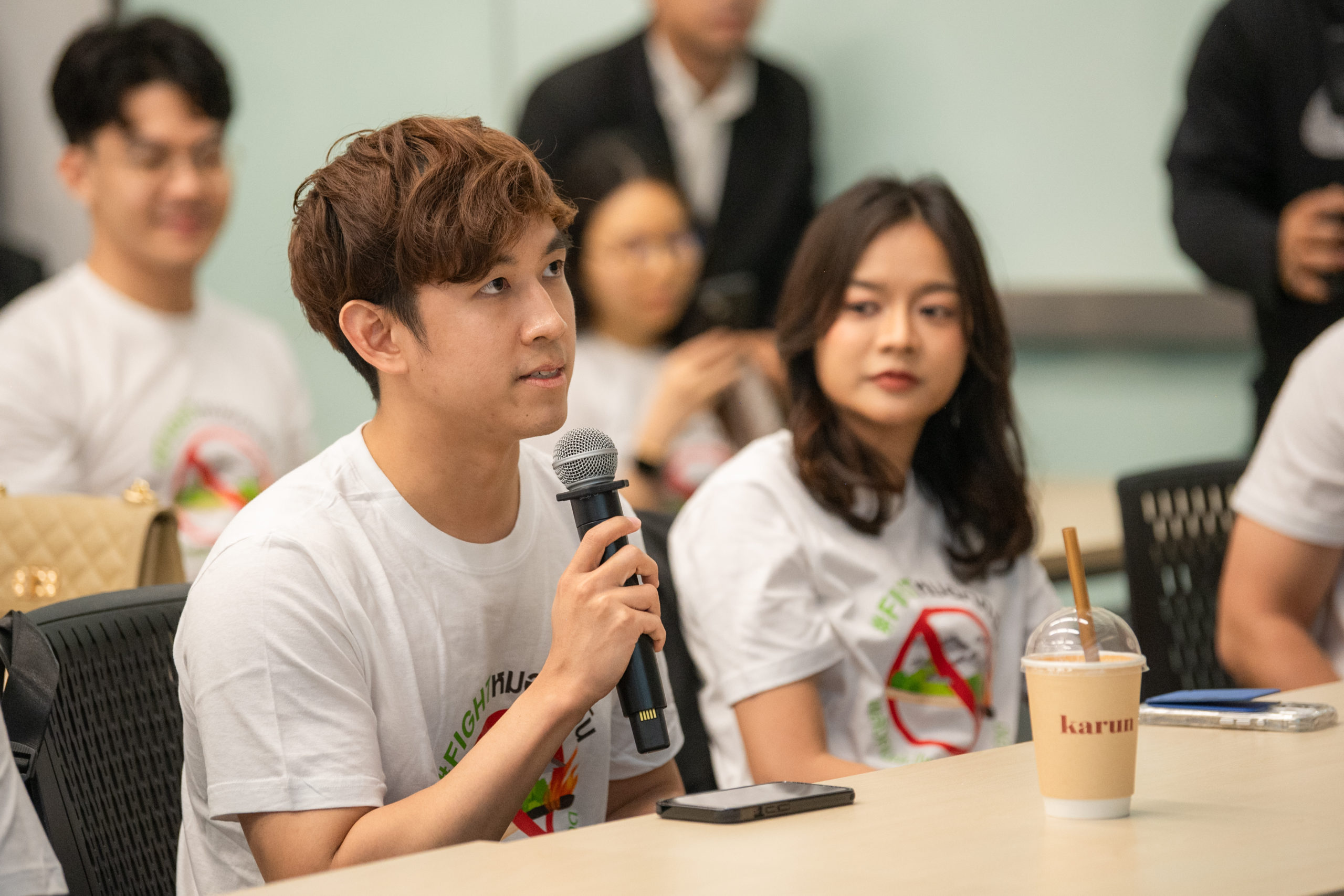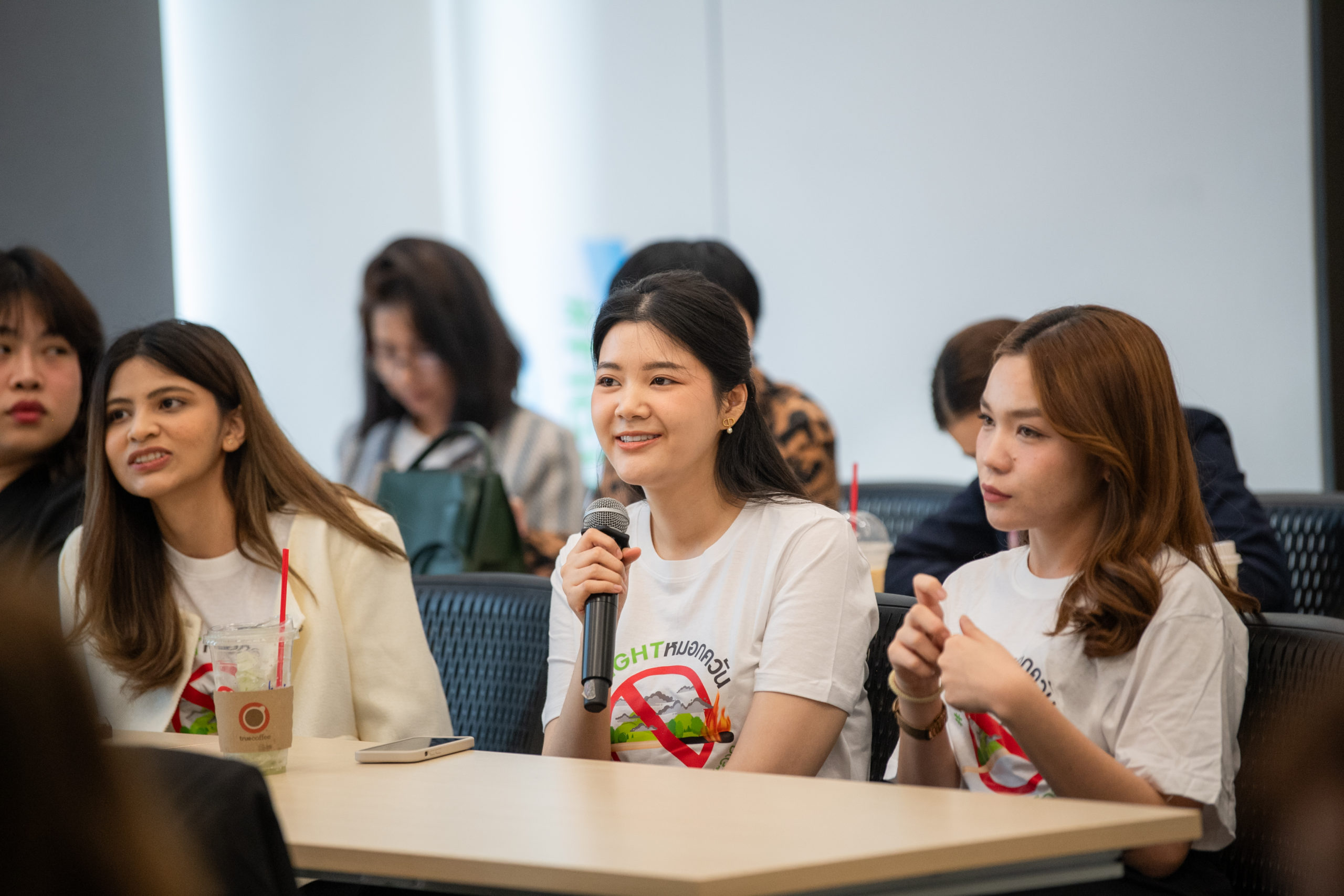 ขณะที่ คุณศศินทร์ ซานไทโว (ไมค์) ตัวแทนเยาวชน One Young World จาก ปี 2022 กล่าวว่า “วันนี้ผมรู้สึกดีใจมากที่ได้เห็นเพื่อน ๆ จาก One Young World หลายรุ่นที่ต่างเต็มไปด้วยความตั้งใจและแรงผลักดันในการร่วมกันแก้ไขปัญหาหมอกควันที่เกิดจากหลากหลายสาเหตุ และได้เรียนรู้มุมมองที่เป็นประโยชน์จากผู้บริหาร ผมเชื่อว่าเราทุกคนได้รับพลังและแรงบันดาลใจในการคิดและลงมือทำ เพื่อเข้าร่วมโครงการที่ดีในวันนี้ ผมขอเชิญชวนเยาวชนรุ่นใหม่มาร่วมโครงการนี้ เพราะผมมั่นใจว่าโครงการนี้จะสามารถสร้างการเปลี่ยนแปลงที่ยั่งยืนและมีผลดีต่อทุกคนในอนาคต ปัญหามลพิษทางอากาศและหมอกควันเป็นความท้าทายที่เราทุกคนต้องร่วมมือกันเผชิญ แคมเปญนี้เปิดโอกาสให้คนรุ่นใหม่ได้ใช้พลังและศักยภาพของตัวเองในการสร้างการเปลี่ยนแปลง ไม่เพียงแค่เพื่อแก้ไขปัญหาหมอกควัน แต่ยังเป็นการสร้างแรงบันดาลใจให้กับชุมชนในการตระหนักถึงความสำคัญของอากาศสะอาดและสิ่งแวดล้อมที่ยั่งยืน ผมขอเชิญชวนทุกคนร่วมมือกันสร้างการเปลี่ยนแปลง เพราะแม้แต่ก้าวเล็ก ๆ ก็สามารถสร้างผลกระทบที่ยิ่งใหญ่ได้ เพื่ออนาคตที่น่าอยู่และภาคภูมิใจสำหรับคนรุ่นต่อไป”