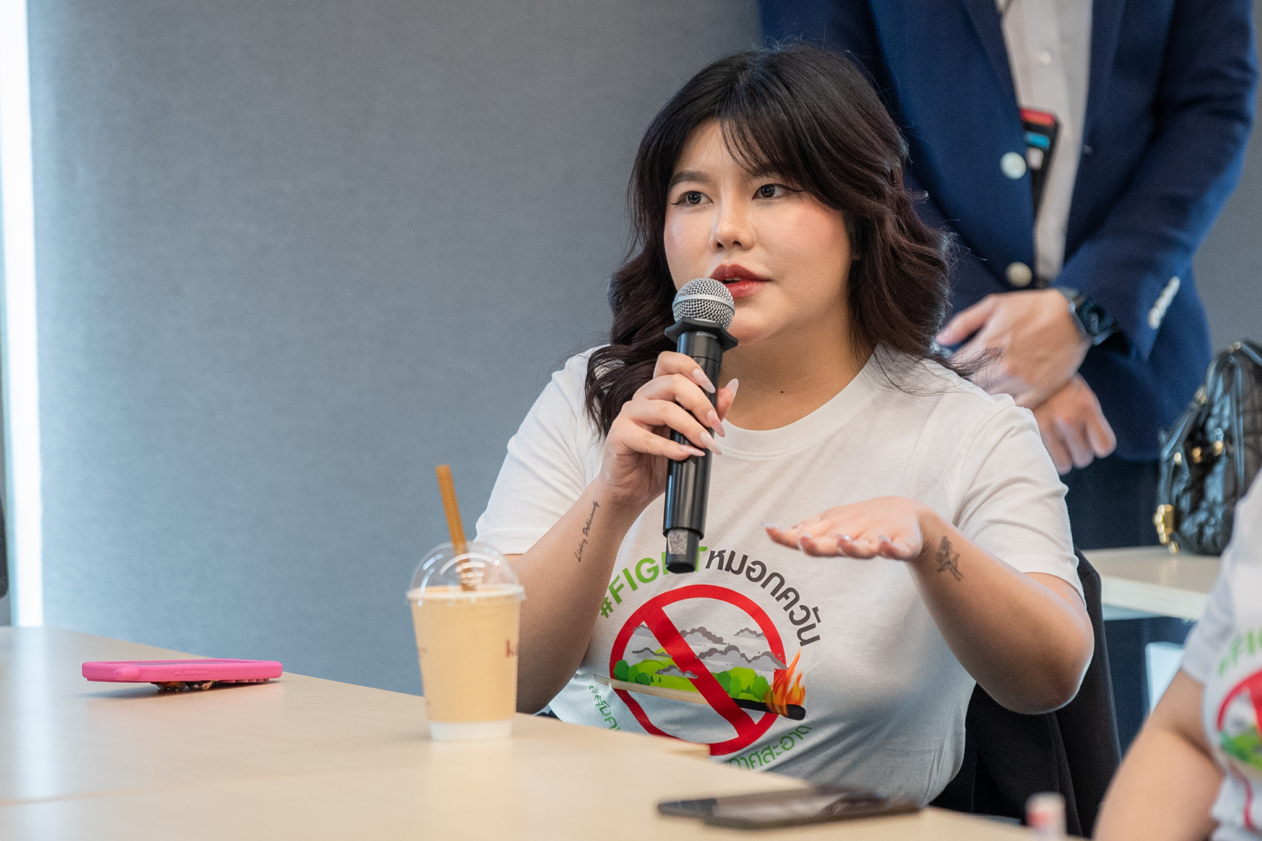 คุณภัทราภรณ์ พลอยวิเลิศ (เดียร์) ตัวแทนเยาวชน One Young World ปี 2024 จากเครือเจริญโภคภัณฑ์ กล่าวว่า “แคมเปญ #FIGHTหมอกควัน: พลังคนรุ่นใหม่เพื่ออากาศสะอาด…เพื่อพรุ่งนี้ที่ดีกว่า ถือเป็นโอกาสสำคัญที่เปิดพื้นที่ให้คนรุ่นใหม่ได้มีส่วนร่วมในการผลักดันการแก้ไขและป้องกันปัญหาหมอกควันไฟป่า ซึ่งถือเป็นปัญหาระดับชาติที่ต้องการการมีส่วนร่วมจากทุกภาคส่วน ฉันเชื่อมั่นว่าพลังของคนรุ่นใหม่จะเป็นกุญแจสำคัญในการสร้างความเปลี่ยนแปลงและผลักดันให้การแก้ไขปัญหานี้ประสบความสำเร็จอย่างยั่งยืนในอนาคต”