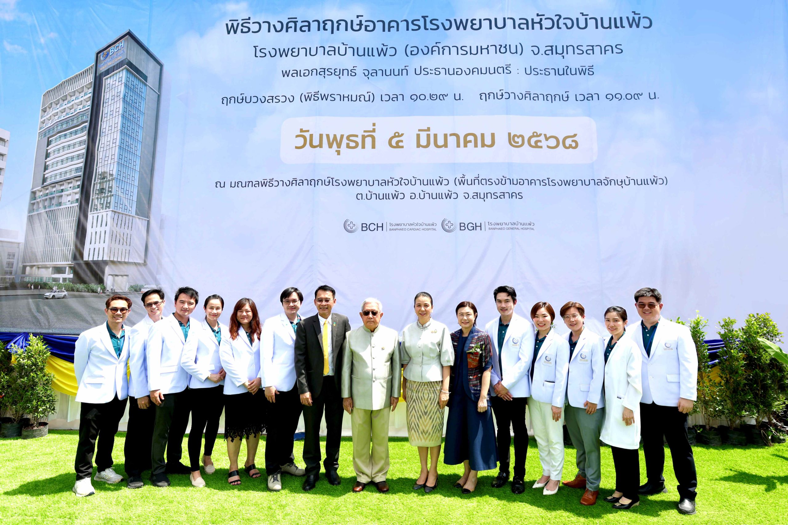 กรุงเทพฯ 14 มีนาคม 2568 – เพราะโรคหัวใจรอไม่ได้… โรงพยาบาลบ้านแพ้ว (องค์การมหาชน) จัดพิธีวางศิลาฤกษ์ “อาคาร 100 ปี โงวฮก” เพื่อเร่งเดินหน้าก่อสร้างศูนย์รักษาโรคหัวใจครบวงจร เพื่อรองรับผู้ป่วยโรคหัวใจที่เพิ่มขึ้น ลดระยะเวลารอคอย และช่วยชีวิตผู้ป่วยให้ทันเวลา โดยมี พลเอกสุรยุทธ์ จุลานนท์ ประธานองคมนตรี เป็นประธานในพิธี พร้อมด้วย แพทย์หญิงเสาวณีย์ เกิดดอนแฝก ผู้อำนวยการโรงพยาบาลบ้านแพ้ว คณะผู้บริหาร และ คุณบุษดี เจียรวนนท์ รองประธานกรรมการ มูลนิธิศุภชัย-บุษดี เจียรวนนท์ เข้าร่วมในพิธี
