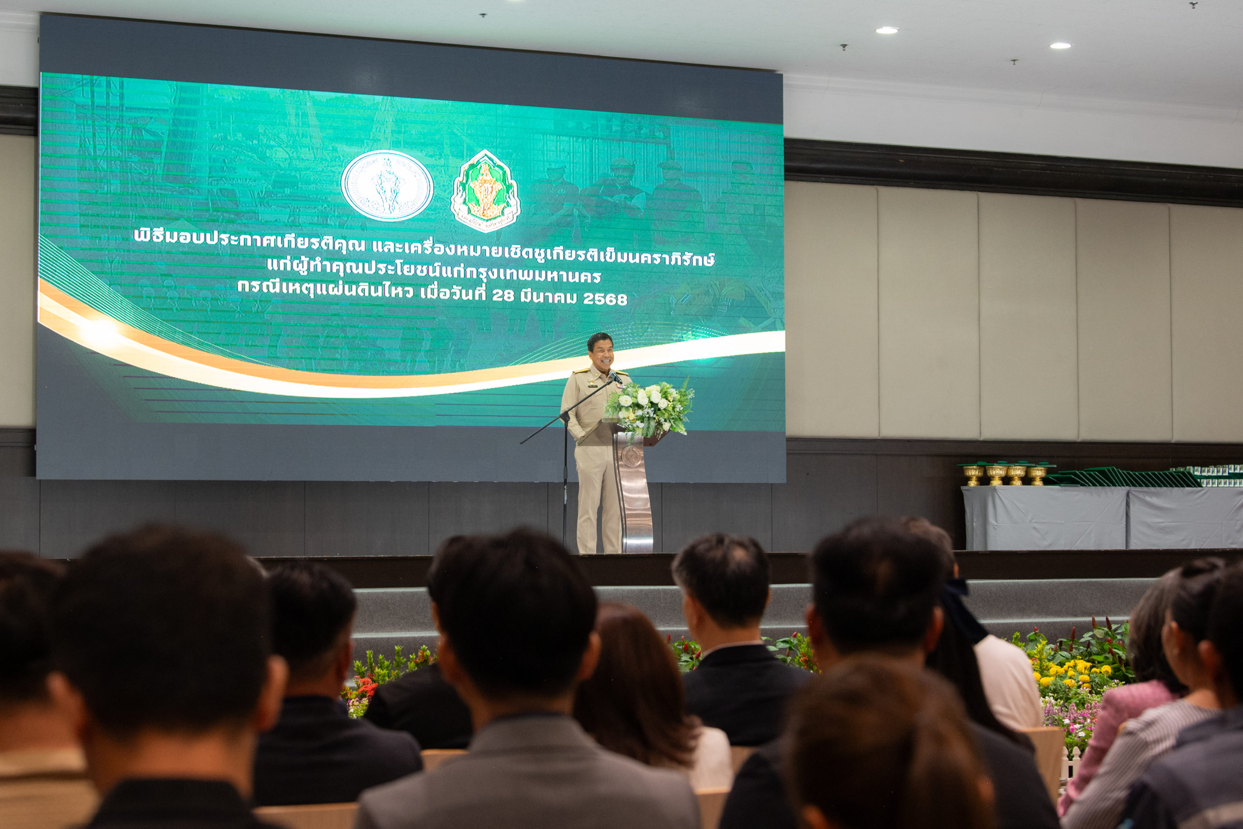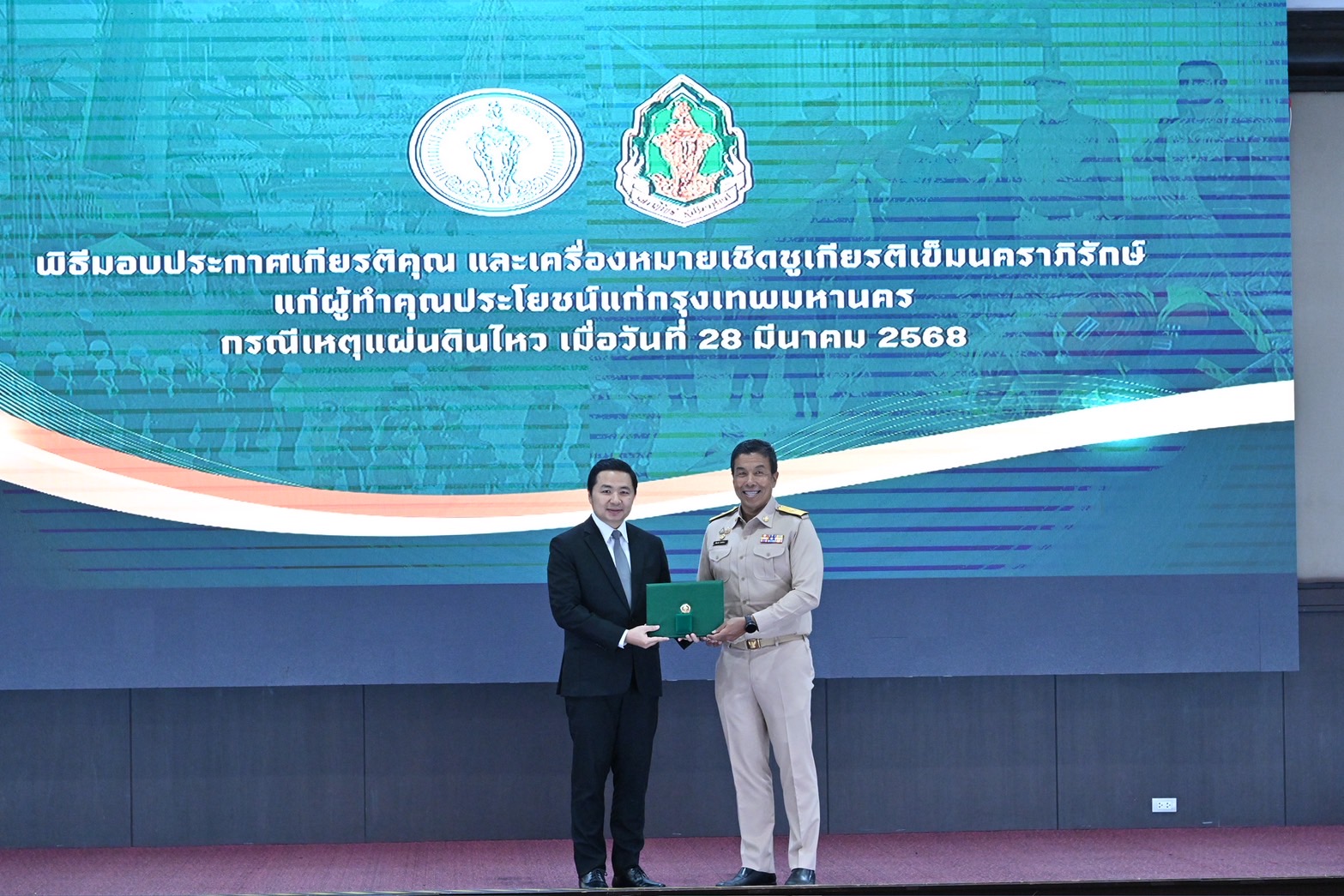 วันศุกร์ที่ 13 มิถุนายน 2568 กรุงเทพมหานครจัดพิธีมอบประกาศเกียรติคุณและเครื่องหมาย “นคราภิรักษ์” เพื่อเชิดชูเกียรติแก่บุคคลและองค์กรที่ร่วมทำคุณประโยชน์แก่เมืองหลวง ในกรณีเหตุแผ่นดินไหวเมื่อวันที่ 28 มีนาคม 2568 โดยมี คุณชัชชาติ สิทธิพันธุ์ ผู้ว่าราชการกรุงเทพมหานคร เป็นประธานในพิธี ในโอกาสนี้ คุณจอมกิตติ ศิริกุล รองกรรมการผู้จัดการใหญ่บริหาร และผู้บริหารสูงสุดด้านพัฒนาความยั่งยืนภาครัฐและกิจการสัมพันธ์ เครือเจริญโภคภัณฑ์ เป็นผู้แทนเข้ารับมอบประกาศเกียรติคุณและเครื่องหมายเกียรติยศดังกล่าว ณ ห้องบางกอก อาคารไอราวัตพัฒนา ศาลาว่าการกรุงเทพมหานคร 2 เขตดินแดง