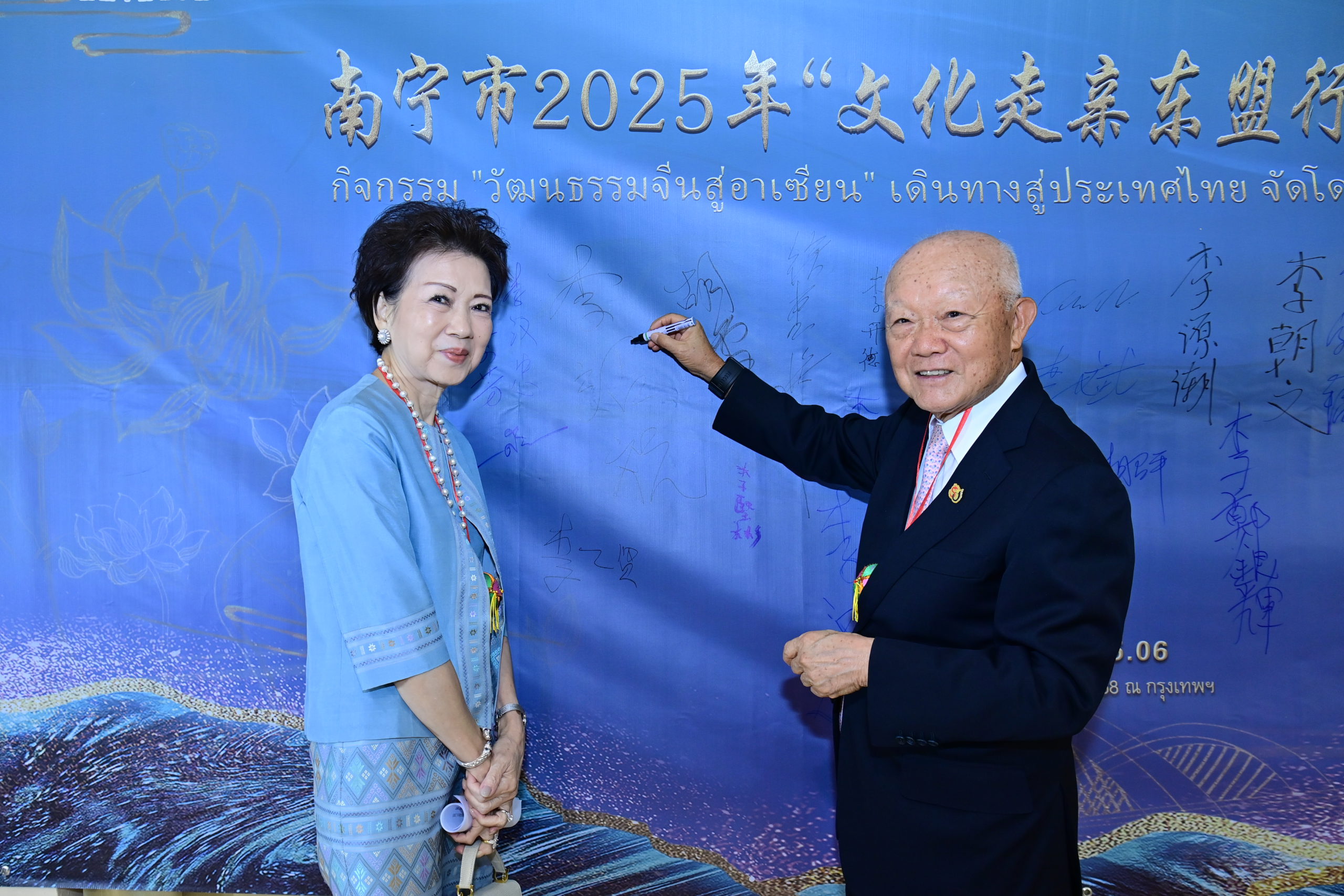 บรรยากาศภายในงานอบอวลไปด้วยความอบอุ่นและเป็นกันเอง แขกผู้มีเกียรติจากทั้งสองประเทศต่างร่วมแต่งกายอย่างสง่างาม ร่วมเป็นสักขีพยานในค่ำคืนแห่งความประทับใจ โดยได้รับเกียรติจากผู้บริหารระดับสูงร่วมกล่าวเปิดงานอย่างเป็นทางการ อาทิ คุณหวาง ชุนเหม่ย รองผู้อำนวยการกองวัฒนธรรมและการท่องเที่ยวนครหนานหนิง คุณธนากร เสรีบุรี รองประธานอาวุโส เครือเจริญโภคภัณฑ์ คุณชุณห์ เลิศชัยประเสริฐ นายกสมาคมตระกูลลี้แห่งประเทศไทย และคุณชิม ชินวิริยกุล นายกสมาคมแต้จิ๋วแห่งประเทศไทยทุกท่านต่างย้ำถึงบทบาทของวัฒนธรรมในฐานะ เครื่องมือทรงพลังในการสื่อสารแบบไร้พรมแดน ที่ช่วยปลูกฝังความเข้าใจ ความเคารพ และมิตรภาพระหว่างชนชาติ อันเป็นรากฐานสำคัญของความร่วมมือที่ยั่งยืนในทุกมิติ