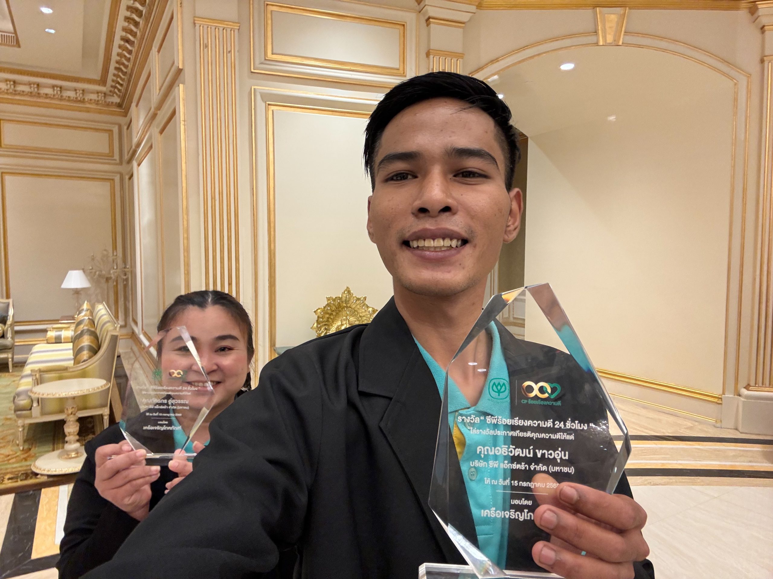 สำหรับการมอบรางวัล “ซีพีร้อยเรียงความดี 24 ชั่วโมง” ครั้งที่ 3/2568 มีเรื่องราวความดี ๆ ของเพื่อนพนักงานจากบริษัทต่าง ๆ ในเครือฯ เกิดขึ้นมากมาย ทั้งการยื่นมือช่วยเหลือผู้อื่นในยามลำบาก หรือการให้บริการที่เต็มไปด้วยหัวใจและเหนือความคาดหมาย โดยมีผู้ได้รับรางวัลในคร้งนี้ รวม 6 คน จาก ซีพีเอฟ ซีพี ออลล์ ซีพี แอ็กซ์ตร้า และทรู