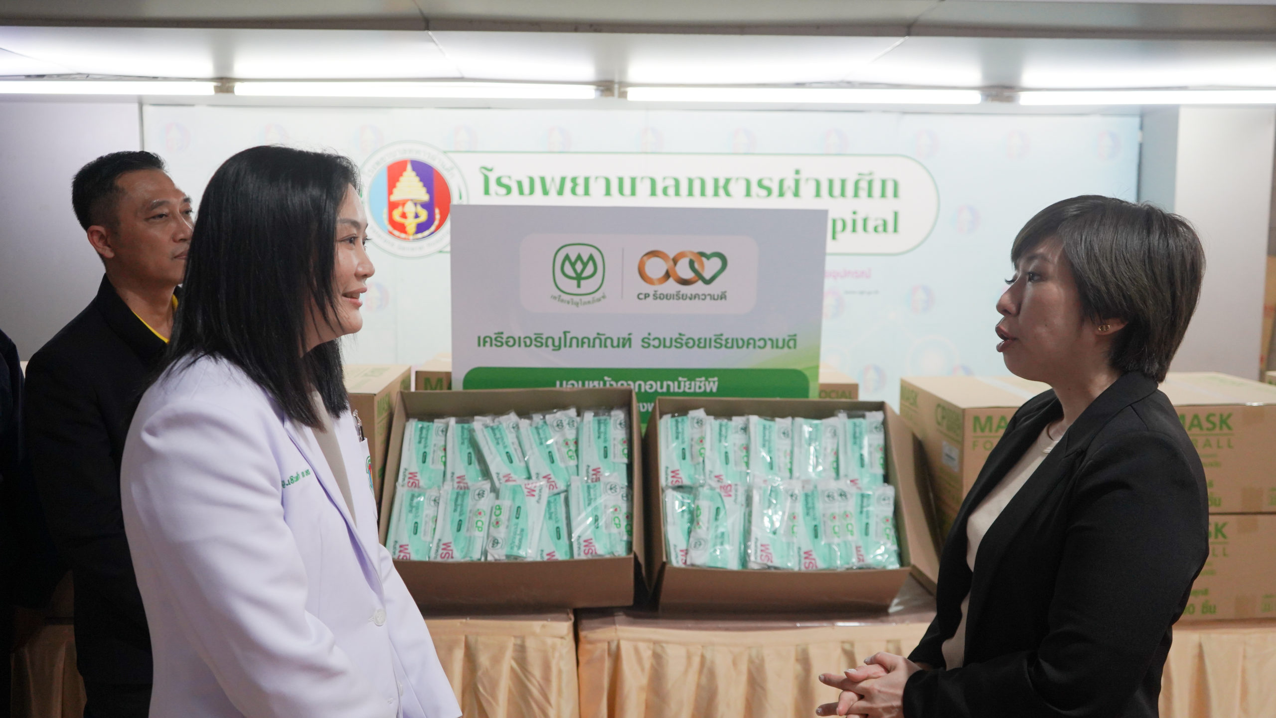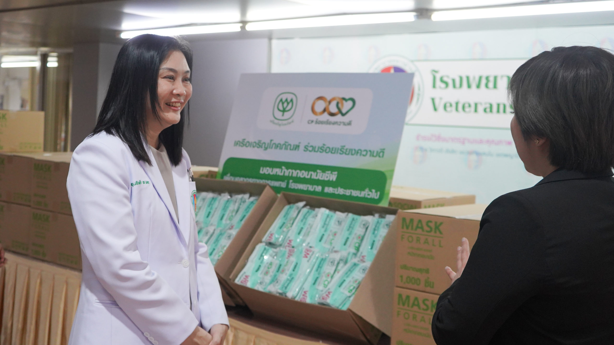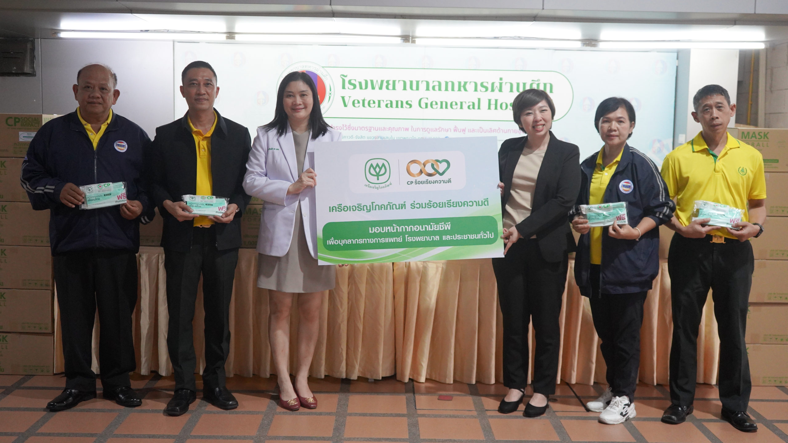เมื่อวันที่ 1 สิงหาคม 2568 เครือเจริญโภคภัณฑ์เดินหน้ายกระดับพลังแห่งการให้ ภายใต้โครงการ “ซีพีร้อยเรียงความดี” โดยส่งมอบหน้ากากอนามัยซีพี จำนวน 50,000 ชิ้น ให้แก่โรงพยาบาลทหารผ่านศึก เพื่อสนับสนุนการทำงานของบุคลากรทางการแพทย์และเจ้าหน้าที่ในการดูแลรักษาทหารผ่านศึกและประชาชนทั่วไป โดย คุณรัชเกล้า คัจฉสุวรรณมณี ผู้ช่วยกรรมการผู้จัดการ สำนักยุทธศาสตร์ข้อมูลและการสื่อสาร เครือเจริญโภคภัณฑ์ เป็นผู้แทนมอบ โดยมี แพทย์หญิงเอินฟ้า ณ นคร รองผู้อำนวยการโรงพยาบาลทหารผ่านศึก (ฝ่ายบริหาร) เป็นผู้แทนรับมอบในนามของโรงพยาบาลทหารผ่านศึก
