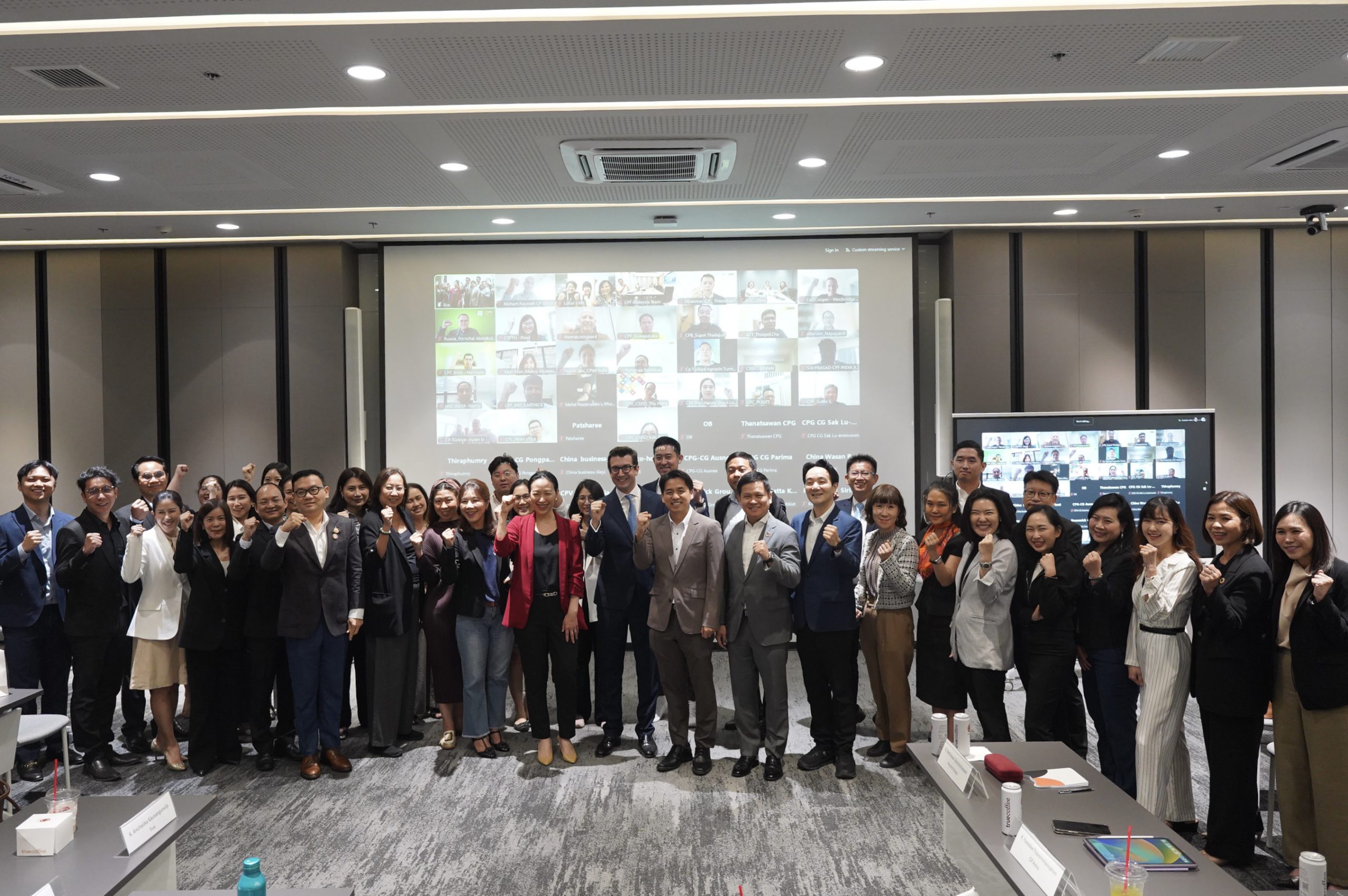 วันที่ 8 สิงหาคม 2568 สำนักยุทธศาสตร์ข้อมูลและการสื่อสาร และสำนักความร่วมมือระหว่างประเทศด้านความยั่งยืนและสื่อสารองค์กร เครือเจริญโภคภัณฑ์ ร่วมกันจัดการประชุมการสื่อสารเชิงรุก C.P. Group Global Communications Network Meeting เวทีเชื่อมพลังทีมสื่อสารองค์กรจาก 21 ประเทศ เปิดโอกาสให้ทีมสื่อสารในแต่ละประเทศแลกเปลี่ยนความรู้และทำงานร่วมกัน เพื่อขับเคลื่อนยุทธศาสตร์ด้านการสื่อสารองค์กรและประชาสัมพันธ์ในระดับเครือฯ พร้อมยกระดับทักษะการสื่อสารเพื่อสร้างภาพลักษณ์และความน่าเชื่อถือของแบรนด์ให้ชัดเจนและแข็งแรงยิ่งขึ้น ณ True Digital Park West นำโดย ดร.ธีระพล ถนอมศักดิ์ยุทธ ประธานคณะผู้บริหารยุทธศาสตร์ข้อมูลและการสื่อสาร เครือเจริญโภคภัณฑ์ ดร.เนติธร ประดิษฐ์สาร ผู้ช่วยบริหารประธานคณะผู้บริหาร รองกรรมการผู้จัดการอาวุโส สำนักความร่วมมือระหว่างประเทศ คุณหวง เหวยเหว่ย รองกรรมการผู้จัดการอาวุโส กรรมการผู้จัดการด้านพัฒนากลยุทธ์และความร่วมมือกับประเทศจีน คุณสมเจตนา ภาสกานนท์ รองกรรมการผู้จัดการอาวุโส ด้านความยั่งยืน คุณวรวิทย์ วรุตบางกูร หัวหน้าคณะผู้บริหารด้านกำกับการปฏิบัติตามกฎเกณฑ์ คุณวสันต์ เพียรการ กรรมการผู้จัดการด้านบัญชีการเงิน Ms. Liu Yihua (Eva) Senior Vice President จากซีพีเอฟ ประเทศจีน Carl Cooper ตำแหน่ง Responsible Sourcing Manager จากซีพีเอฟ สหราชอาณาจักร คุณนันทพัทธ์ พวงประทุม Head of SHE & Sustainability Development จากซีพีเอฟ ประเทศอินเดีย และมีผู้เข้าร่วมงานทั้งออนไซต์และออนไลน์รวมกว่า 100 ท่าน