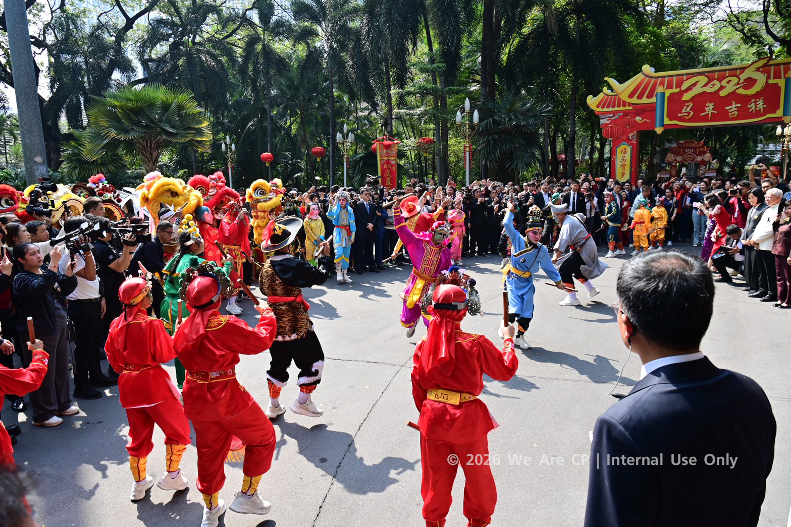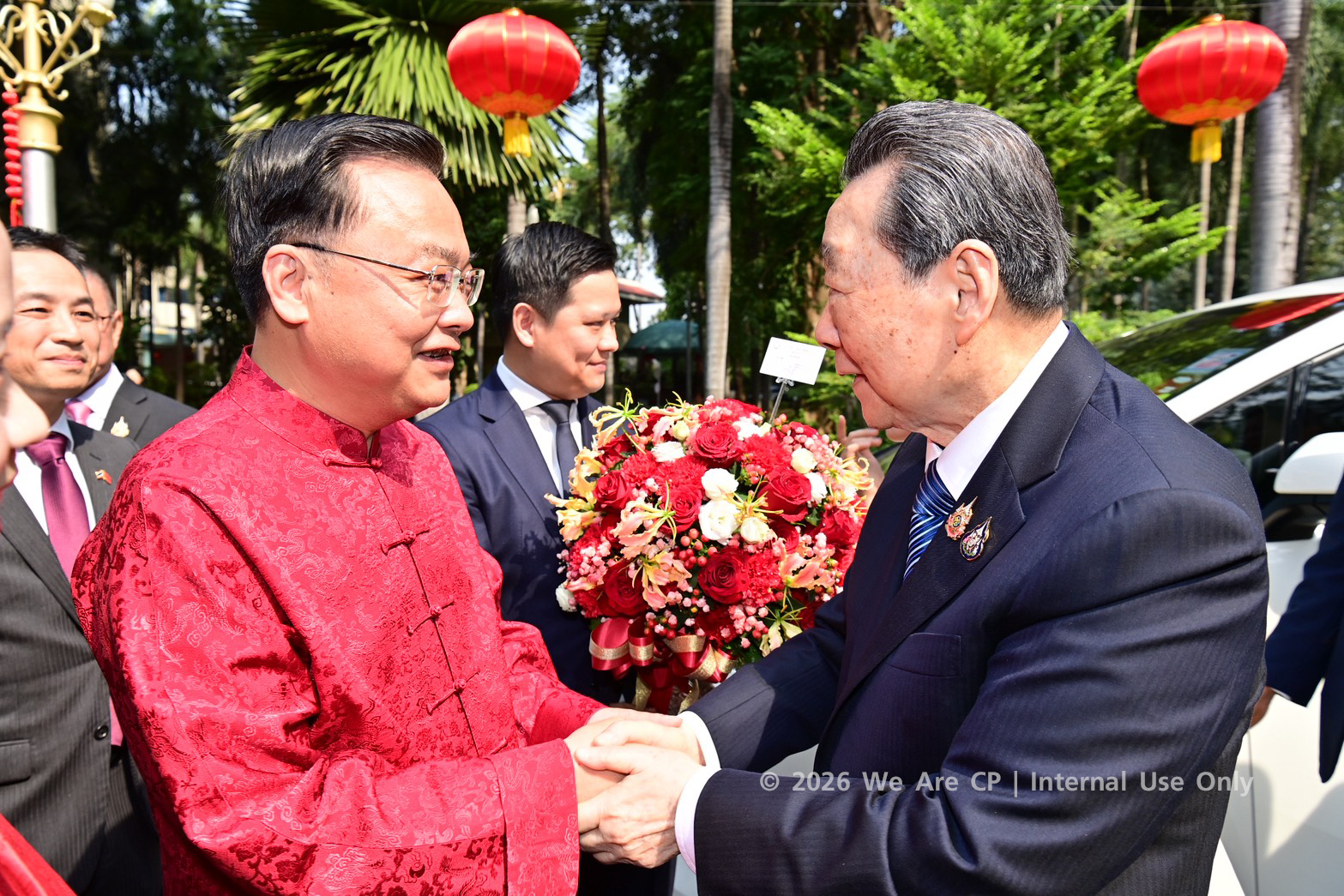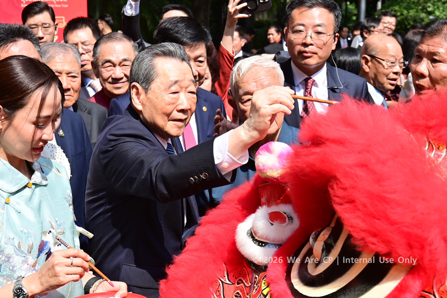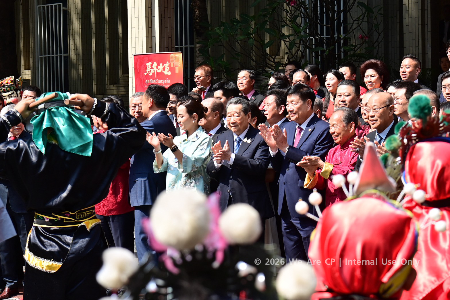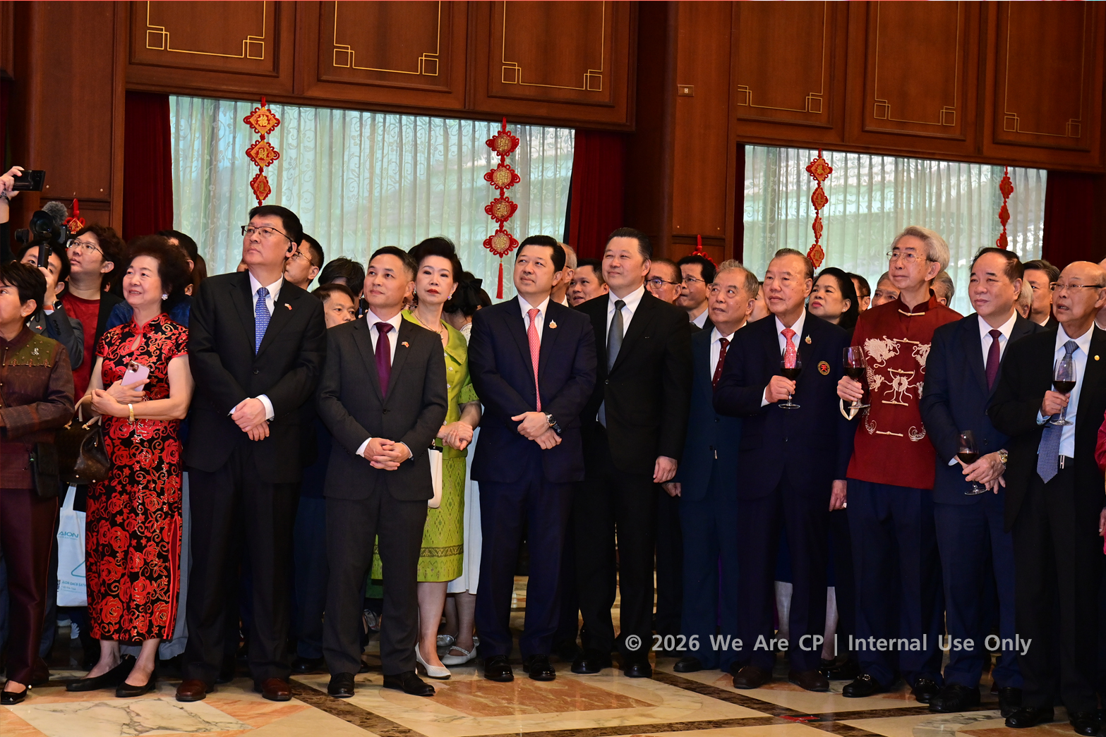 ในโอกาสนี้ คุณจาง เจี้ยนเหว่ย เอกอัครราชทูตสาธารณรัฐประชาชนจีนประจำประเทศไทย พร้อมด้วยภริยา คุณเหมียว ไห่เยี่ยน ให้การต้อนรับแขกผู้มีเกียรติอย่างอบอุ่น โดยมีผู้บริหารระดับสูงของเครือเจริญโภคภัณฑ์เข้าร่วมแสดงความยินดี นำโดย ท่านประธานอาวุโส ธนินท์ เจียรวนนท์ พร้อมด้วย คุณสุภกิต เจียรวนนท์ คุณศุภชัย เจียรวนนท์ คุณธนิศร์ เจียรวนนท์ และคุณหวง เหวยเหว่ย ร่วมมอบแจกันดอกไม้แสดงความยินดี ภายในงานมีการแสดงอิงเกอ (Yingge) การเชิดสิงโต และการแสดงศิลปวัฒนธรรมจีน เนื่องในเทศกาลตรุษจีน ตลอดจนนิทรรศการวัฒนธรรมพื้นบ้านที่ถ่ายทอดอัตลักษณ์และคุณค่ามรดกทางวัฒนธรรมอันล้ำค่า สร้างสีสันและความประทับใจแก่ผู้ร่วมงาน