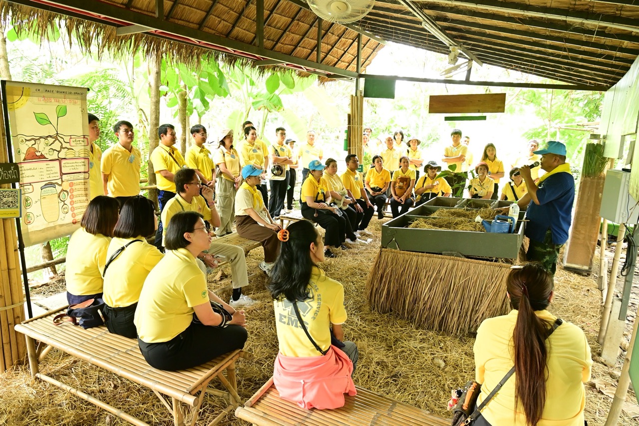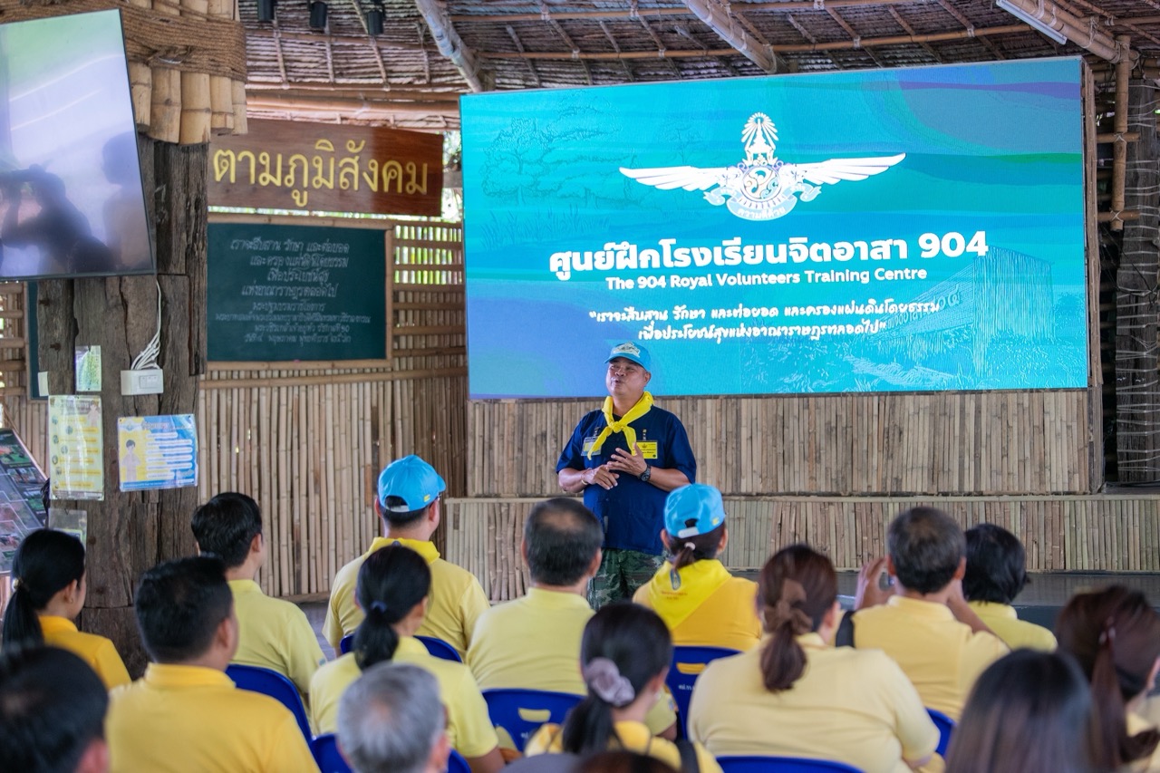 พร้อมด้วยเหล่าพนักงานจากกลุ่มธุรกิจ ได้แก่ บมจ.เจริญโภคภัณฑ์อาหาร (CPF) บมจ.ซีพี ออลล์ (CPALL) บมจ.ซีพี แอ็กซ์ตร้า (CP AXTRA) ทรู คอร์ปอเรชั่น (TRUE) บมจ.ซีพีพีซี (CPPC) บมจ.ซี.พี. แลนด์ (CPLAND) บจก.ข้าว ซี.พี. (CPI) บจก.พัฒนาผู้นำเครือเจริญโภคภัณฑ์(CPLI) บจก.เจริญโภคภัณฑ์วิศวกรรม (CP CROP) บจก.แอสเซนด์ กรุ๊ป (ASCEND GROUP) บจก.เกษตรภัณฑ์อุตสาหกรรม บจก.สยามแลนด์ ฟลายอิ้ง จำนวน 120 คน เพื่อน้อมนำพระราชปณิธาน “สืบสาน รักษา ต่อยอด”มาเป็นแนวทางในการร้อยเรียงความดี ทำประโยชน์เพื่อสังคม โดยเรียนรู้หลักสูตรการฝึกปฏิบัติอดูงานเศรษฐกิจพอเพียง และเกษตรทฤษฎีใหม่ตามศาสตร์พระราชา พร้อมสร้างความตระหนักรู้ถึงพระมหากรุณาธิคุณของสถาบันพระมหากษัตริย์ รวมถึงสร้างความเข้าใจถึงเป้าหมายของจิตอาสา สามารถประยุกต์ใช้ในชีวิตประจำวันและขยายผลสู่สังคมโดยรวม ณศูนย์ฝึกโรงเรียนจิตอาสา 904 (บางเขน)