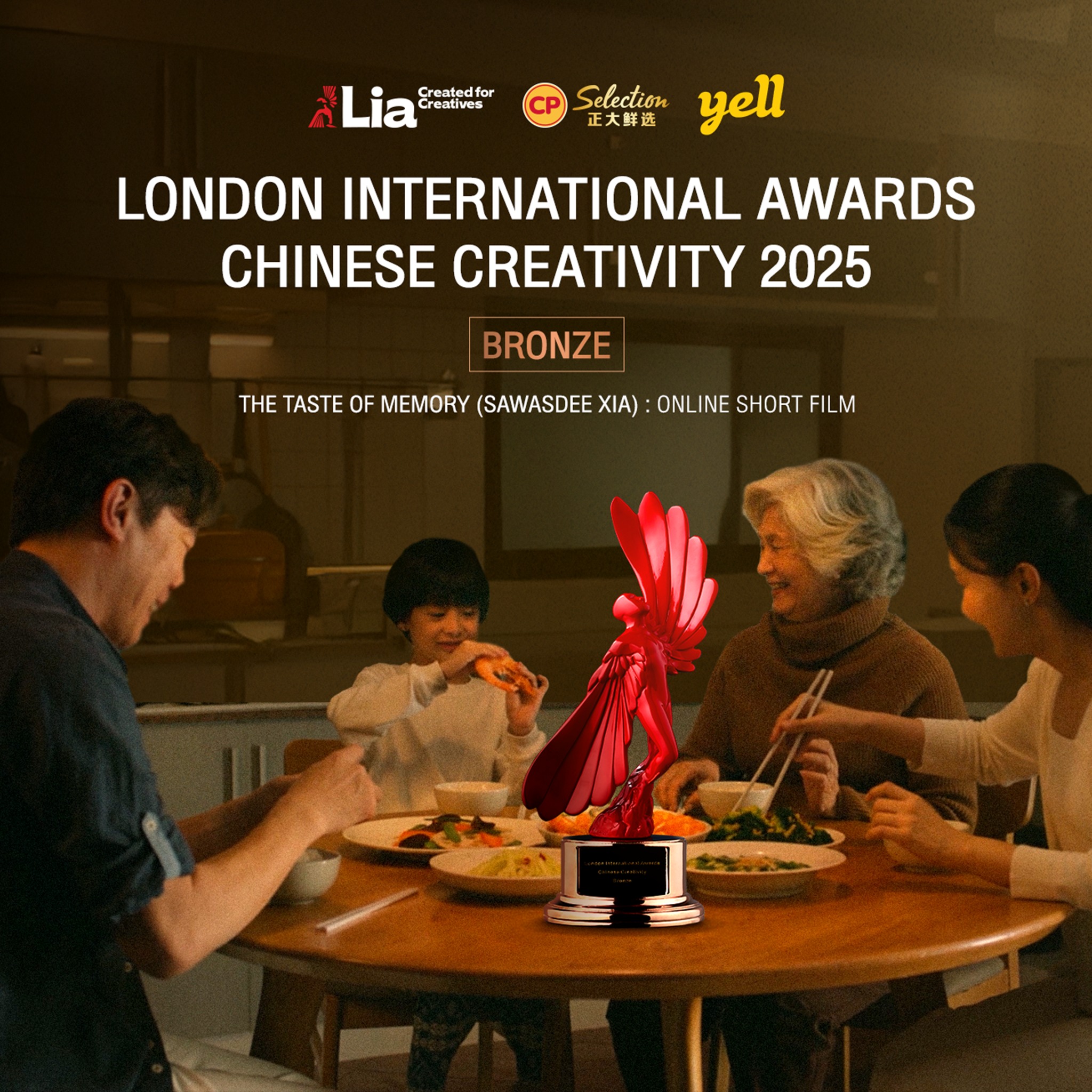 อีกหนึ่งความภาคภูมิใจของคนไทยบนเวทีโลก เมื่อ เครือเจริญโภคภัณฑ์ (CP Group) ร่วมกับ บริษัท เยล เซี่ยงไฮ้ (Yell Shanghai) คว้า เหรียญทองแดง จากเวที London International Awards 2025 (LIA) สาขา Chinese Creativity 2025 – Online Short Film กับผลงานภาพยนตร์โฆษณา “The Taste of Memory — Sawasdee Xia” ที่ถ่ายทอดเรื่องราวแห่ง “ความรัก ความทรงจำ และรสชาติของบ้าน” ได้อย่างงดงามและทรงพลัง