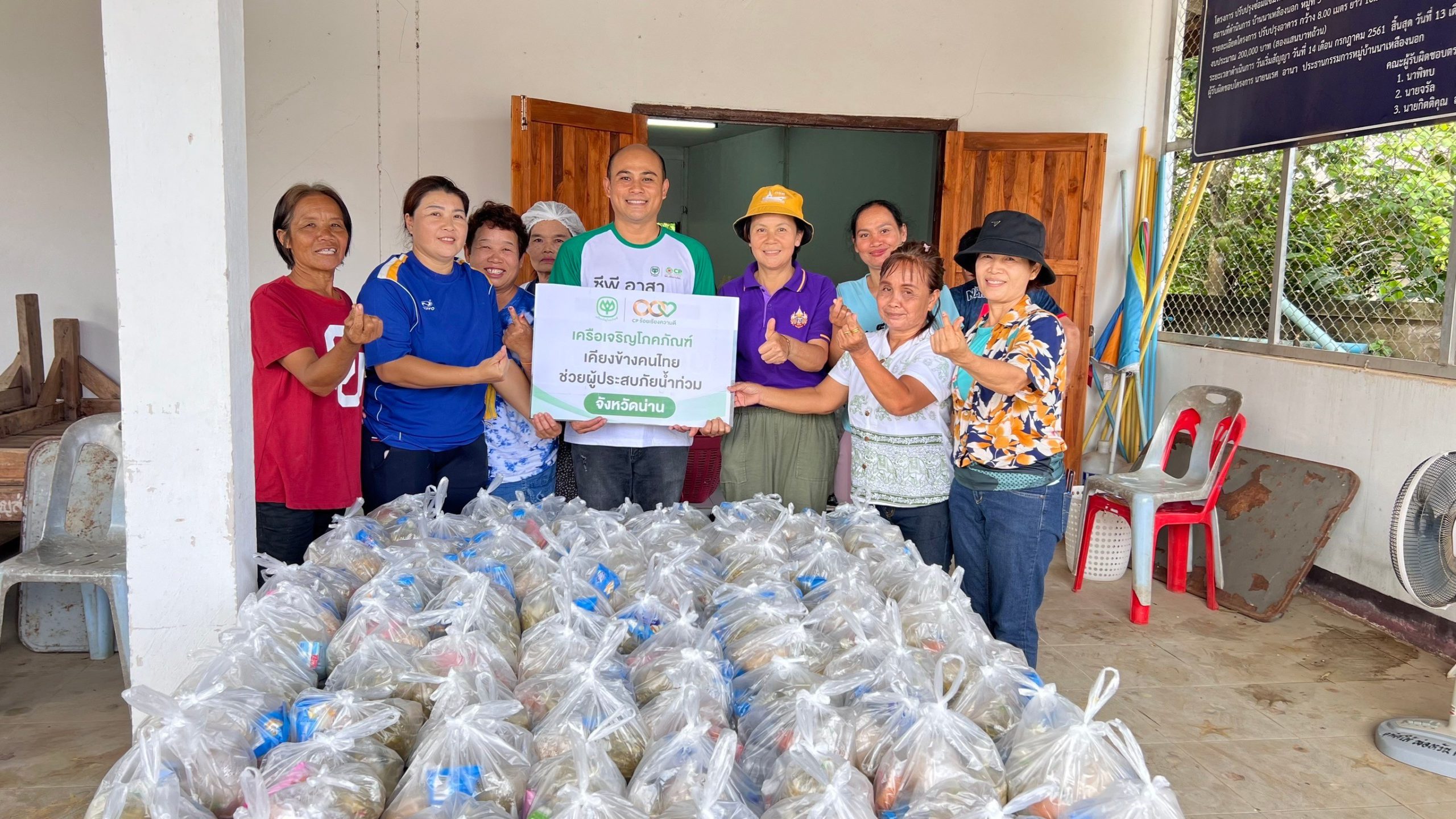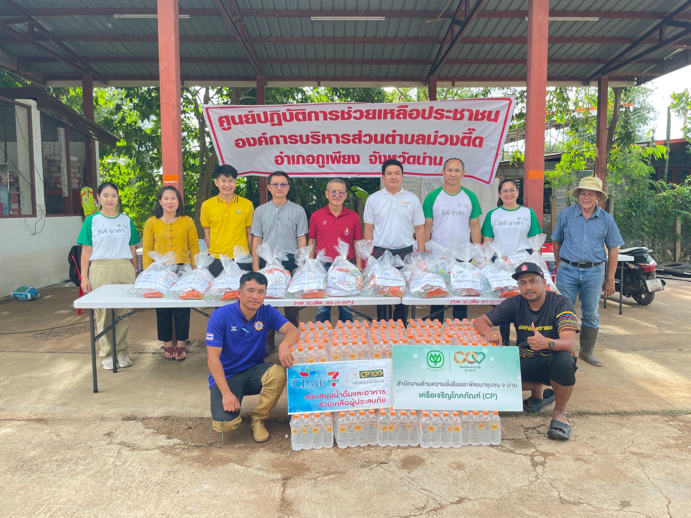 และในช่วงบ่าย ซีพีอาสา ได้มอบถุงยังชีพ และน้ำดื่ม ณ ศาลากลางจังหวัดน่าน และลงพื้นที่แจกจ่ายให้กับชาวบ้านในจุดต่างๆ ใน อ.ภูเพียง อย่างทั่วถึง เพื่อมีส่วนช่วยลดผลกระทบจากสถานการณ์ดังกล่าว