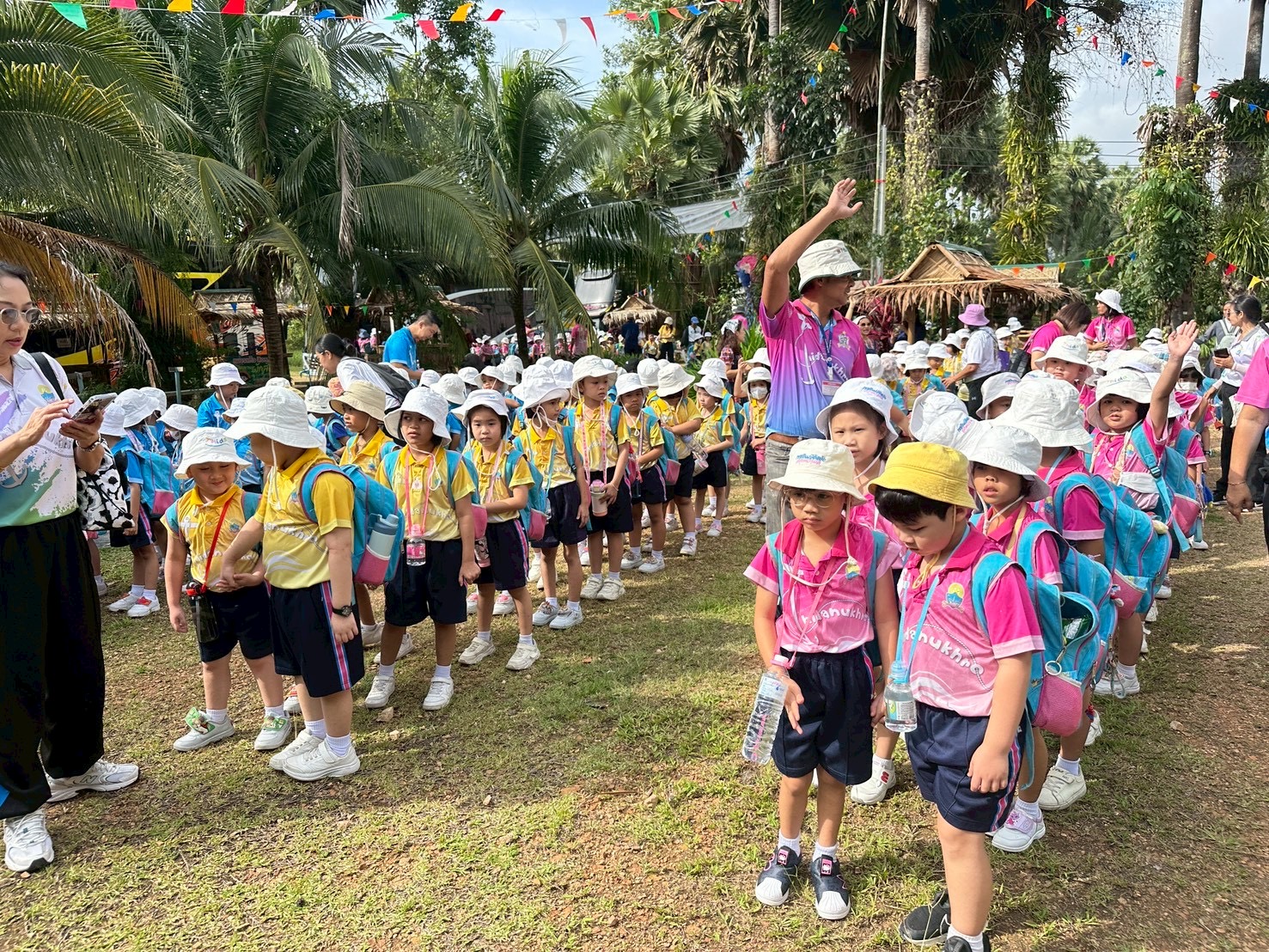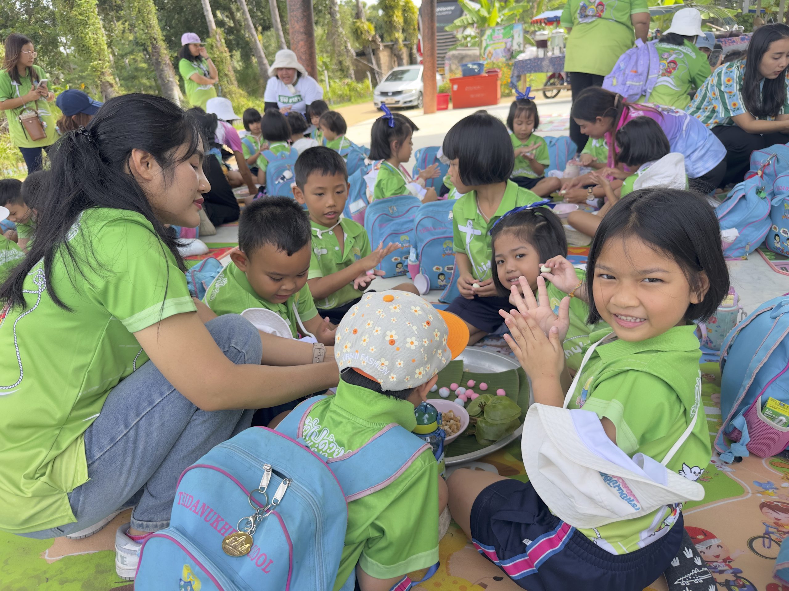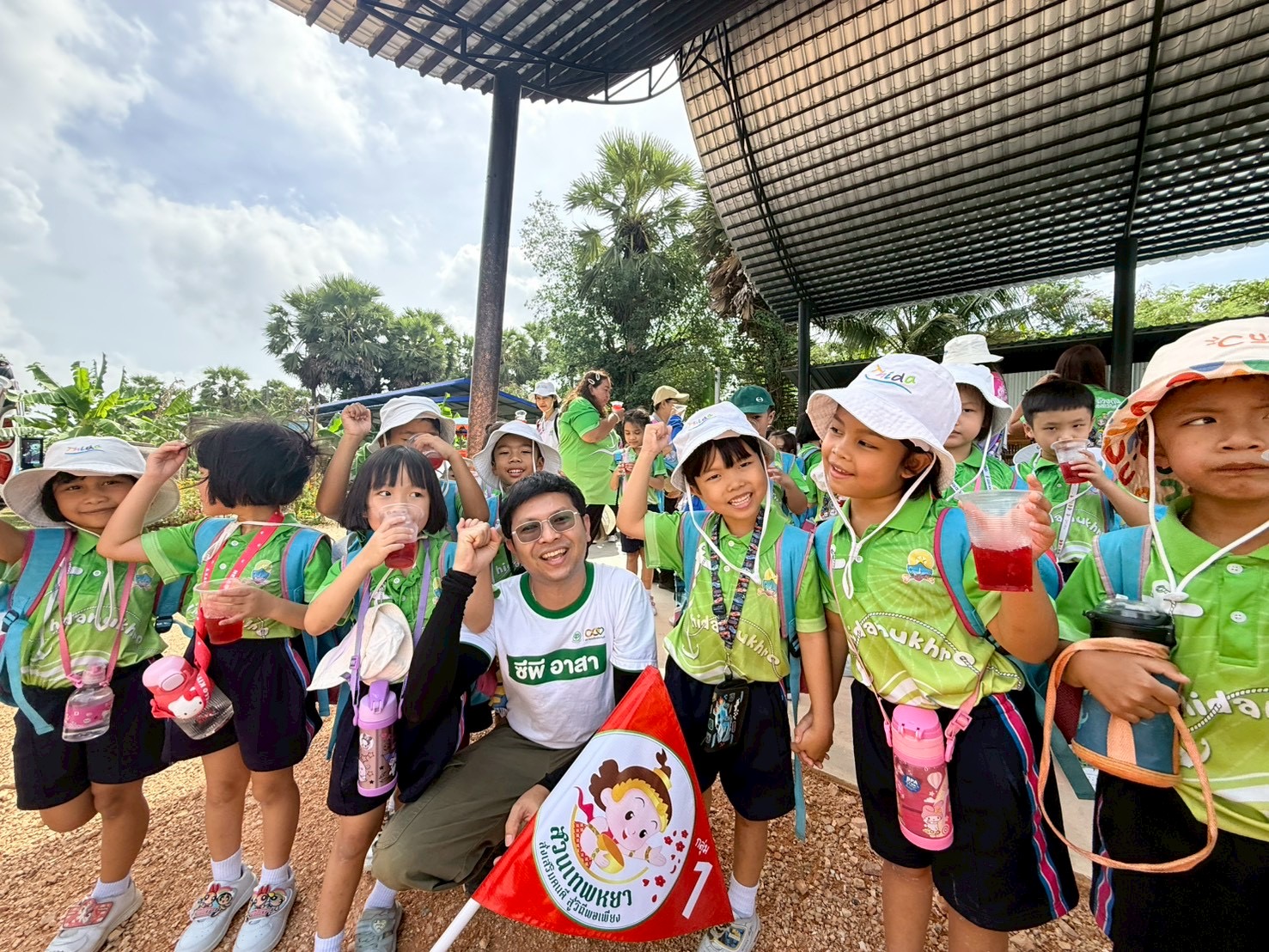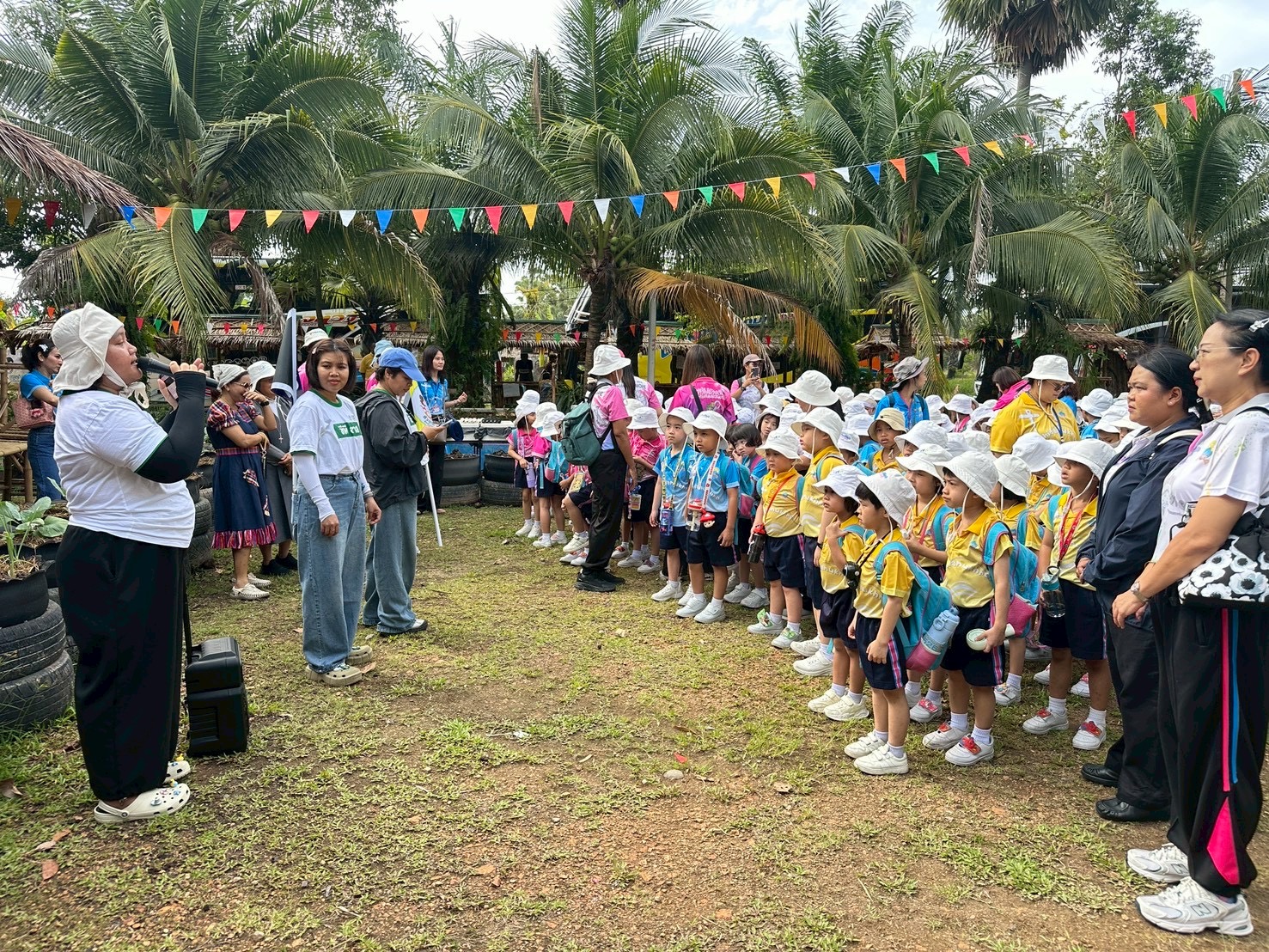 โดยกิจกรรมในครั้งนี้ มุ่งเน้นการเรียนรู้วิถีพื้นบ้านผ่านการทำขนมท้องถิ่นและการแปรรูปสบู่จากตาลโตนด ต่อด้วยการนั่งรถรางชมทัศนียภาพรอบพื้นที่เพื่อศึกษาสภาพแวดล้อมและอัตลักษณ์ของชุมชนที่เป็นหัวใจสำคัญ นอกจากนี้ เด็ก ๆ ยังได้เรียนรู้กิจกรรม “บ้านปลามีชีวิต” และสนุกสนานไปกับการเรียนรู้เรื่องการดูแลทรัพยากรทางทะเลผ่านเกมสันทนาการเชิงสร้างสรรค์ที่จัดโดยทีมงานสำนักปฏิบัติการความยั่งยืนทางทะเล เครือเจริญโภคภัณฑ์ ซึ่งเน้นการปลูกจิตสำนึกรักษ์สิ่งแวดล้อมให้ฝังรากลึกตั้งแต่เยาว์วัย มุ่งสร้างรากฐานชีวิตตามวิถีแผ่นดินธรรม แผ่นดินทอง เพื่อให้เด็กๆ ได้เรียนรู้คุณค่าของธรรมชาติและชุมชนอย่างสมดุลตั้งแต่วัยเริ่มต้นของการเติบโต และกลายเป็นบุคลากรที่มีคุณภาพทั้งร่างกายและจิตใจของสังคมไทยต่อไป