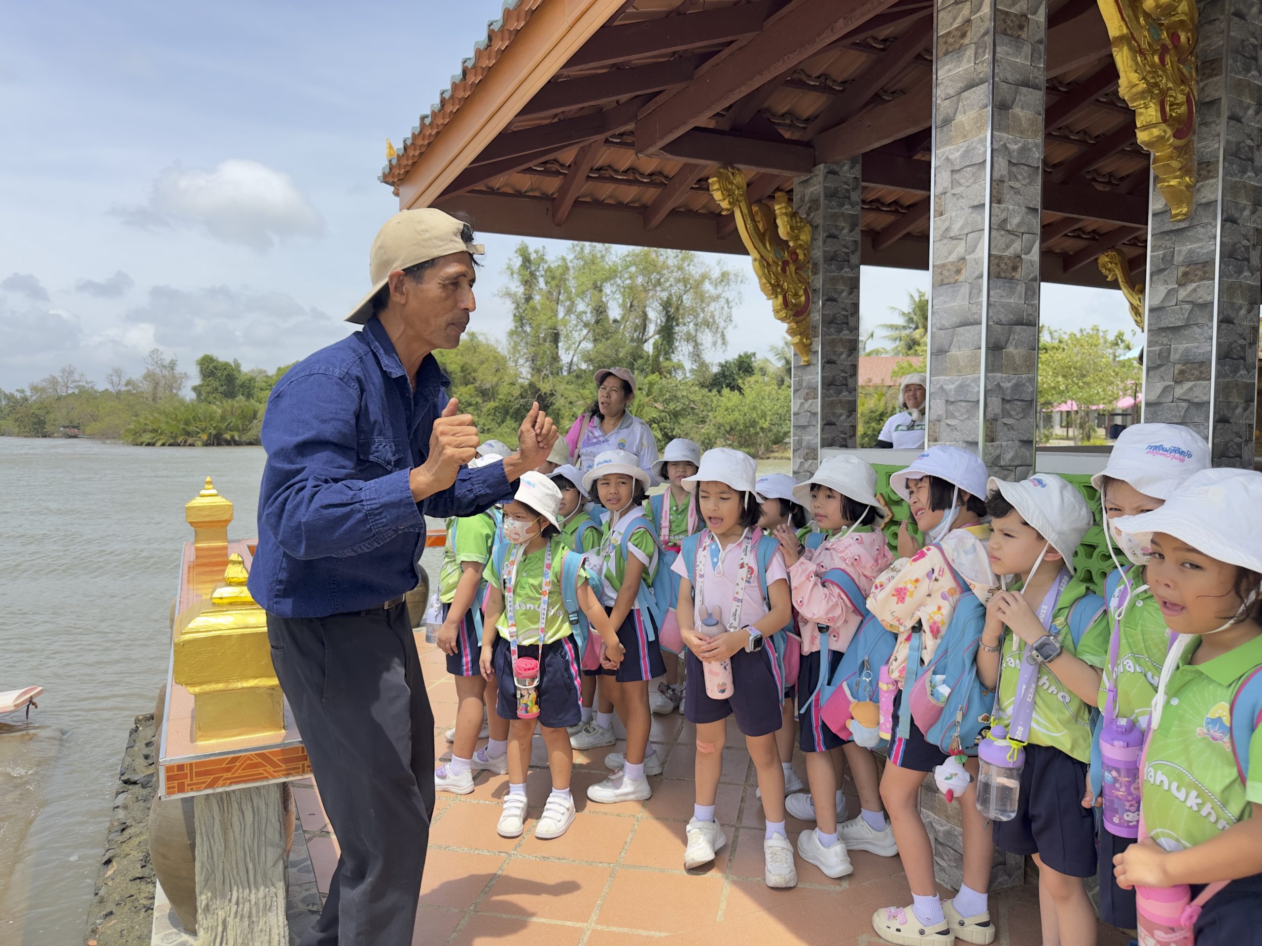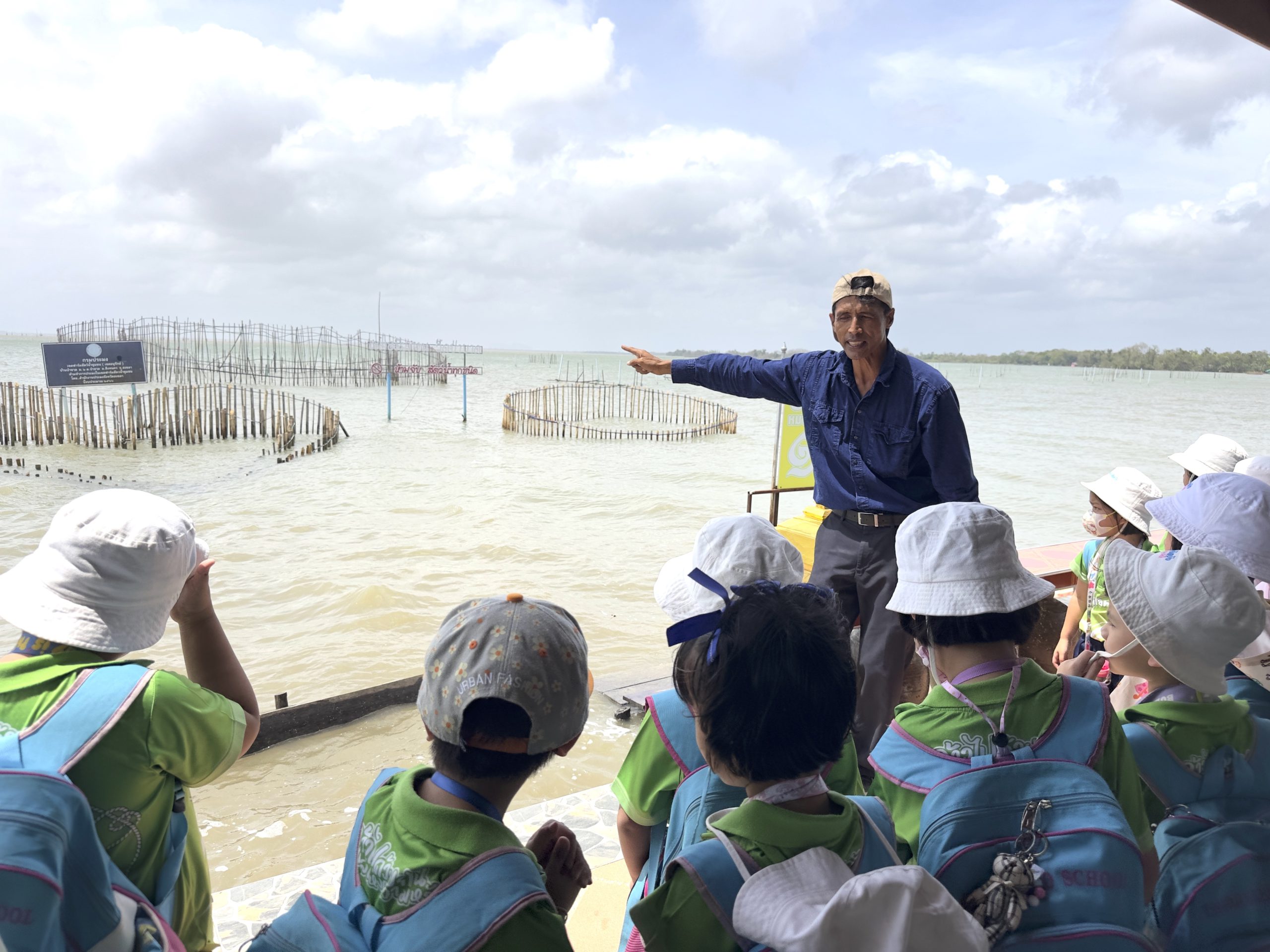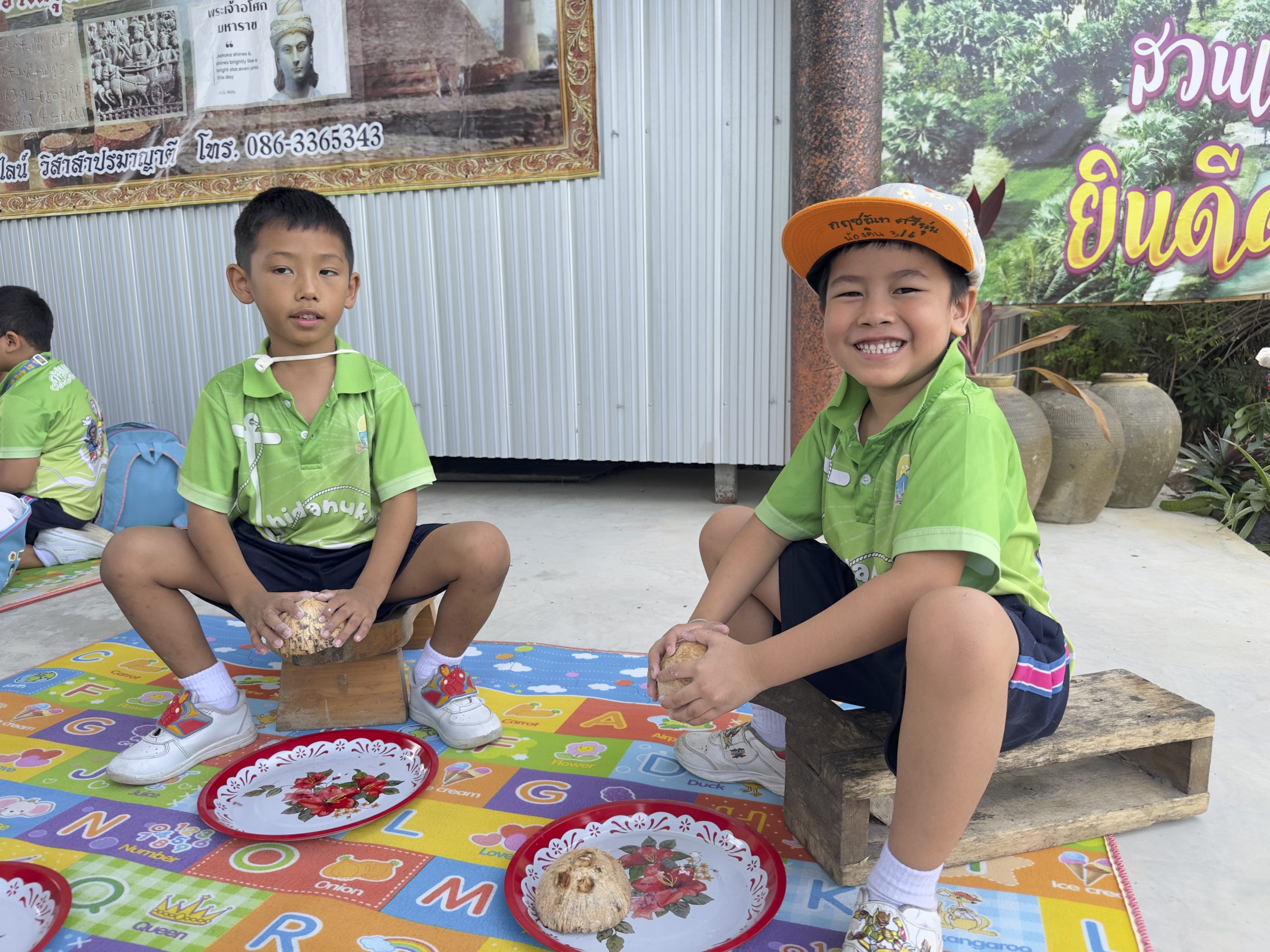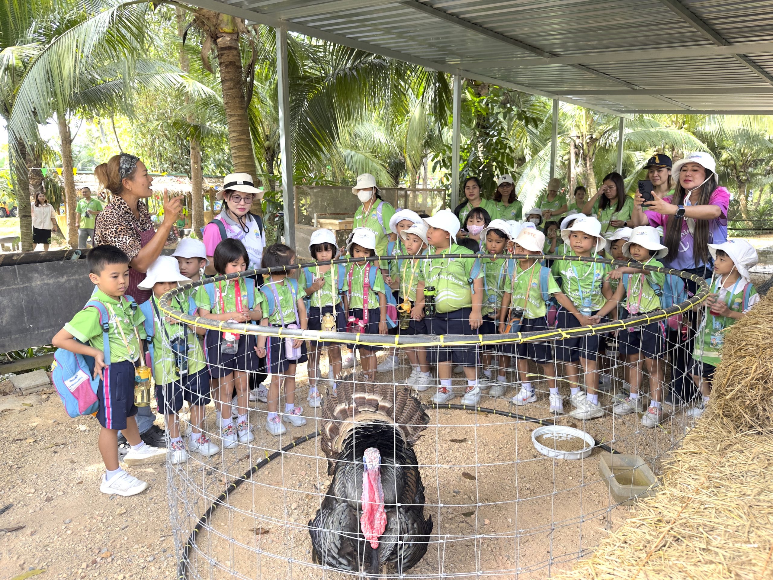 โดยกิจกรรมในครั้งนี้ มุ่งเน้นการเรียนรู้วิถีพื้นบ้านผ่านการทำขนมท้องถิ่นและการแปรรูปสบู่จากตาลโตนด ต่อด้วยการนั่งรถรางชมทัศนียภาพรอบพื้นที่เพื่อศึกษาสภาพแวดล้อมและอัตลักษณ์ของชุมชนที่เป็นหัวใจสำคัญ นอกจากนี้ เด็ก ๆ ยังได้เรียนรู้กิจกรรม “บ้านปลามีชีวิต” และสนุกสนานไปกับการเรียนรู้เรื่องการดูแลทรัพยากรทางทะเลผ่านเกมสันทนาการเชิงสร้างสรรค์ที่จัดโดยทีมงานสำนักปฏิบัติการความยั่งยืนทางทะเล เครือเจริญโภคภัณฑ์ ซึ่งเน้นการปลูกจิตสำนึกรักษ์สิ่งแวดล้อมให้ฝังรากลึกตั้งแต่เยาว์วัย มุ่งสร้างรากฐานชีวิตตามวิถีแผ่นดินธรรม แผ่นดินทอง เพื่อให้เด็กๆ ได้เรียนรู้คุณค่าของธรรมชาติและชุมชนอย่างสมดุลตั้งแต่วัยเริ่มต้นของการเติบโต และกลายเป็นบุคลากรที่มีคุณภาพทั้งร่างกายและจิตใจของสังคมไทยต่อไป