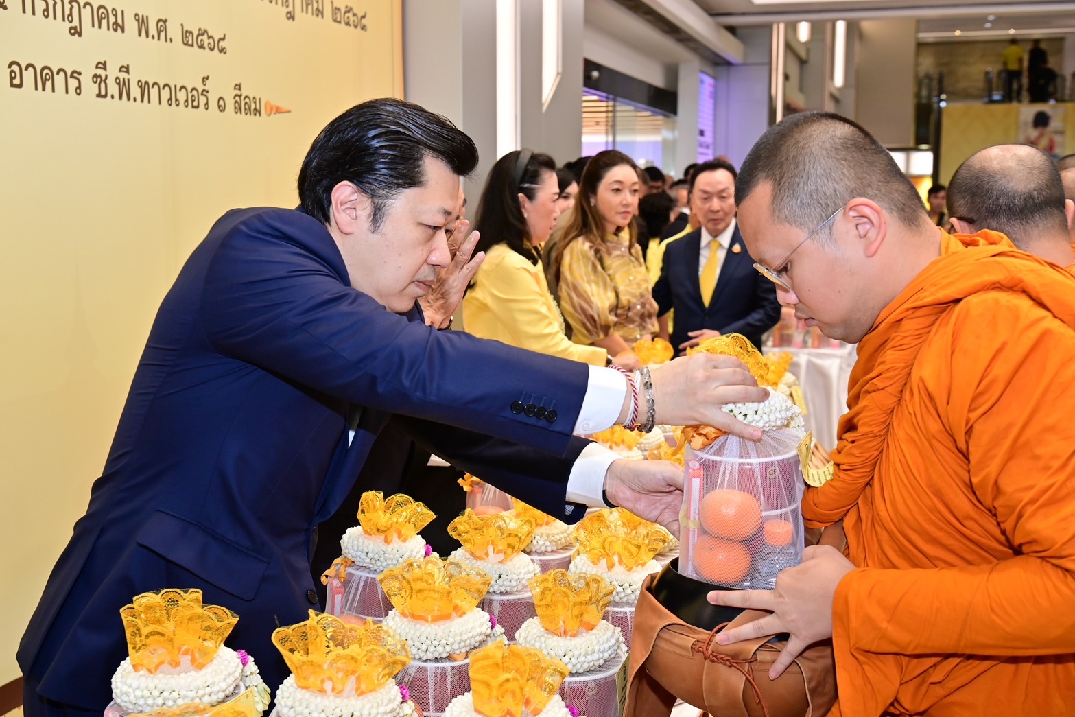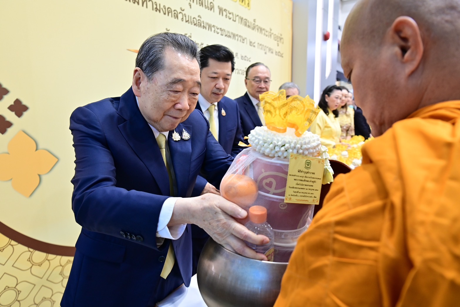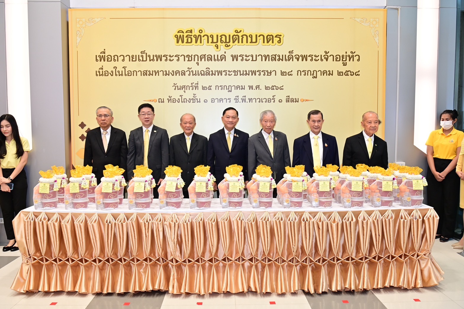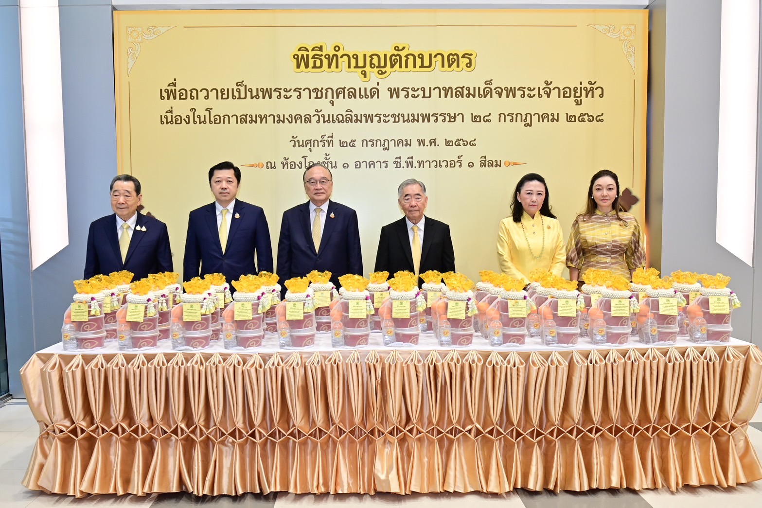ช่วงเช้าวันที่ 25 กรกฎาคม 2568 – เครือเจริญโภคภัณฑ์ นำโดย ท่านประธานอาวุโสธนินท์ เจียรวนนท์ พร้อมด้วย คุณวรรณี (เจียรวนนท์) รอสส์ คุณมาริษา เจียรวนนท์ คุณศุภชัย เจียรวนนท์ ประธานคณะผู้บริหาร เครือฯ นำคณะผู้บริหารระดับสูง อาทิ ดร.อาชว์ เตาลานนท์ คุณอดิเรก ศรีประทักษ์ คุณพงษ์เทพ เจียรวนนท์ คุณประเสริฐ พุ่งกุมาร คุณธีรยุทธ พิทยาอิสรกุล คุณมิน เธียรวร คุณอรุณี วัชรานานันท์ คุณประสิทธิ์ บุญดวงประเสริฐ คุณยุทธศักดิ์ ภูมิสุรกุล คุณประสิทธิ์ ดํารงชิตานนท์ คุณบุญชัย โอภาสเอี่ยมลิขิต ดร.ธีระพล ถนอมศักดิ์ยุทธ คุณซิกเว่ เบรกเก้ คุณสมศักดิ์ เลิศชัย คุณฐิติ ลุจินตานนท์ คุณวรวิทย์ เจนธนากุล คุณสุขวัฒน์ ด่านเสริมสุข และพนักงานเครือซีพีจากทุกกลุ่มธุรกิจ ต่างพร้อมใจกันแสดงความจงรักภักดีและสำนึกในพระมหากรุณาธิคุณ ร่วมทำบุญตักบาตรพระสงฆ์ จำนวน 74 รูป ถวายพระราชกุศลแด่พระบาทสมเด็จพระเจ้าอยู่หัว เนื่องในโอกาสพระราชพิธีมหามงคลเฉลิมพระชนมพรรษาครบ 73 พรรษา และเป็นการแสดงความเป็นอันหนึ่งอันเดียวกันของชาวซีพี ณ อาคาร ซี.พี.ทาวเวอร์ สีลม