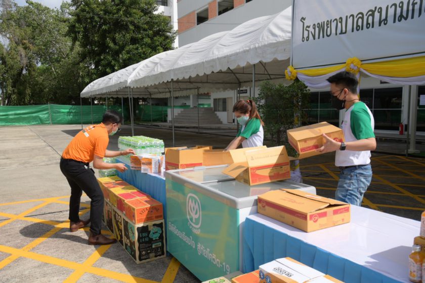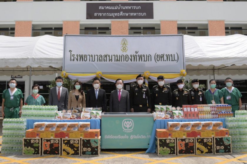 ในการนี้ ผู้แทนเครือซีพี นำโดย คุณวรวิทย์ เจนธนากุล กรรมการบริหาร และรองกรรมการผู้จัดการบริหาร บมจ.เจริญโภคภัณฑ์อาหาร หรือซีพีเอฟ พร้อมด้วย คุณศิริพร เดชสิงห์ รองประธานเจ้าหน้าที่บริหาร สายงานการสื่อสารองค์กร บมจ.สยามแม็คโคร คุณพิชิต ธันโยดม หัวหน้าคณะผู้บริหารด้านธุรกิจองค์กร บมจ. ทรู คอร์ปอเรชั่น และนายวิเชียร จึงวิโรจน์ กรรมการบริหารและรองกรรมการผู้จัดการอาวุโส บมจ.ซีพี ออลล์ ร่วมส่งมอบอาหารและน้ำดื่ม และอำนวยความสะดวกด้านการสื่อสาร แก่ผู้ป่วยโควิด-19 และบุคลากรทางการแพทย์ในโรงพยาบาลสนามสังกัดกองทัพบก โดยมี พล.ท.ชาญชัย ติกขะปัญโญ เจ้ากรมแพทย์ทหารบก พล.ต.เฟื่องวิทย์ เลาหสุรโยธิน เจ้ากรมสวัสดิการทหารบก พลตรี สรรเสริญ คล้ายแก้ว เสนาธิการกรมยุทธศึกษาทหารบก เป็นผู้แทนรับมอบ ณ โรงพยาบาลสนามกรมยุทธศึกษาทหารบก เขตดุสิต กรุงเทพฯ