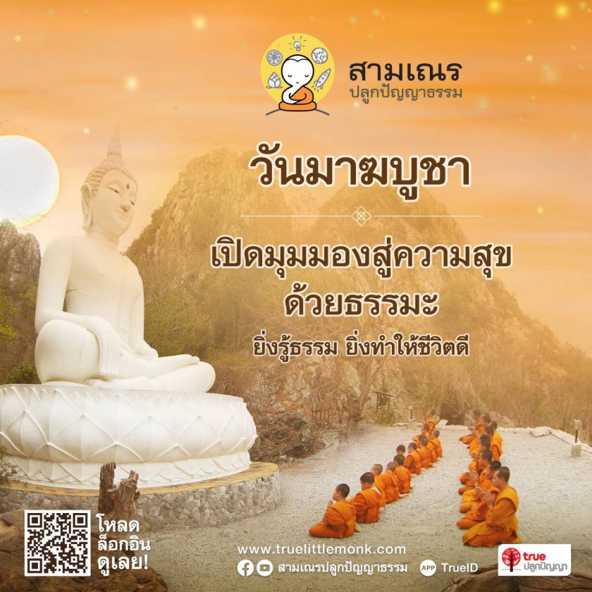 และเพื่อเป็น “มาฆปูรณมีบูชา” ขอเชิญพุทธศาสนิกชนทุกท่าน ร่วมเปิดมุมมองสู่ความสุขด้วยธรรมะ เพราะยิ่งรู้ธรรม ยิ่งทำให้ชีวิตดี โดยรับชมการบรรยายธรรมะจากเหล่าพระอาจารย์ในโครงการสามเณร ปลูกปัญญาธรรม ผ่านแอปพลิเคชันทรูไอดี ได้ที่ลิงก์ https://bit.ly/3pIRd5e ซึ่งเป็นส่วนหนึ่งของการปฏิบัติตนตามแนวทางคำสอนขององค์พระสัมมาสัมพุทธเจ้า ในการทำความดี ละเว้นความชั่ว ทำจิตใจให้บริสุทธิ์ อันเป็นการแสดงออกถึงความกตัญญู รู้คุณต่อพระพุทธศาสนา
