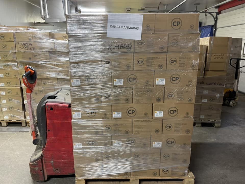 ล่าสุด บริษัทฯ ได้ส่งมอบความช่วยเหลือด้านอาหารแก่ผู้ประสบภัยผ่านรัฐบาลตุรเคีย โดยนำผลิตภัณฑ์แบรนด์ซีพี ทั้งอาหารสด อาหารพร้อมปรุง และอาหารสำเร็จรูป รวมกว่า 10,500 กิโลกรัม บรรจุขึ้นรถบรรทุกตู้คอนเทนเนอร์กระจายไปใน 4 พื้นที่ ได้แก่ Hatay, Antakya, Iskenderun และ Maras ซึ่งจะใช้เวลาในการขนส่งอย่างต่ำราว 10 ชม. ล้วนเป็นพื้นที่ที่หน่วยบรรเทาสาธารณภัย (AFAD) ของตุรเคีย ระบุว่า ขาดแคลนอาหารและต้องการความช่วยเหลือ ในยามที่เพื่อนมนุษย์ประสบภัยพิบัติ ย่อมต้องการอาหารเติมกำลังกายและเยียวยากำลังใจ ประคับประคองให้ทุกชีวิตเดินต่อ สะสมเป็นพลังในการลุกขึ้นยืน เพื่อฟื้นฟูประเทศของตนอีกครั้ง CP ตุรเคีย และทุกบริษัทในเครือ CP-CPF ขอเป็นอีกกำลังใจให้ชาวตุรเคียแข็งแรงขึ้นในเร็ววัน