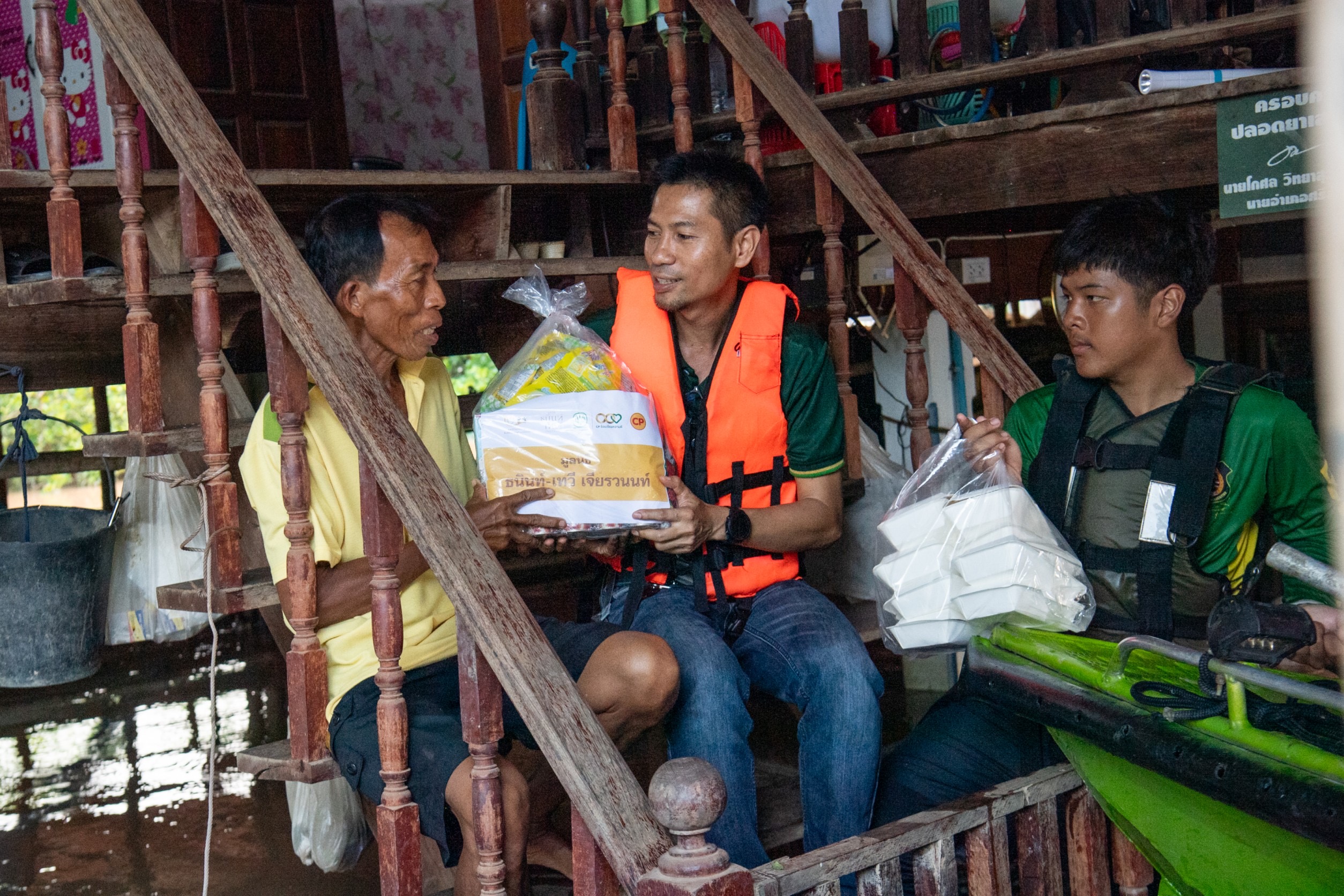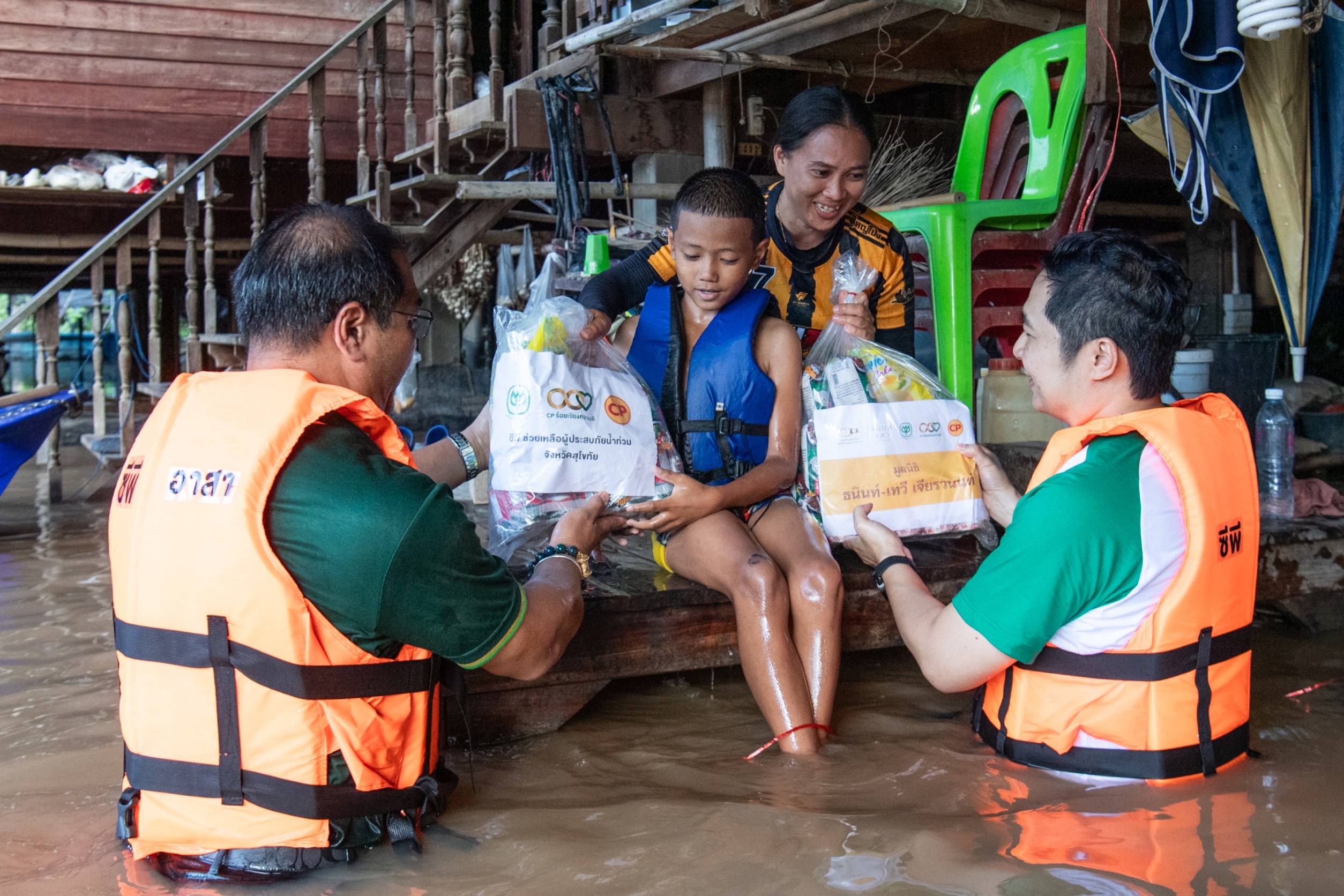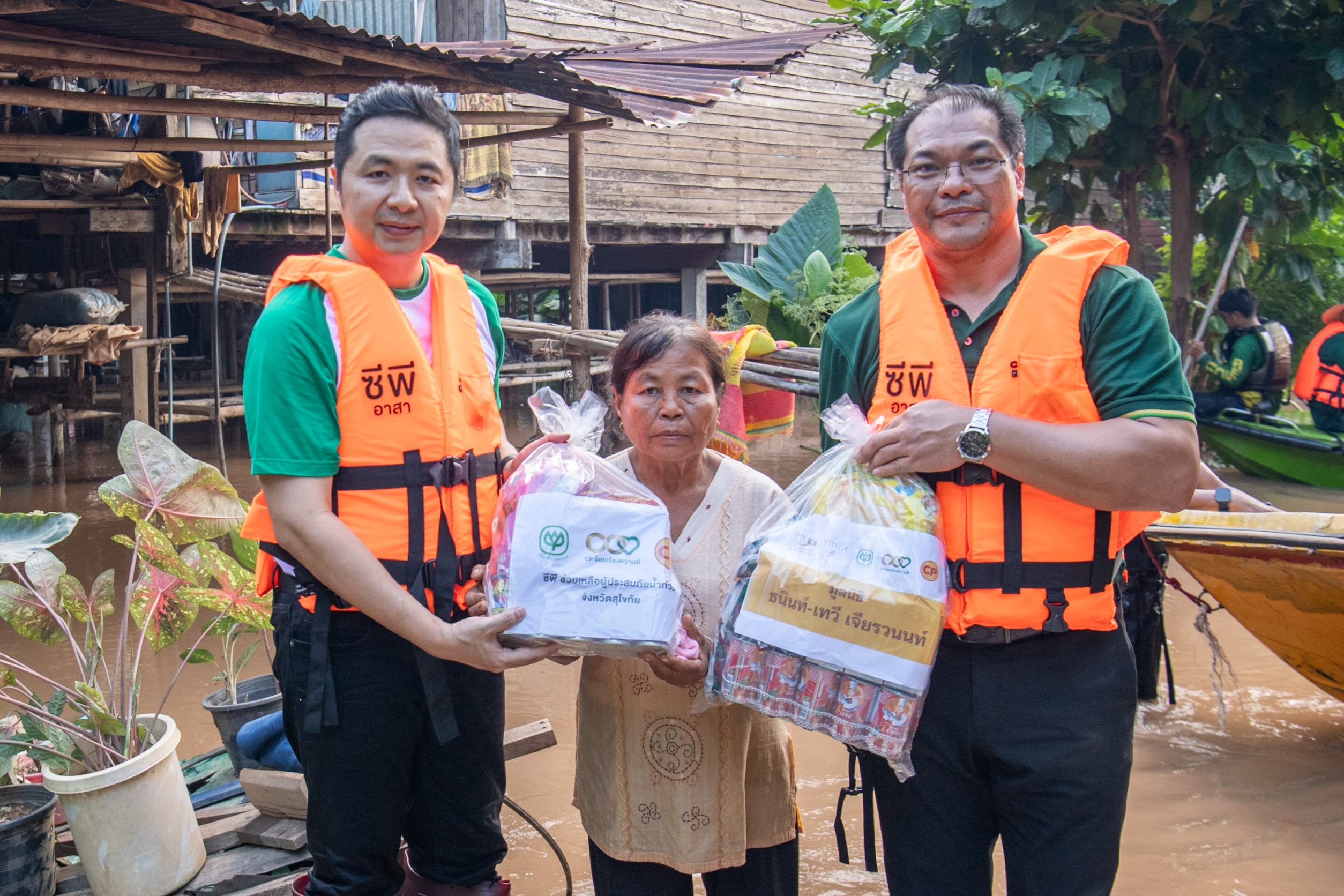28 สิงหาคม 2567 ผู้ว่าฯ สุโขทัย รับมอบถุงยังชีพจากซีพีและบริษัทในเครือ เร่งช่วยผู้ประสบภัยน้ำท่วม พร้อมเสริมทัพ “ซีพีอาสา“ พนักงานทุกหน่วยลงพื้นที่ ช่วยประชาชน นายสุชาติ ทีคะสุข ผู้ว่าราชการจังหวัดสุโขทัย รับมอบ ถุงยังชีพ เครื่องอุปโภคบริโภค อาหาร น้ำดื่ม รวมถึงวัตถุดิบอาหารสดสำหรับโรงครัวตามจุดต่างๆ โดยมี นายจอมกิตติ ศิริกุล รองกรรมการผู้จัดการใหญ่อาวุโส ด้านพัฒนาความยั่งยืนภาครัฐและกิจการสัมพันธ์ เครือเจริญโภคภัณฑ์ พร้อมด้วย ผู้แทนจากกลุ่มบริษัทในเครือเจริญโภคภัณฑ์ นายจักรกฤษณ์ อุไรรัตน์ หัวหน้าคณะผู้บริหารด้านกิจการองค์กร บมจ.ทรู คอร์ปอเรชั่น (TRUE) นายศราวุธฒ์ คิวเจริญ ผู้อำนวยการอาวุโสธุรกิจสุกรภาคเหนือ บมจ.เจริญโภคภัณฑ์อาหาร (CPF) นายพรหม วรนุตารักษา ผู้บริหารอาวุโสกิจกรรมเพื่อสังคม บจก.ข้าวซีพี (ข้าวตราฉัตร) และบจก.ซี.พี. แลนด์ (CP Land) ร่วมส่งมอบ พร้อมลงพื้นที่แจกจ่ายแก่ประชาชนโดยพนักงานซีพีอาสากว่า 40 คน ณ ศาลากลาง จ.สุโขทัย
