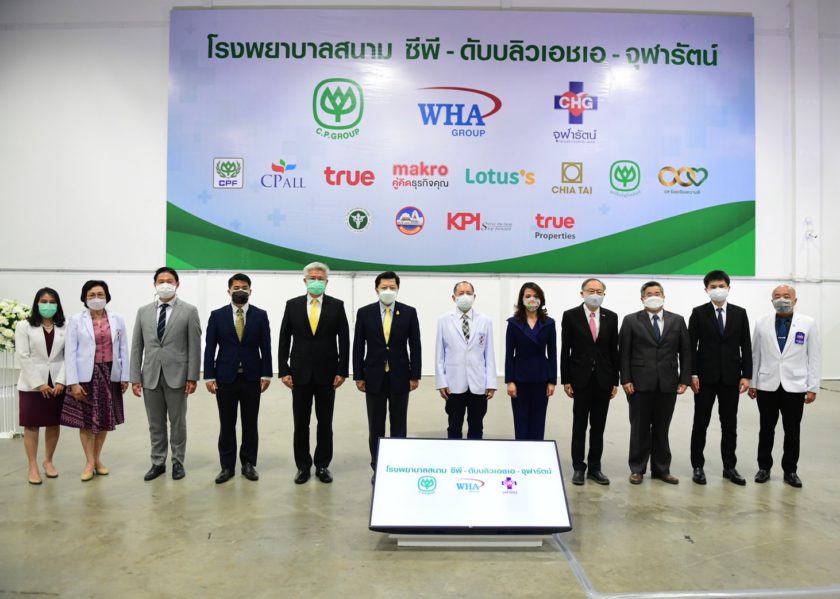 คุณศุภชัย เจียรวนนท์ ประธานคณะผู้บริหาร บริษัท เครือเจริญโภคภัณฑ์ จำกัด (ซีพี) เปิดเผยว่า การแพร่ระบาดของโควิด-19 ที่ผ่านมามีผู้ป่วยติดเชื้อเพิ่มขึ้น จนเกินศักยภาพที่โรงพยาบาลในระบบจะรับมือได้ โรงพยาบาลสนามจึงมีความสำคัญต่อการช่วยชีวิตผู้ป่วยโควิด-19 ทั้งนี้ เครือซีพีขอขอบคุณหน่วยงานภาครัฐ และภาคเอกชน รวมถึงบริษัทในเครือฯ ที่ได้ผนึกกำลังร่วมกันทำภารกิจสำคัญคือ การสร้าง “โรงพยาบาลสนามซีพี – ดับบลิวเอชเอ – จุฬารัตน์” ดูแลรักษากลุ่มผู้ป่วยโควิด-19 ระดับสีเหลือง-สีส้ม จำนวนกว่า 600 เตียง ณ คลังสินค้า โครงการดับบลิวเอชเอ เมกกะ โลจิสติกส์ เซ็นเตอร์ จ.สมุทรปราการ บนพื้นที่ 15,294 ตรม. ด้วยมาตรฐานเทียบเท่าโรงพยาบาลหลัก ถือเป็นโมเดลความร่วมมือทางสังคมในการแบ่งเบาภาระด้านสาธารณสุขของประเทศมาจนถึงปัจจุบัน