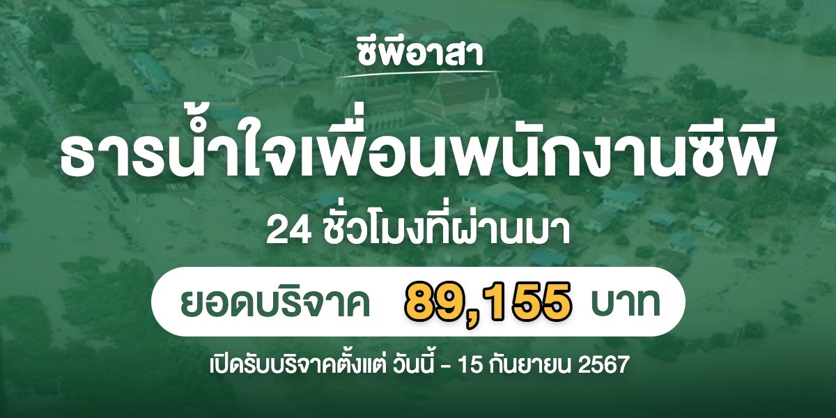 ธารน้ำใจ…จากเพื่อนพนักงานซีพี 24 ชั่วโมงที่ผ่านมา ยอดบริจาค 89,155 บาท