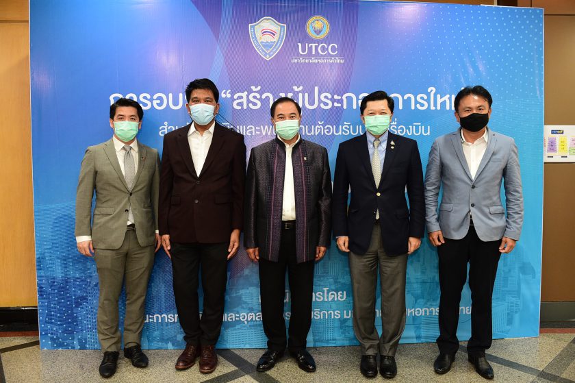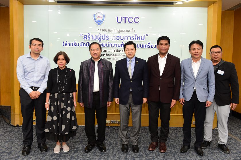 เมื่อวันที่ 30 มีนาคม 2564 คณะการท่องเที่ยวและอุตสาหกรรมบริการ มหาวิทยาลัยหอการค้าไทย ร่วมกับสภาหอการค้าแห่งประเทศไทย จัดอบรมหลักสูตรระยะสั้น “สร้างผู้ประกอบการใหม่” (สำหรับนักบินและพนักงานต้อนรับบนเครื่องบิน) ระหว่างวันที่ 30-31 มีนาคม โดยมีคุณกลินท์ สารสิน ประธานสภาหอการค้าแห่งประเทศไทย และนายกสภามหาวิทยาลัยหอการค้าไทย เป็นประธานกล่าวเปิดงานและร่วมอบรมในหัวข้อ Entrepreneurial Mindset โดยภายในงานได้เชิญผู้ทรงคุณวุฒิหลายด้านมาให้ความรู้ในการทำธุรกิจแก่นักศึกษา พนักงานในแวดวงธุรกิจการบิน นักบิน และบุคคลที่สนใจเข้าร่วมรับฟังการอบบรมจำนวนมาก อาทิ ผศ.ดร.ธนวรรรธน์ พลวิชัย อธิการบดีมหาวิทยาลัยหอการค้าไทย อบรมหัวข้อ Market Trends ธุรกิจรุ่ง vs ร่วง ปี 2564 รศ.ดร.เสาวณีย์ ไทยรุ่งไรจน์ ที่ปรึกษาประจำของสภามหาวิทยาลัยหอการค้าไทย อบรมหัวข้อ Workshop: Design Thinking IDEA ธุรกิจสร้างได้ คุณอมรเทพ ทวีพานิชย์ ผู้ช่วยประธานกรรมการหอการค้าไทยและสภาหอการค้าแห่งประเทศไทย กรรมการส่งเสริมและพัฒนาผู้ประกอบการรุ่นใหม่หอการค้าไทย คุณจิรพิสิษฐ์ รุจร์เจริญ YEC หอการค้าจังหวัดโคราช ผู้ชนะเลิศ YEC Pitching ปี 2563 พร้อมด้วย Facilitator 4 ท่าน ได้แก่ ผศ.ดร.ศุภเชษฐ์ อินทร์เนตร ผศ.ดร.มานา ปัจฉิมนันท์ ดร.ชัชชัย หวังวิวัฒนา ดร.พิชญพธู ไวยโชติ ร่วมอบรม Workshop: การสร้างแผนธุรกิจด้วย Business Model Canvas