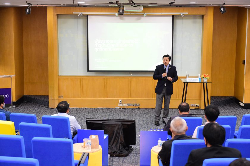 คุณศุภชัย กล่าวถึงแนวคิดการทำธุรกิจในช่วงวิกฤตและหัวใจสำคัญของผู้ประกอบการ โดยยกกรณีศึกษาการดำเนินธุรกิจของเครือเจริญโภคภัณฑ์ในอดีตตั้งแต่ 100 ปีก่อน ผ่านการปรับตัวเปลี่ยนแปลงและนำเทคโนโลยีมาประยุกต์ใช้จนสามารถขยายธุรกิจให้เติบโตได้กว่า 20 ประเทศทั่วโลก และทำการค้าขายกับอีก 100 ประเทศ โดยเครือซีพีผ่านทั้งอุปสรรคจากวิกฤตเศรษฐกิจ และการแข่งขันทางธุรกิจต่างๆมาได้โดยยึดแนวคิดหลักสำคัญคือ “เปลี่ยนวิกฤตเป็นโอกาส” และการมี “วิสัยทัศน์ในการกล้าลงทุน” ซึ่งกรณีของเครือซีพีสะท้อนให้เห็นถึงแนวคิดการทำธุรกิจในช่วงเวลาวิกฤต เช่นที่เกิดขึ้นขณะนี้จากภาวะโควิด-19 ดังนั้นความกล้าที่จะเสี่ยงในวิกฤต เห็นถึงโอกาสและ Pain Point ต่างๆจะส่งผลให้ธุรกิจประสบความสำเร็จได้