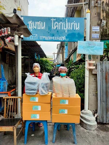 ทุก ๆ วันที่จุดส่งมอบอาหารสำหรับหน่วยแจกจ่ายของ “สมาคมหนังสือพิมพ์ส่วนภูมิภาคแห่งประเทศไทย” ซึ่งได้ร่วมกับ “เซเว่น อีเลฟเว่น” ตั้งอยู่บริเวณสี่แยกการเรือน จะมีตัวแทนชุมชนบริเวณใกล้เคียง มารับมอบอาหารกล่อง จำนวน 1,000 กล่อง ซึ่งประกอบไปด้วยอาหารพร้อมรับประทานจากเครือซีพี และอาหารพร้อมรับประทานที่จัดซื้อจากร้านค้าย่อยที่ได้รับผลกระทบจากโควิด-19 รวมทั้งหน้ากากอนามัย ไปกระจายต่อยังจุดต่างๆ โดยเฉพาะในพื้นที่ที่ความช่วยเหลือยังเข้าไปไม่ถึง เนื่องจากเข้าถึงได้ยาก หรือไม่เพียงพอ ไม่ว่าจะเป็นชุมชนสวนอ้อย ชุมชนท่าน้ำสามเสน ชุมชนวัดจันทรสโมสร เขตดุสิต ชุมชนสะพานไม้ ชุมชนสอยสีน้ำเงิน ชุมชนสร้อยทอง ชุมชนเตาปูน ชุมชนริมทางรถไฟ เขตบางซื่อ เป็นต้น