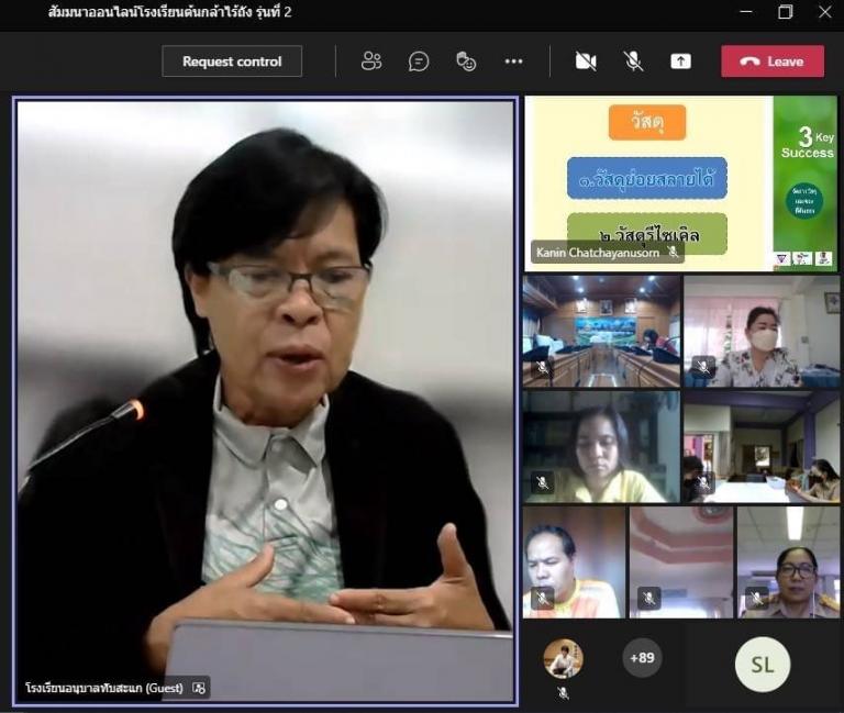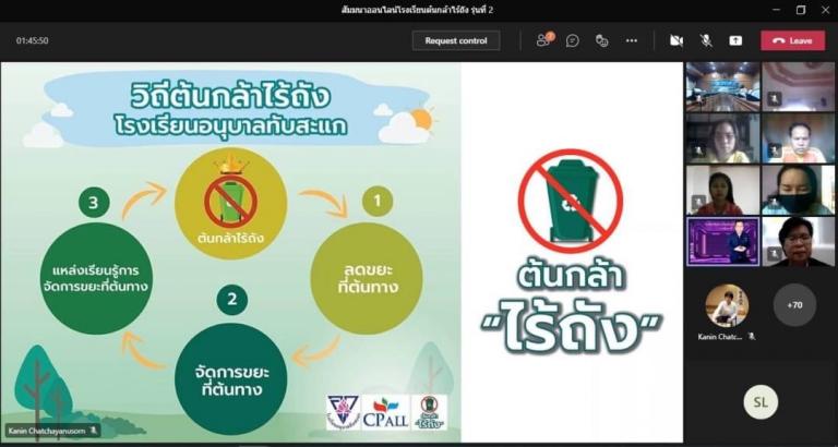 พร้อมกันนี้ภายในงานสัมมนาฯ ยังได้เชิญโรงเรียนเครือข่ายต้นกล้าไร้ถังที่สามารถดำเนินโครงการได้อย่างยอดเยี่ยม 5 โรงเรียน (TOP 5) มาร่วมแบ่งปันประสบการณ์ แนวทางการดำเนินโครงการอย่างไรให้ประสบผลสำเร็จ โดยสะท้อนผลลัพธ์ที่สามารถลดจำนวนขยะได้มากกว่า 80% โดยเฉลี่ยจากผลดำเนินโครงการปี 2563 ที่ผ่านมา