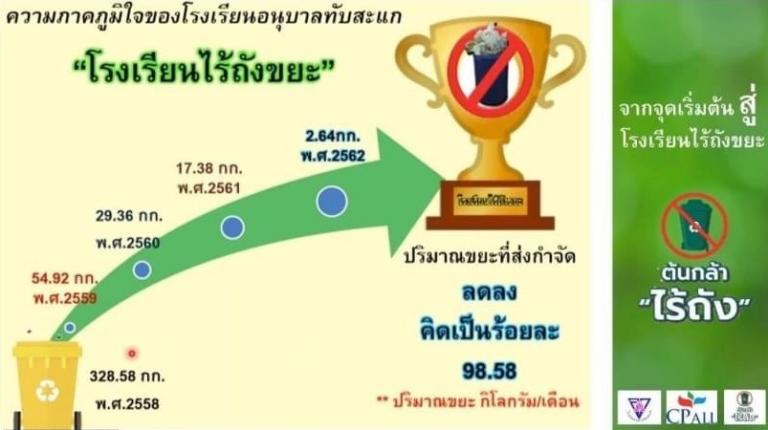 จากประโยชน์ และคุณค่าที่เกิดขึ้นจากการดำเนินโครงการ “ต้นกล้าไร้ถัง” ของโรงเรียนอนุบาลทับสะแก อ.ทับสะแก จ.ประจวบคีรีขันธ์ หนึ่งในโรงเรียนภายใต้การดูแลของ CONNEXT ED CP ALL ได้รับรางวัลโล่ประกาศเกียรติคุณ ประเภทโครงการในการส่งเสริมและอนุรักษ์ทรัพยากรธรรมชาติและสิ่งแวดล้อม จากคณะกรรมการเอกลักษณ์ของชาติ เพื่อประกาศเกียรติคุณเป็น “ค่าของแผ่นดิน” ระหว่างปี 2561 – 2563 ที่ทำคุณประโยชน์ให้แก่ประชาชน สังคม และประเทศชาติ