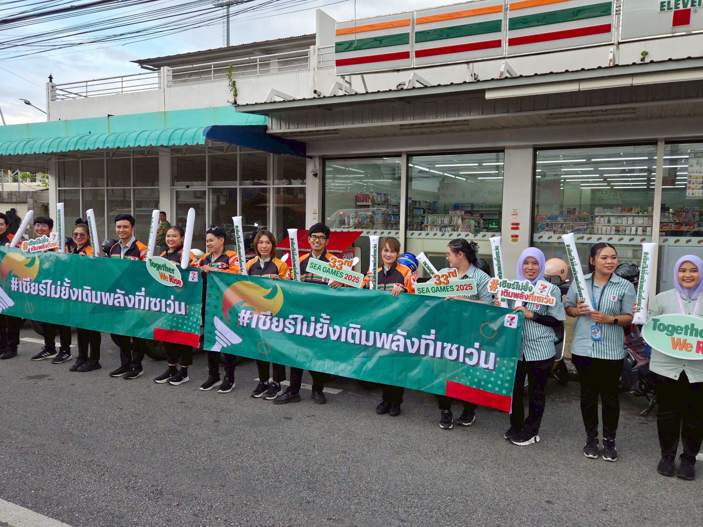 ทั้งนี้ ซีพี ออลล์ และ เซเว่น อีเลฟเว่น ยังร่วมส่งต่อพลังใจให้กับคนไทยผ่านแคมเปญ “เซเว่นชวนเชียร์สุดใจ ทีมไทยแลนด์” เชิญชวนทุกคนร่วมส่งแรงเชียร์และพลังบวกให้กับนักกีฬาทีมชาติไทยและนักกีฬาทุกชาติที่เข้าร่วมการแข่งขัน เพื่อก้าวสู่ความสำเร็จอย่างเต็มภาคภูมิ และร่วมกันสร้างภาพลักษณ์อันงดงามของประเทศไทยในฐานะเจ้าภาพที่เปี่ยมด้วยพลังและรอยยิ้มร่วมกัน