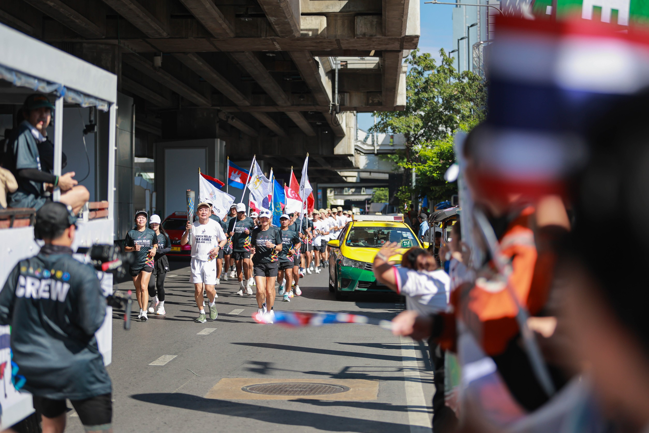 ในโอกาสนี้ คุณวิชัย จันทร์จริยากุล กรรมการผู้จัดการ บริษัท ซีพี ออลล์ จำกัด (มหาชน) ได้นำทีมคณะผู้บริหารซีพี ออลล์และพนักงานเซเว่น อีเลฟเว่นร่วมวิ่งคบเพลิงไฟพระฤกษ์ ในพื้นที่กรุงเทพมหานคร เปรียบเสมือนเป็นจุดเริ่มต้นของการส่งต่อพลังแห่งความสามัคคีไปทั่วประเทศ ใน 4 จังหวัด ได้แก่ กรุงเทพมหานคร ชลบุรี นครราชสีมา และสงขลา รวมกว่า 100 คน เพื่อสื่อถึงพลังความร่วมมือของคนไทยในทุกภูมิภาคที่พร้อมเป็นเจ้าภาพที่ดี สร้างบรรยากาศแห่งความอบอุ่นและมิตรภาพในทุกเส้นทางที่ไฟคบเพลิงผ่าน