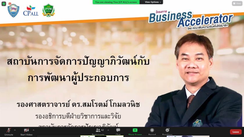 รองศาสตราจารย์ ดร.สมโรตม์ โกมลวนิช รองอธิการบดีฝ่ายวิชาการและวิจัย สถาบันการจัดการปัญญาภิวัฒน์ กล่าวว่า สถาบันการจัดการปัญญาภิวัฒน์ มีพันธกิจหลักในด้านการศึกษาและวิจัยทางด้านธุรกิจค้าปลีก เพื่อสร้างบัณฑิตที่มีคุณภาพในเชิงวิชาการและสามารถปฏิบัติงานได้จริงในตลาดแรงงานธุรกิจค้าปลีก การเข้ามามีส่วนร่วมในโครงการนี้ จะเป็นการนำความรู้ความสามารถของคณาอาจารย์มาช่วยเหลือผู้ประกอบการ SMEs โดยตรง สร้างมิติแห่งการพัฒนาร่วมกันทำให้เข้าใจความต้องการที่แท้จริงของผู้ประกอบการรายย่อยของไทยมากยิ่งขึ้น เพื่อต่อยอดการพัฒนาบัณฑิตในอนาคตต่อไป