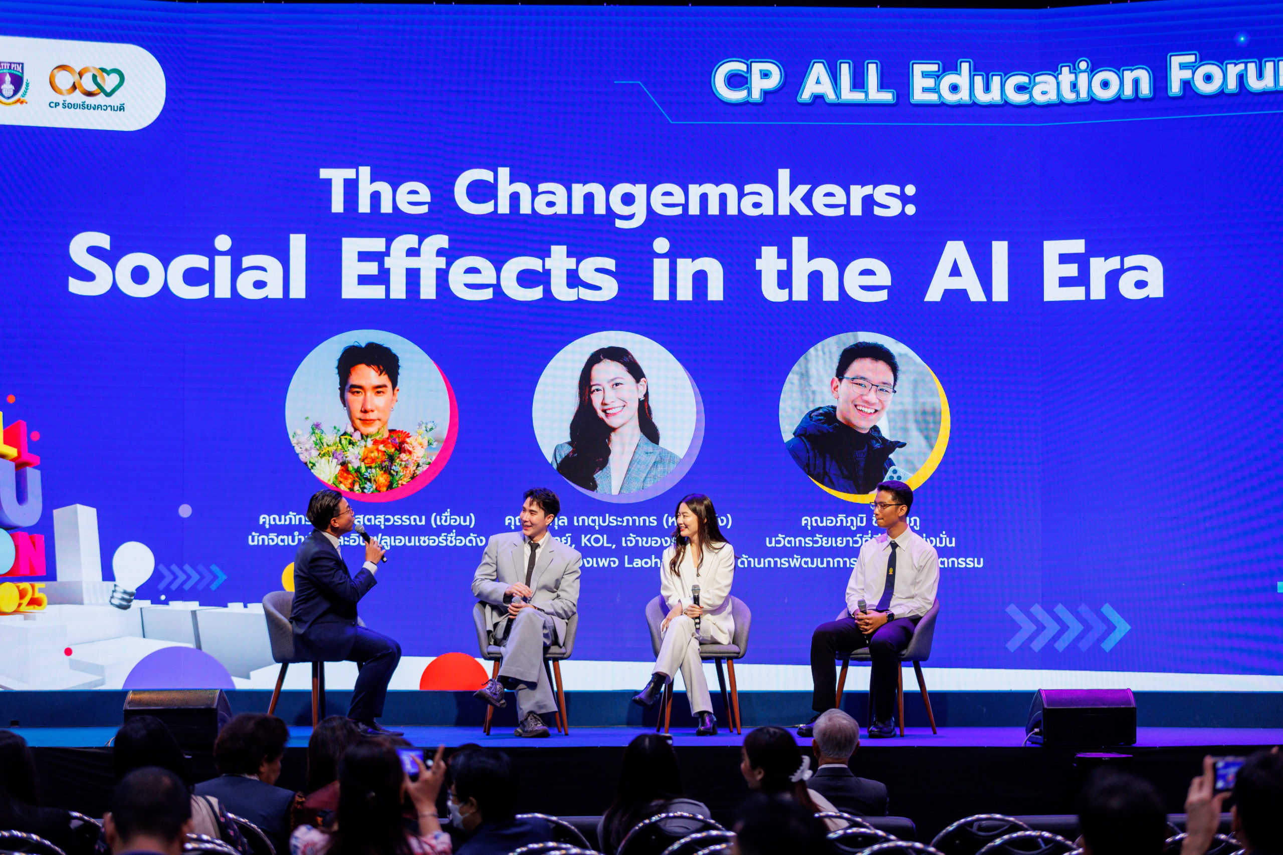 ทั้งนี้ภายในงาน “CP ALL EDUCATION FORUM 2025” ซีพี ออลล์ มอบทุนการศึกษาประจำปีการศึกษา 2568 ให้กับเยาวชนไทยผ่านเครือข่ายความร่วมมือกว่า 41,900 ทุน มูลค่ารวมกว่า 1,648 ล้านบาท สร้างโอกาสทางการศึกษาสู่เยาวชนไทยกว่า 56,883 คน พร้อมขนทัพเหล่ากูรูผู้เชี่ยวชาญด้านการศึกษาและเทคโนโลยีมาร่วมถ่ายทอดมุมมอง แบ่งปันประสบการณ์ ในช่วงเสวนาพิเศษ: “โอกาสและความท้าทายของการศึกษาไทยในยุค AI” พบตัวจริงจากวงการศึกษา ผศ.ดร.ณัฐพล นิมมานพัชรินทร์ ผู้อำนวยการใหญ่ สำนักงานส่งเสริมเศรษฐกิจดิจิทัล (depa), รศ.ดร.สมภพ มานะรังสรรค์ อธิการบดีสถาบันการจัดการปัญญาภิวัฒน์ (PIM) และ ลาเต้-มนัส อ่อนสังข์ บรรณาธิการข่าวการศึกษาและแอดมิชชั่น เว็บไซต์ Dek-D ชวนทุกคนสำรวจอนาคตของการศึกษาไทย ภายใต้บริบทโลกใหม่ที่ขับเคลื่อนด้วย AI และเสวนาพิเศษ: “The Changemakers: Social Effects in the AI Era” พบกับ เขื่อน-ภัทรดนัย เสตสุวรรณ นักจิตบำบัดและอินฟลูเอนเซอร์ชื่อดัง, หมอฟรัง นรีกุล เกตุประภากร แพทย์ KOL เจ้าของธุรกิจ เจ้าของเพจ LaohaiFrung และ ภูมิ-อภิภูมิ ชื่นชมภู นวัตกรวัยเยาว์ที่มีความมุ่งมั่นด้านการพัฒนาการศึกษาและนวัตกรรม ช่วงเสวนานี้จะเปิดพื้นที่ให้ผู้นำการเปลี่ยนแปลง (Changemakers) จากหลากหลายวงการได้แลกเปลี่ยนมุมมองเกี่ยวกับผลกระทบทางสังคมของ AI และแนวทางในการปรับตัวของมนุษย์ในยุคแห่งการเปลี่ยนแปลง ภายในงานมีเครือข่ายการศึกษา คณาจารย์ นักเรียนเข้าร่วมงานกว่า 1,000 คน
