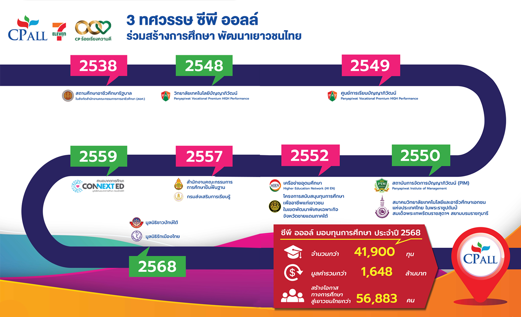 ตลอด 30 ปีที่ผ่านมา ซีพี ออลล์ มุ่งมั่นสร้างคนผ่านการศึกษาตามแนวทาง คุณก่อศักดิ์ ไชยรัศมีศักดิ์ ประธานเจ้าหน้าที่บริหาร เพื่อสร้างโอกาสและสร้างรากฐานทางการศึกษา ให้เยาวชนสามารถเข้าถึงการศึกษาทุกระดับผ่านการสร้างความมือร่วมกับเครือข่ายการศึกษา