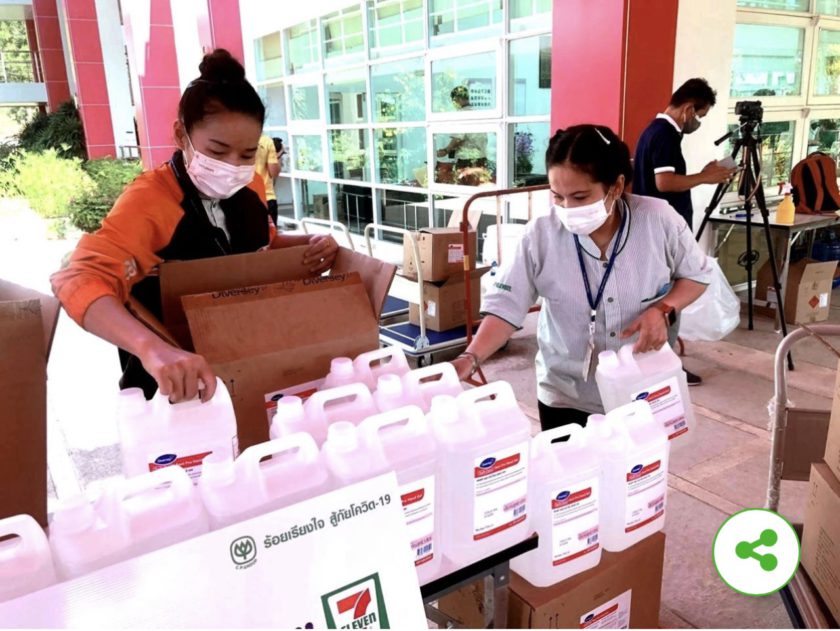 ในภาพใหญ่ระดับประเทศ เซเว่นฯ ซึ่งเล็งเห็นความจำเป็นเร่งด่วนเพื่อลดความเสี่ยงของการติดเชื้อ และการเยียวยารักษาให้ผู้ป่วยหายดีโดยไวที่สุด ได้ดำเนินการตามเจตนารมณ์ของคุณธนินท์ เจียรวนนท์ ประธานอาวุโส เครือเจริญโภคภัณฑ์ เพื่อส่งมอบครุภัณฑ์ทางการแพทย์พร้อมด้วยเครื่องอุปโภค บริโภค ให้แก่บุคลากรทางการแพทย์ในโรงพยาบาลสนามกว่า 50 แห่งที่เป็นพื้นที่ควบคุมใน 18 จังหวัด ตามโครงการ “ซีพีร้อยเรียงใจ สู้ภัยโควิด-19” โดยอุปกรณ์ทั้งหมดจะเป็นหนึ่งในตัวช่วยสำคัญเพื่อสนับสนุนเจ้าหน้าที่ด่านหน้าในการรับมือผู้ป่วยที่เข้ามาอย่างทั่วถึงและเพียงพอ ช่วยให้การทำหน้าที่เป็นไปอย่างมีประสิทธิภาพ และเพิ่มโอกาสที่จะช่วยให้ผู้ป่วยหายจากการติดเชื้อและกลับบ้านอย่างปลอดภัยได้เร็วขึ้น