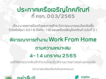 CPF ประกาศ ขยายเวลา Work From Home เพื่อป้องกันและการเฝ้าระวังโควิด-19 จนถึงวันที่ 31 ก.ค. 64 19 กรกฎาคม 2564SystemNews, กิจกรรมเพื่อสังคม, มาตรการป้องกันcovid-19