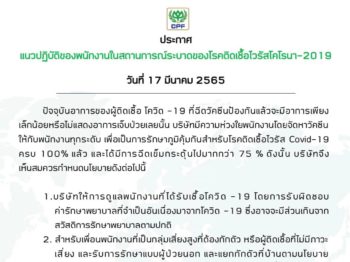 “CPF ห่วงใยพนักงาน” ประกาศ แนวปฏิบัติของ พนง. ในสถานการณ์ระบาดของโควิด-19 21 มีนาคม 2565SystemNews, กิจกรรมเพื่อสังคม, ประกาศบริษัท
