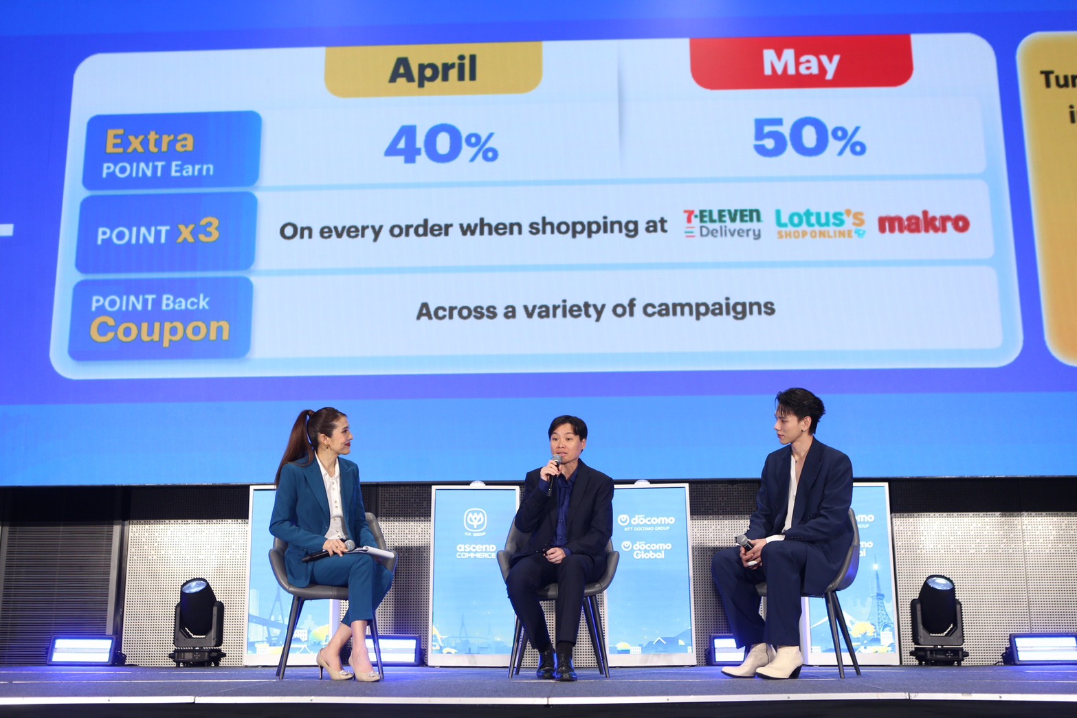 ภายในงาน ผู้บริหารจากทั้งสองฝ่ายได้ร่วมถ่ายทอดวิสัยทัศน์ถึงทิศทางความร่วมมือในอนาคต นำโดย คุณศุภชัย เจียรวนนท์ รองประธานอาวุโส เครือเจริญโภคภัณฑ์ และ Mr. Hiroki Kuriyama, Chief Executive Officer, NTT DOCOMO GLOBAL พร้อมด้วย คุณธรินทร์ ธนียวัน ประธานเจ้าหน้าที่บริหาร บริษัท แอสเซนด์ คอมเมิร์ซ จำกัด และผู้อำนวยการบริหารกลุ่ม ด้านอีคอมเมิร์ซ เครือเจริญโภคภัณฑ์ และ Ms. Mizuri Fujii, Director, NTT Docomo Global