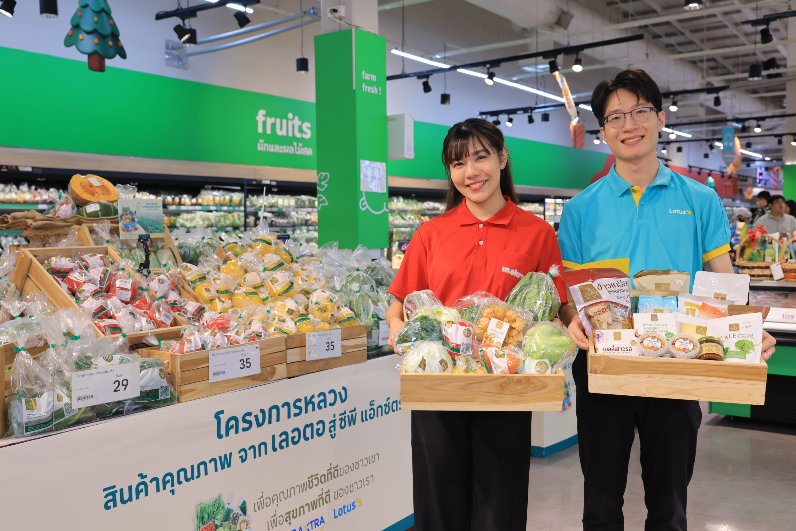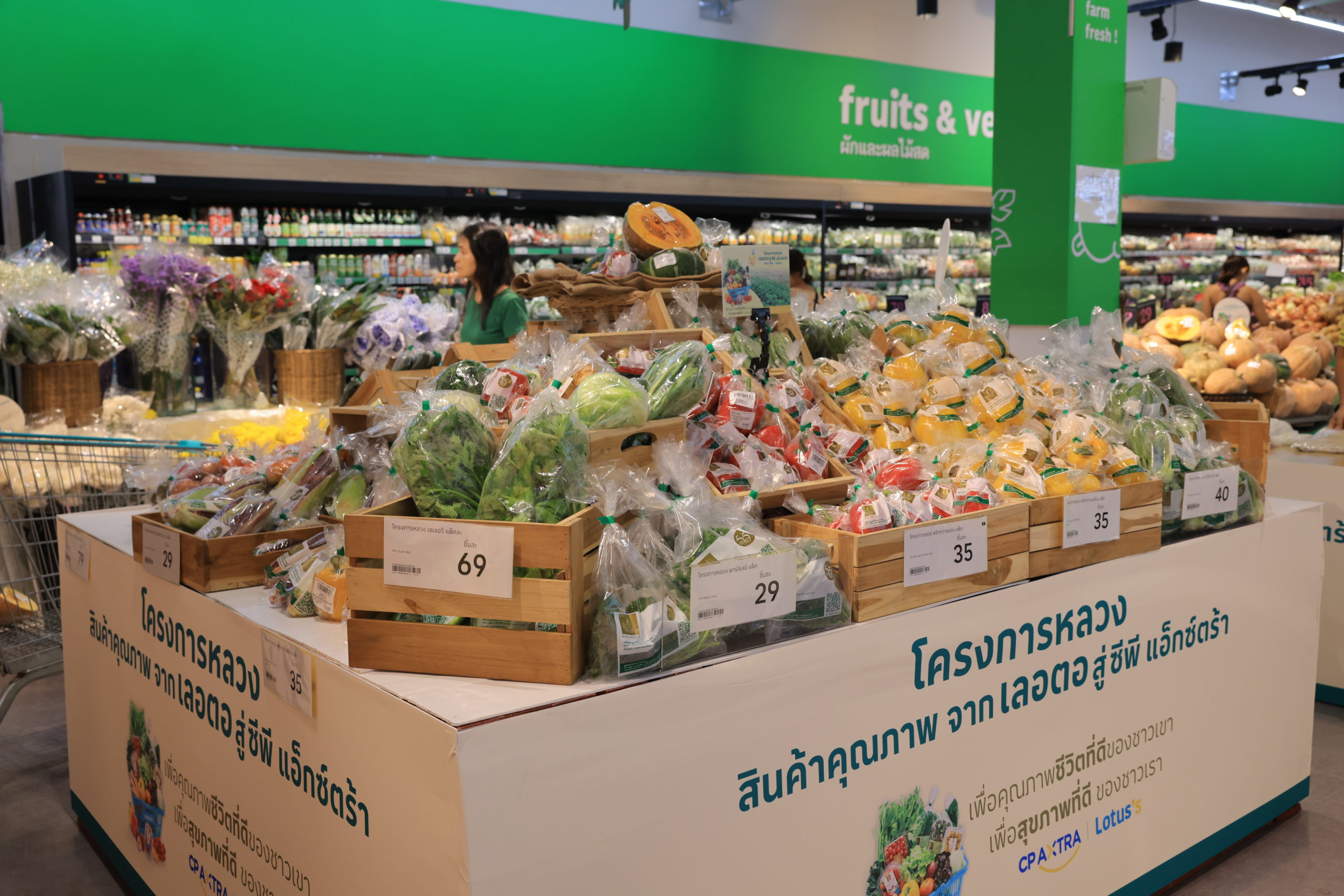 กรุงเทพฯ 19 พฤศจิกายน 2567 – บริษัท ซีพี แอ็กซ์ตร้า จำกัด (มหาชน) ผู้ดำเนินธุรกิจค้าส่งค้าปลีก แม็คโคร-โลตัส ร่วมกับ มูลนิธิโครงการหลวง เปิดงาน “โครงการหลวง สินค้าคุณภาพ จากเลอตอ สู่ซีพี แอ็กซ์ตร้า” คัดสรรสินค้าคุณภาพ จากยอดดอยสู่ผู้บริโภคทั่วไทย ผ่านสาขาโลตัสและแม็คโครทั่วประเทศ เพื่อคุณภาพชีวิตที่ดีของชาวเขา และสุขภาพที่ดีของชาวเรา ขยายการรับซื้อผลิตผลจาก “ศูนย์พัฒนาโครงการหลวงเลอตอ” จังหวัดตาก ต่อยอดความมุ่งมั่นในการนำผลิตภัณฑ์จากเกษตรกรมาจัดจำหน่ายใจกลางเมือง เปิดโอกาสให้ผู้บริโภคได้เข้าถึงผักผลไม้ปลอดภัย คุณภาพสูง ได้มาตรฐาน ในราคาที่คุ้มค่า พร้อมยกระดับคุณภาพชีวิตที่ดีและสนับสนุนการสร้างรายได้ที่ยั่งยืนให้กับเกษตรกรชาวเขา โดย ซีพี แอ็กซ์ตร้า เปิดมหกรรมสินค้าจากโครงการหลวงที่โลตัส สาขาบางนา และสาขาอื่น ๆ อีก 55 สาขาทั้งในกรุงเทพฯ พัทยา และภูเก็ต พร้อมจำหน่ายสินค้าโครงการหลวงในโลตัส ไฮเปอร์มาร์เก็ตและแม็คโครทั่วประเทศ
