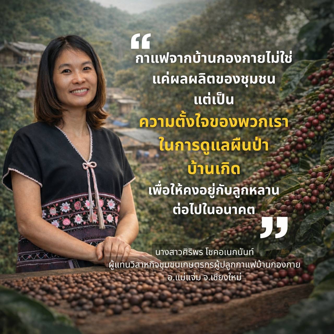 วันนี้กาแฟจากบ้านกองกายจึงไม่ได้เป็นเพียงผลผลิตจากพื้นที่สูง แต่ยังสะท้อนแนวคิดของชุมชนที่ต้องการให้การทำกินเดินไปพร้อมกับการฟื้นฟูธรรมชาติ