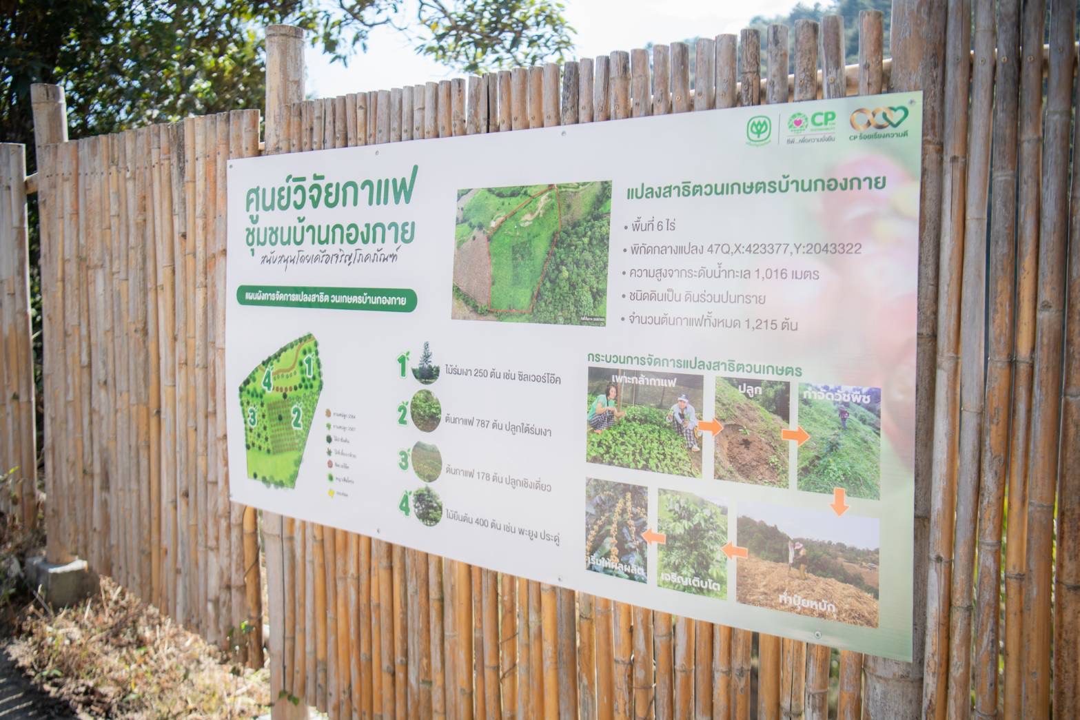 “กลุ่มเกษตรกรตัวเล็ก ๆ บนดอยสูงได้ตัดสินใจลุกขึ้นมาเปลี่ยนวิถีชีวิต จากการทำเกษตรเชิงเดี่ยวที่เคยสร้างผลกระทบต่อสิ่งแวดล้อม มาสู่การปลูกกาแฟร่วมกับการอนุรักษ์ป่าอย่างยั่งยืน จากยอดดอยบ้านกองกาย สู่แก้วกาแฟที่เป็นมิตรต่อโลก มีเครือเจริญโภคภัณฑ์ เป็นผู้ร่วมเดินทางจากจุดเริ่มต้นจากศูนย์มาด้วยกัน ผ่านการเรียนรู้เพื่อทำกาแฟคุณภาพสู่ผู้บริโภค