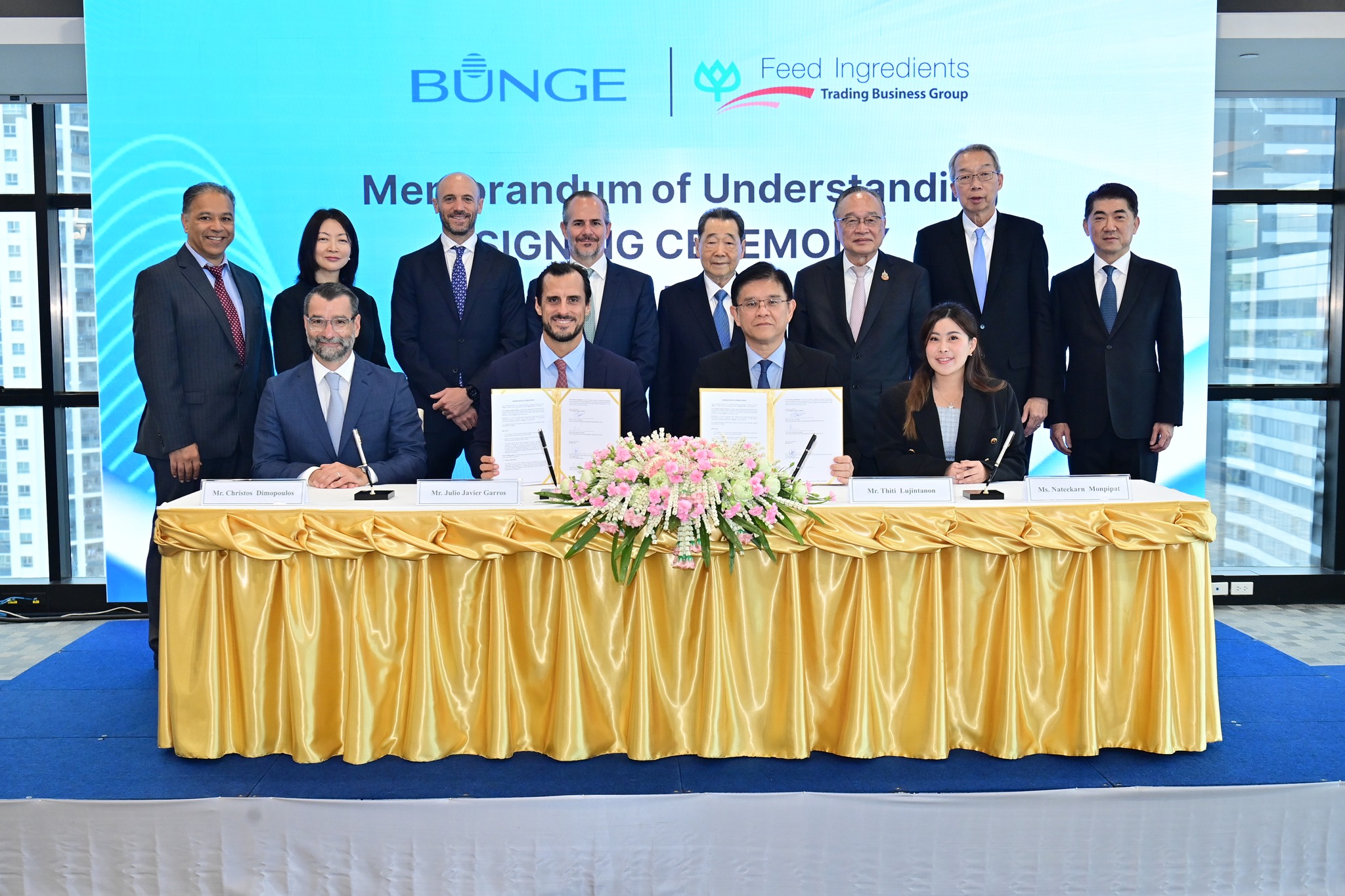 การลงนามครั้งนี้มีคุณฐิติ ลุจินตานนท์ ประธานคณะผู้บริหาร กลุ่มธุรกิจการค้าวัตถุดิบอาหารสัตว์ เครือซีพี และคุณนทีกานต์ มนต์พิพัฒน์ ประธานผู้บริหารฝ่ายปฏิบัติการ กลุ่มธุรกิจการค้าวัตถุดิบอาหารสัตว์ ร่วมลงนามกับ Mr. Julio Javier Garros Co-Chief Operating Officer และ Mr. Christos Dimopoulos Executive Vice President, Global Markets แห่ง BUNGE S.A. ภายในงานยังได้รับเกียรติจากผู้บริหารระดับสูงของเครือซีพีเข้าร่วมเป็นสักขีพยานอย่างพร้อมเพรียง อาทิ คุณอดิเรก ศรีประทักษ์ รองประธานอาวุโส คุณประสิทธิ์ ดำรงชิตานนท์ รองประธานกรรมการ ธุรกิจพืชครบวงจร ข้าว ขนส่งและบริการ คุณประสิทธิ์ บุญดวงประเสริฐ ประธานคณะผู้บริหารซีพีเอฟ คุณบุญชัย โอภาสเอี่ยมลิขิต ประธานธุรกิจ – สหรัฐอเมริกา สหภาพยุโรป และอังกฤษ และ ดร.ธีระพล ถนอมศักดิ์ยุทธ ประธานคณะผู้บริหารด้านความยั่งยืนองค์กรและการพัฒนากลยุทธ์