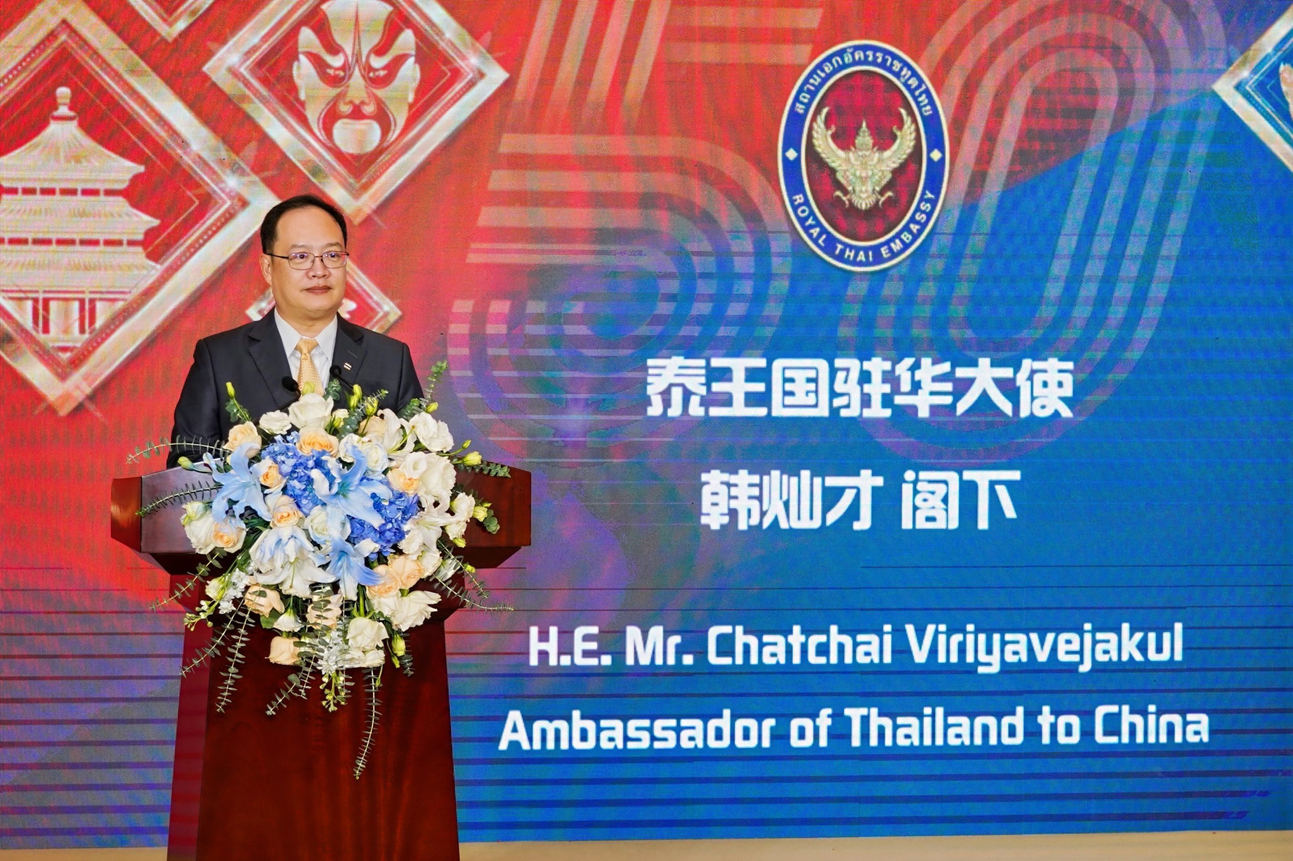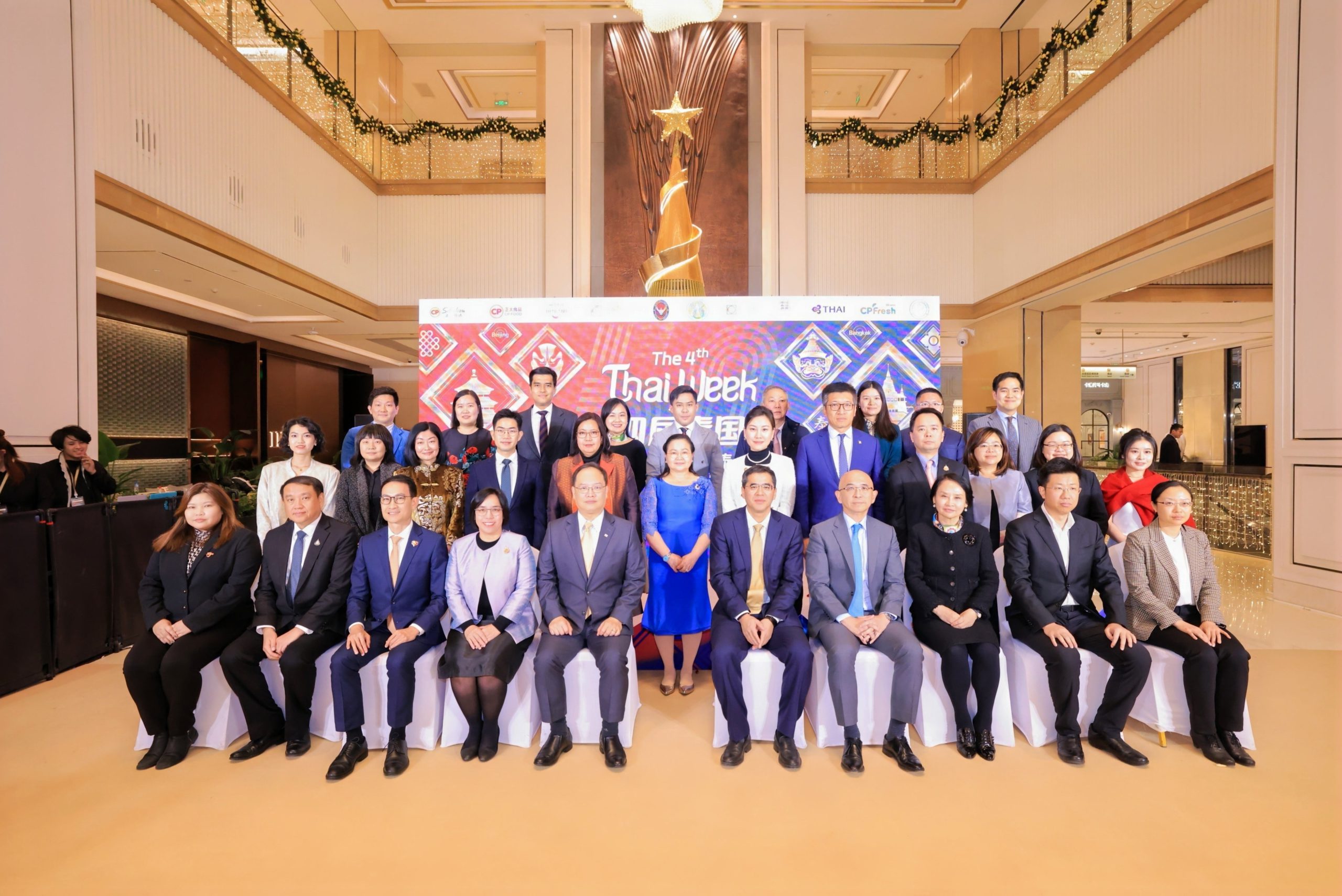 เมื่อวันจันทร์ที่ 16 ธันวาคม พ.ศ.2567 ที่ผ่านมา งาน Thai Week 2024 และก้าวสู่การครบรอบ 50 ปี ความสัมพันธ์ทางการทูตระหว่างไทย-จีน ได้รับเกียรติจากท่านเอกอัครราชทูต ฉัตรชัย วิริยเวชกุล เอกอัครราชทูต ณ กรุงปักกิ่ง, คุณ Xie Yi รองประธานอาวุโส เครือเจริญโภคภัณฑ์, คุณ ไพศาลย์ ยังสมบูรณ์ ประธานเจ้าหน้าที่บริหารบัญชีการเงินเครือเจริญโภคภัณฑ์ เขตประเทศจีน, คุณ Hong Bo รองกรรมการผู้จัดการใหญ่ เครือเจริญโภคภัณฑ์, คุณ Zhao Hai Dong รองนายกเทศมนตรีฝ่ายบริหาร เขตเฉาหยาง กรุงปักกิ่ง, คุณ อาทินันท์ อินทรพิมพ์ อัครราชทูตที่ปรึกษา (ฝ่ายเกษตร) สำนักงานที่ปรึกษาการเกษตรต่างประเทศ ประจำกรุงปักกิ่ง, คุณ มณิศรา ภูรีปติภาน รองผู้อำนวยการ การท่องเที่ยวแห่งประเทศไทย สำนักงาน ณ กรุงปักกิ่ง และตัวแทนจากภาครัฐและเอกชน ร่วมพิธีเปิดงาน Thai Week 2024