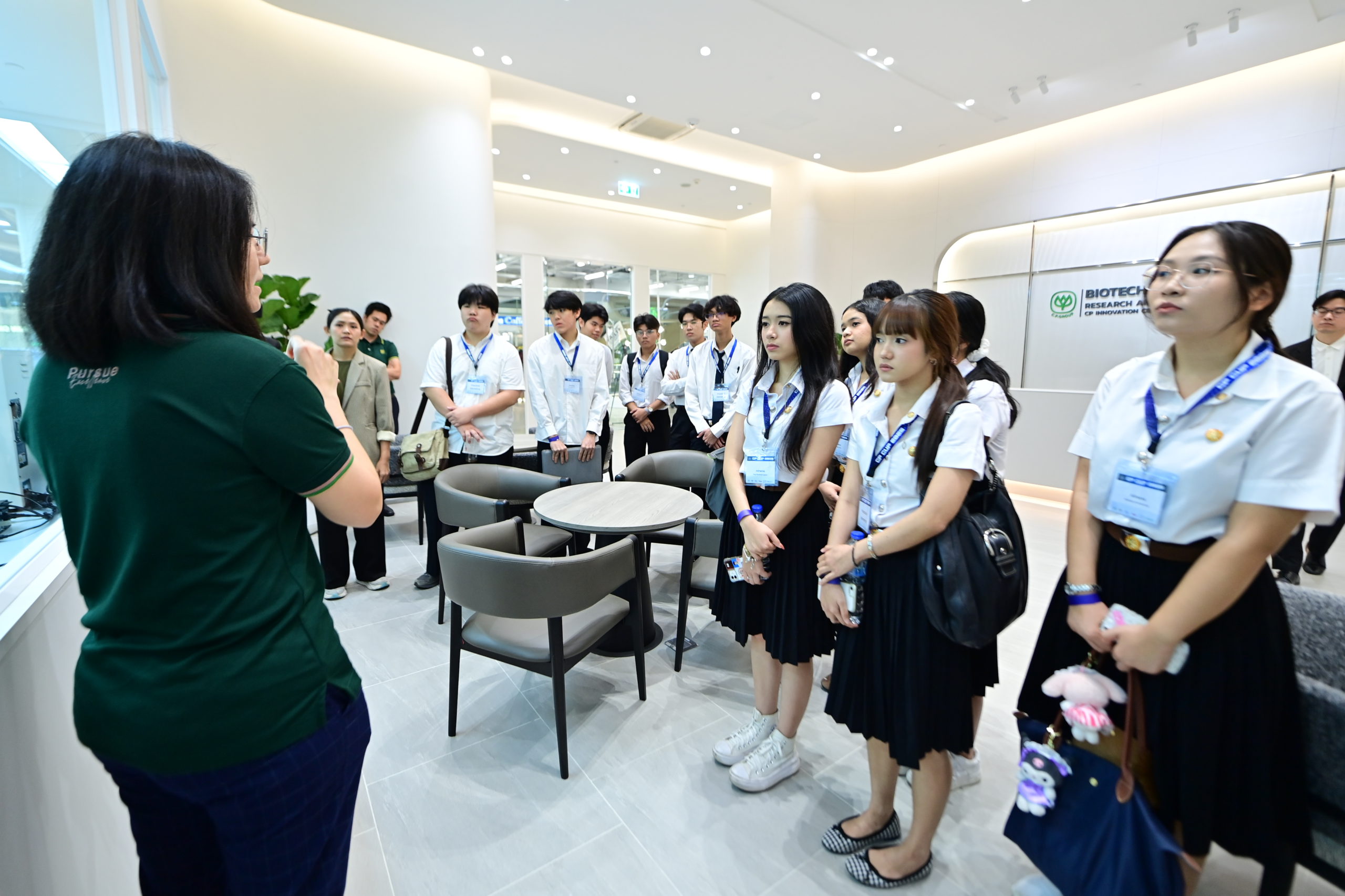 น้อง ๆ ที่มาเยี่ยมชมต่างประทับใจไปกับห้องปฏิบัติการและเทคโนโลยีสุดล้ำ ไม่ว่าจะเป็น Bio Technology Lab ที่พัฒนานวัตกรรมเพื่อสุขภาพและความมั่นคงทางอาหาร, Digital & AI Lab ที่เปรียบเสมือนสมองกลางของนวัตกรรม หรือ Data Center & Cloud COE ที่เชื่อมต่อข้อมูลขนาดใหญ่รองรับการวิจัยระดับโลก