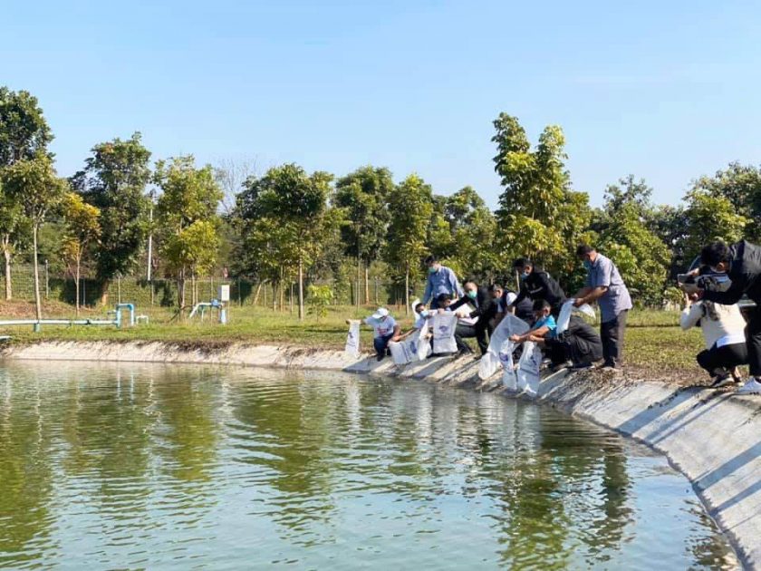 คุณธนกร วงศ์สว่างวรรณ ผู้ช่วยกรรมการผู้จัดการ CPF กลุ่มธุรกิจสัตว์น้ำ พร้อมด้วย คุณอดิศร์ กฤษณวงศ์ รองกรรมการผู้จัดการอาวุโส สำนักประสานและขับเคลื่อนกลยุทธ์ และคุณมงคล หวังมะโน ผู้จัดการทั่วไป โรงงานแปรรูปยางธรรมชาติ บริษัท เจริญโภคภัณฑ์การเกษตร จำกัด นำกำนัน ผู้ใหญ่บ้าน และผู้นำชุมชน ร่วมกิจกรรมปล่อยลูกพันธุ์ปลานิลซีพี ลงในบ่อบำบัดน้ำภายในโรงงานและแหล่งน้ำสาธารณะโดยรอบโรงงาน จำนวน 6 บ่อ เพื่อรักษาระบบนิเวศน์และสิ่งแวดล้อม ณ อ. วังสะพุง จ.เลย