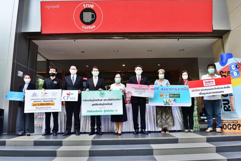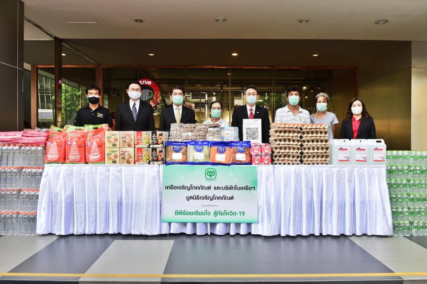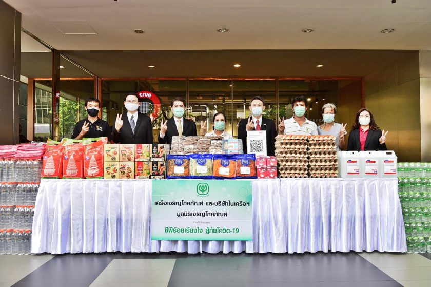 เครือ CP-CPF ทรู ซีพีออลล์ แม็คโคร มูลนิธิพุทธรักษา มูลนิธิธนินท์ เทวี เจียรวนนท์ และมูลนิธิเชฟแคร์ส ร่วมผนึกกำลัง ภายใต้โครงการ “CP ร้อยเรียงใจ สู้ภัยโควิด-19” ส่งมอบความช่วยเหลือด้านอาหารและสิ่งของจำเป็น ตลอดจนความสะดวกด้านการสื่อสารในสถานการณ์โควิด-19 ให้แก่ คุณประทีป อึ้งทรงธรรม ฮาตะ ผู้ก่อตั้งและเลขาธิการมูลนิธิดวงประทีป และตัวแทนชุมชน เพื่อร่วมบรรเทาความเดือดร้อนแก่ผู้ยากไร้ในชุมชนคลองเตย ซึ่งมีประชาชนอาศัยอยู่อย่างหนาแน่นและเสี่ยงต่อการแพร่กระจายของเชื้อโควิด หวังเป็นส่วนหนึ่งช่วยคนไทยผ่านพ้นวิกฤตนี้ไปด้วยกัน โดยมี CEO คุณประสิทธิ์ บุญดวงประเสริฐ, คุณสุภกิจ วรรธนะดิษฐ์ หัวหน้าคณะผู้บริหารด้านการพาณิชย์ ทรู, คุณยุทธศักดิ์ ภูมิสุรกุล กรรมการผู้จัดการ (ร่วม) ซีพี ออลล์ และ ดร.วิทย์ สุนทรนันท์ รองประธานกรรมการมูลนิธิพุทธรักษา ร่วมกันส่งมอบ ณ บริเวณหน้าอาคาร ซี.พี.ทาวเวอร์ ถ.สีลม